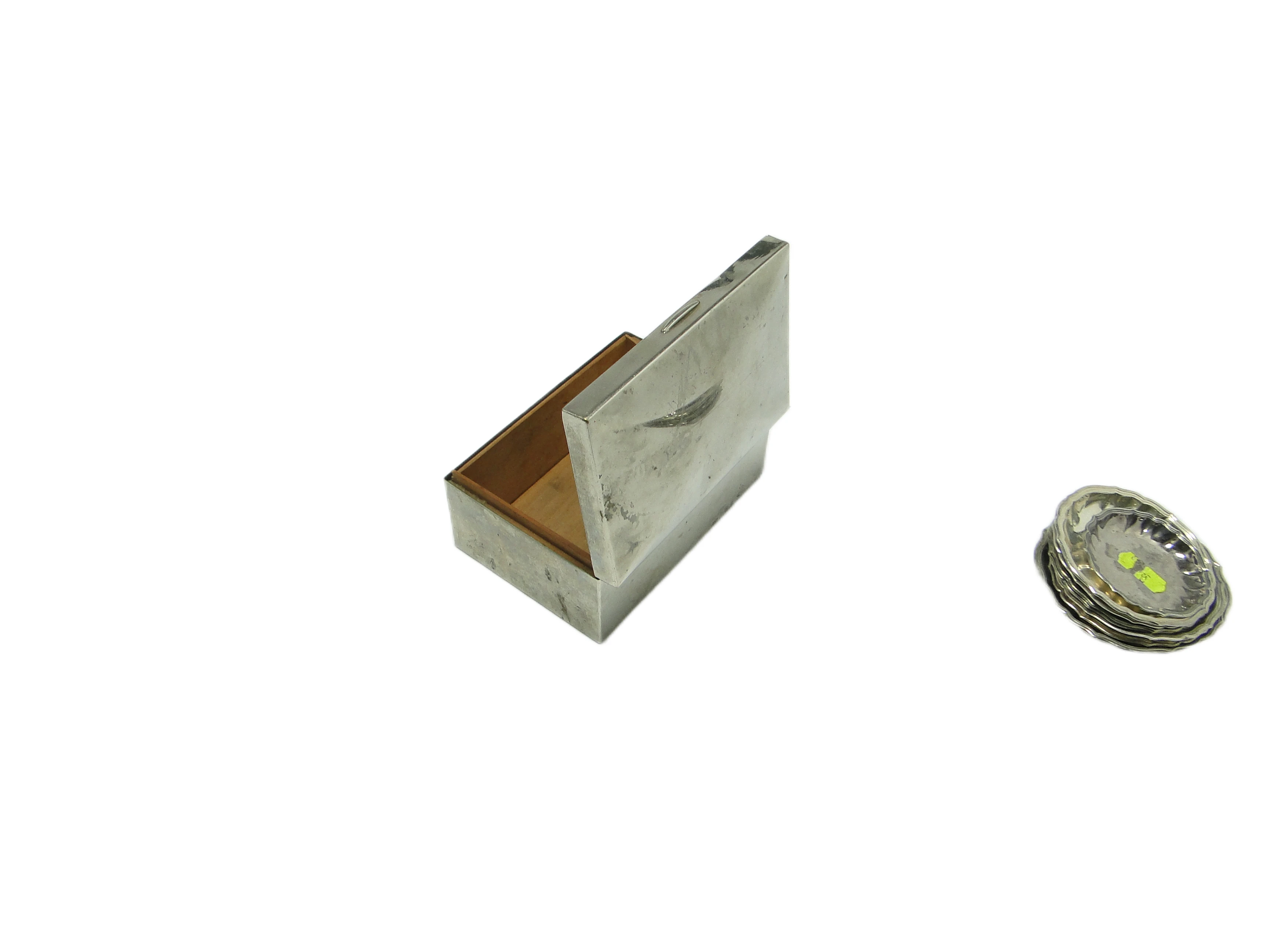 Humidor w stylu Art Deco z Polski z lat 50. to przykład oszczędnej, geometrycznej formy, charakterystycznej dla powojennego modernizmu. Wykonany z chromowanego mosiądzu o chłodnym, srebrzystym odcieniu i subtelnym, metalicznym połysku, posiada zwartą konstrukcję z ostrymi liniami i płaską, lekko sfazowaną pokrywą. Minimalistyczny projekt pozbawiono zbędnych ornamentów, a całość podkreśla niewielki, zintegrowany uchwyt na froncie. Powierzchnia nosi drobne rysy, przetarcia i delikatną patynę, widoczne zwłaszcza na wieczku i bokach, co świadczy o autentyczności vintage. Wnętrze, wyściełane drewnem, zapewnia odpowiednie warunki przechowywania cygar. Brak widocznych okuć dekoracyjnych czy kolorystycznych akcentów skupia uwagę na szlachetności materiału i precyzji wykonania. Stan zachowania bardzo dobry – przedmiot nosi typowe ślady użytkowania, bez poważnych uszkodzeń czy napraw.Ten humidor przywołuje głos epoki, w której polskie rzemiosło z równą dbałością traktowało detal i funkcję. Chłodny chrom odbija światło niczym tafla spokojnej wody, a wyważona geometria sugeruje spokój i dyscyplinę powojennego modernizmu. Forma, choć powściągliwa, niesie opowieść o codziennych rytuałach i przywiązaniu do rzeczy trwałych – to przedmiot, który mógłby być niemym świadkiem dawnych spotkań i wieczorów spędzanych na rozmowach przy cygarze.Humidor można wyeksponować na komodzie lub kredensie w salonie, gdzie jego geometryczne proporcje sprawdzą się zarówno w aranżacjach mid-century modern, jak i we wnętrzach kolekcjonerskich o bardziej eklektycznym charakterze. Warto połączyć go z elementami z naturalnego drewna, szkła lub ceramiki w stonowanych barwach – metaliczna powierzchnia humidora subtelnie ożywi otoczenie. Może również funkcjonować jako akcent na regale wśród książek lub grafik, gdzie jego surowa forma stworzy wyrazisty kontrapunkt dla miękkich tkanin, takich jak wełniany pled czy aksamitna poduszka.