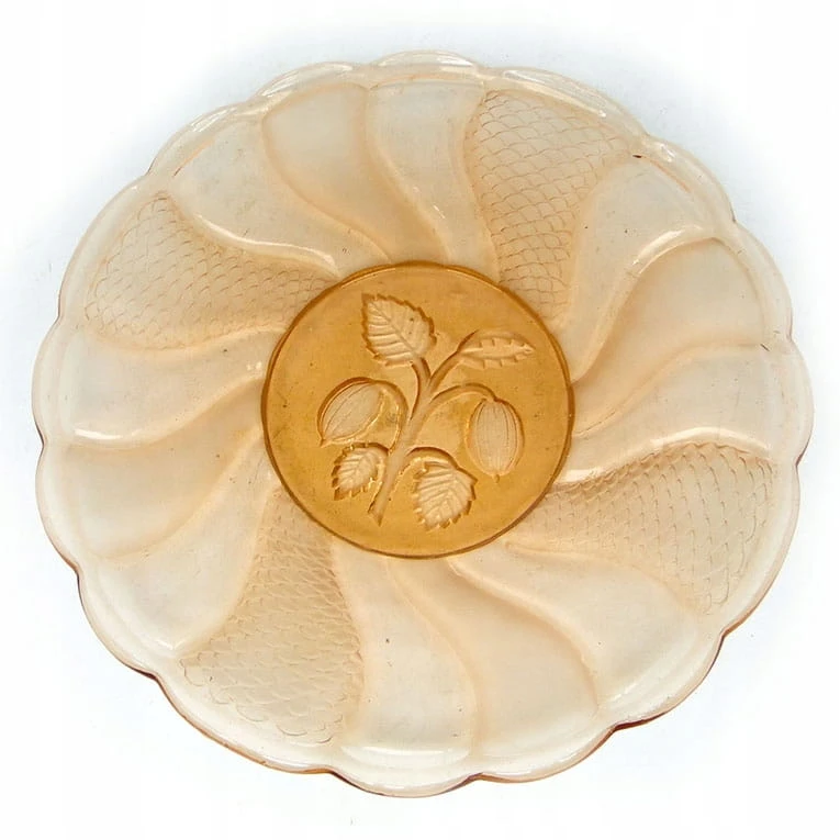 Patera wykonana została w polskiej hucie szkła Zawiercie. Wykonany w latach 50. Zachowany w bardzo dobrym stanie.