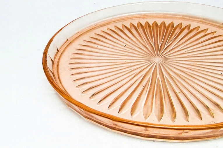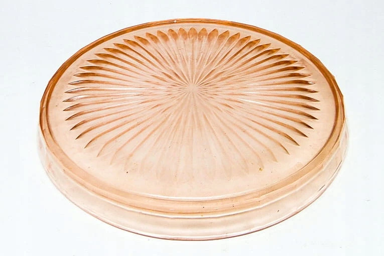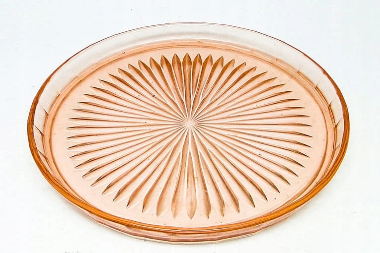 Talerz do patery / tortownicy w stylu Art Deco wykonany z czerwonego szkła lanego.