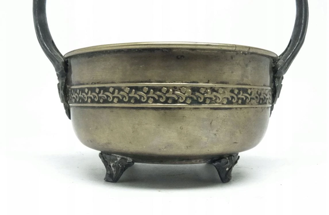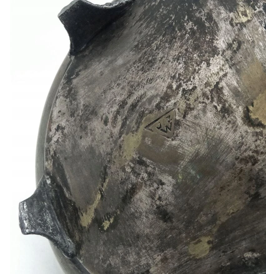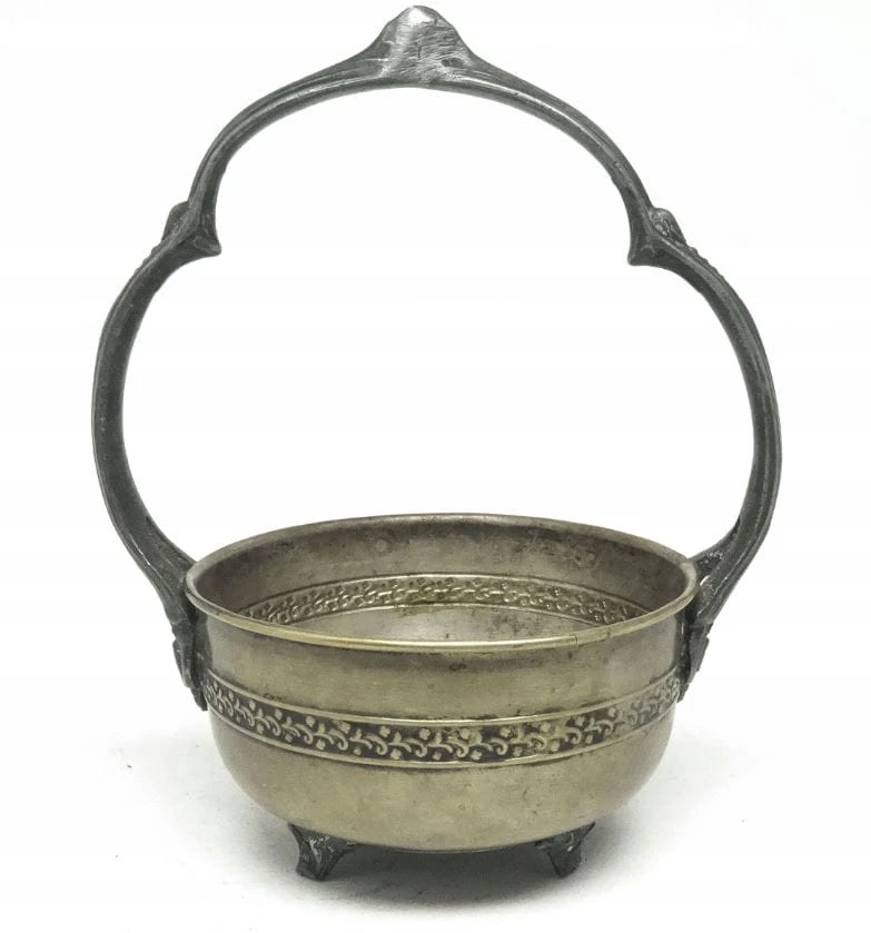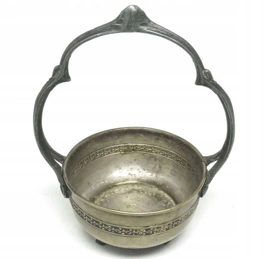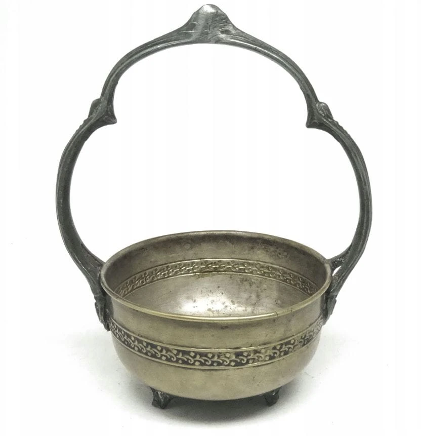 Cukiernica wyprodukowana w latach 30. Znak na spodzie JZW. Wykonana została z mosiądzu. Zachowana jest w dobrym stanie, z widoczną patyną.