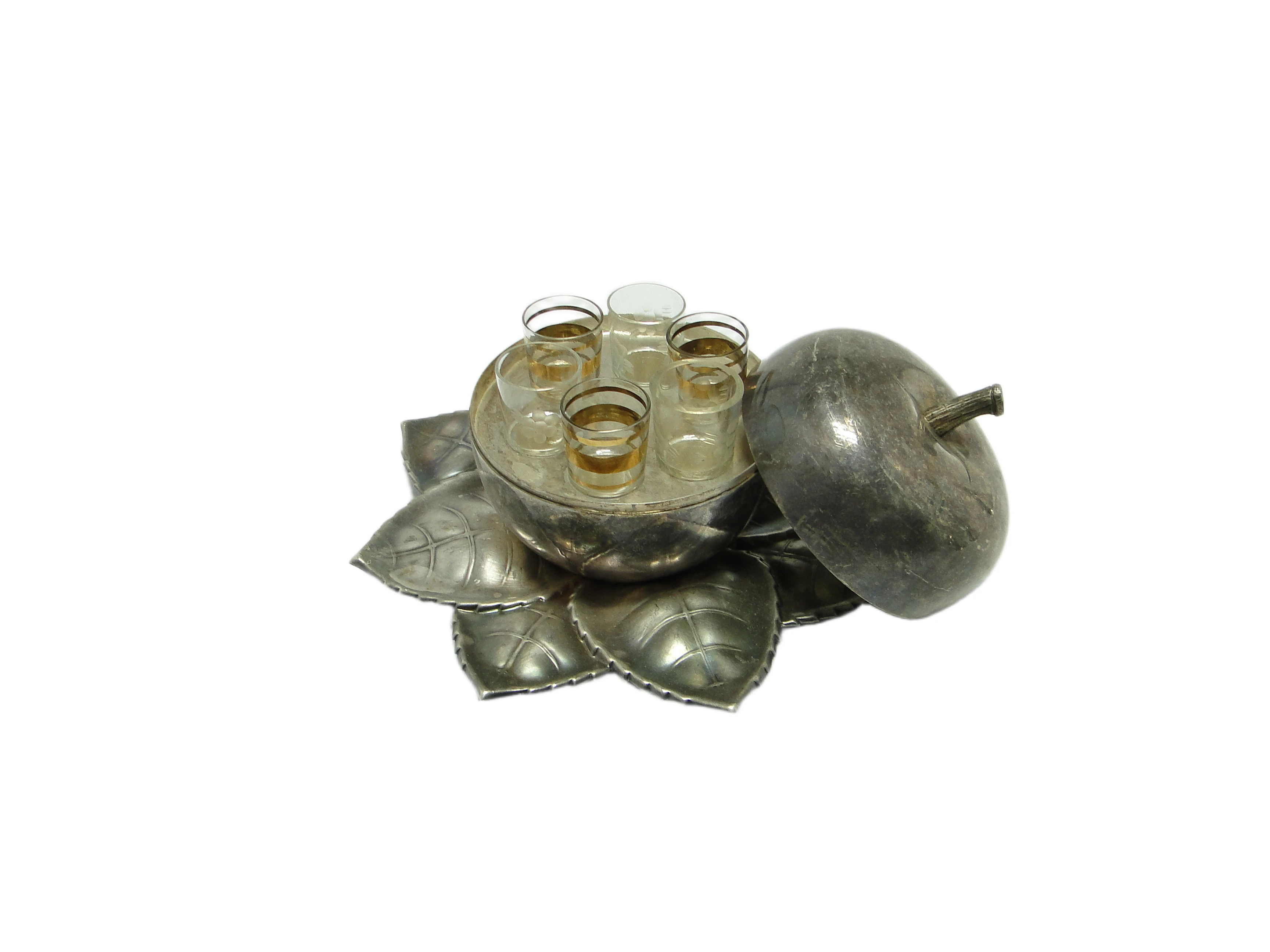 Kabaret na alkohole, art déco, mosiądz srebrzony, Węgry, lata 30.