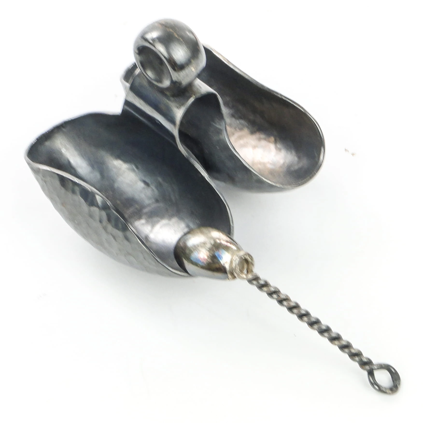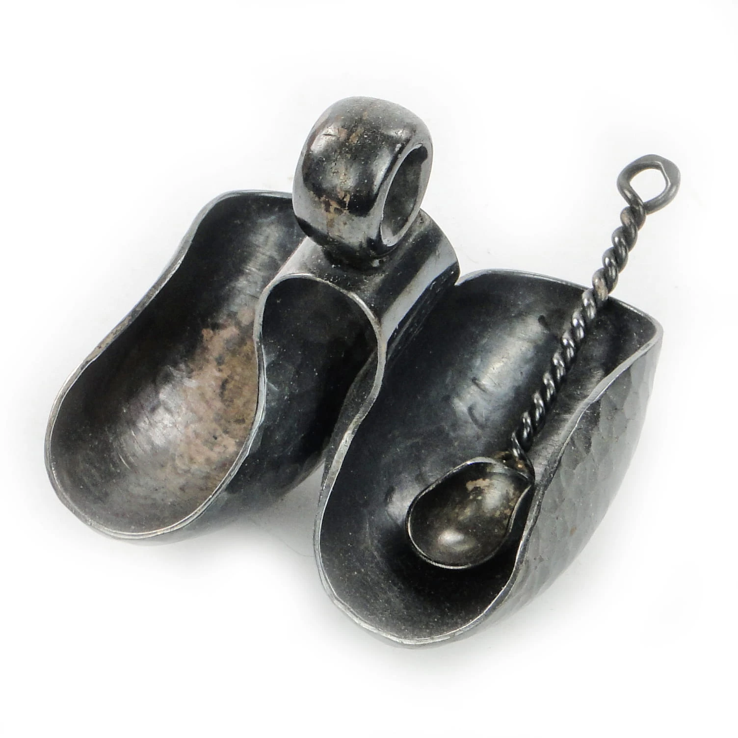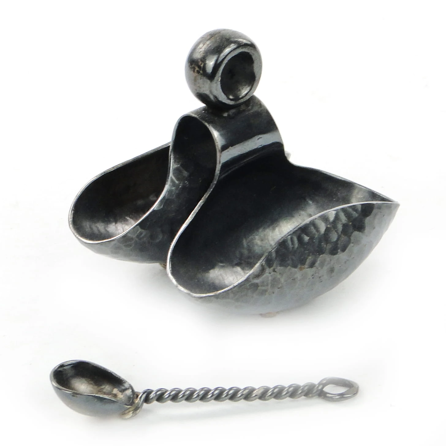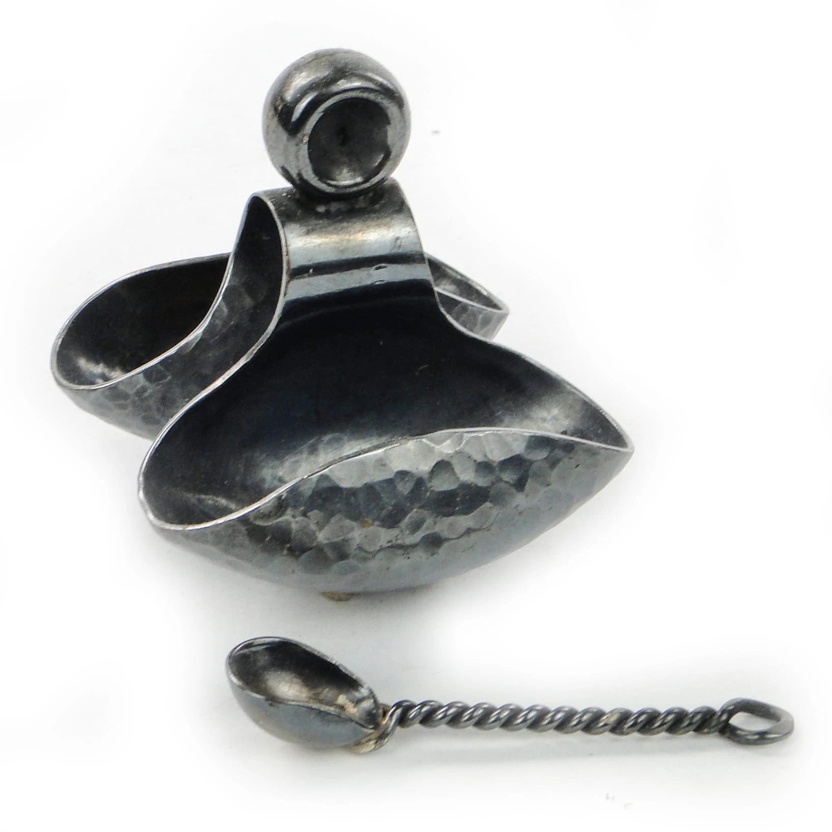 Wykonany ze srebra, posiada łyżeczkę do przypraw w komplecie.