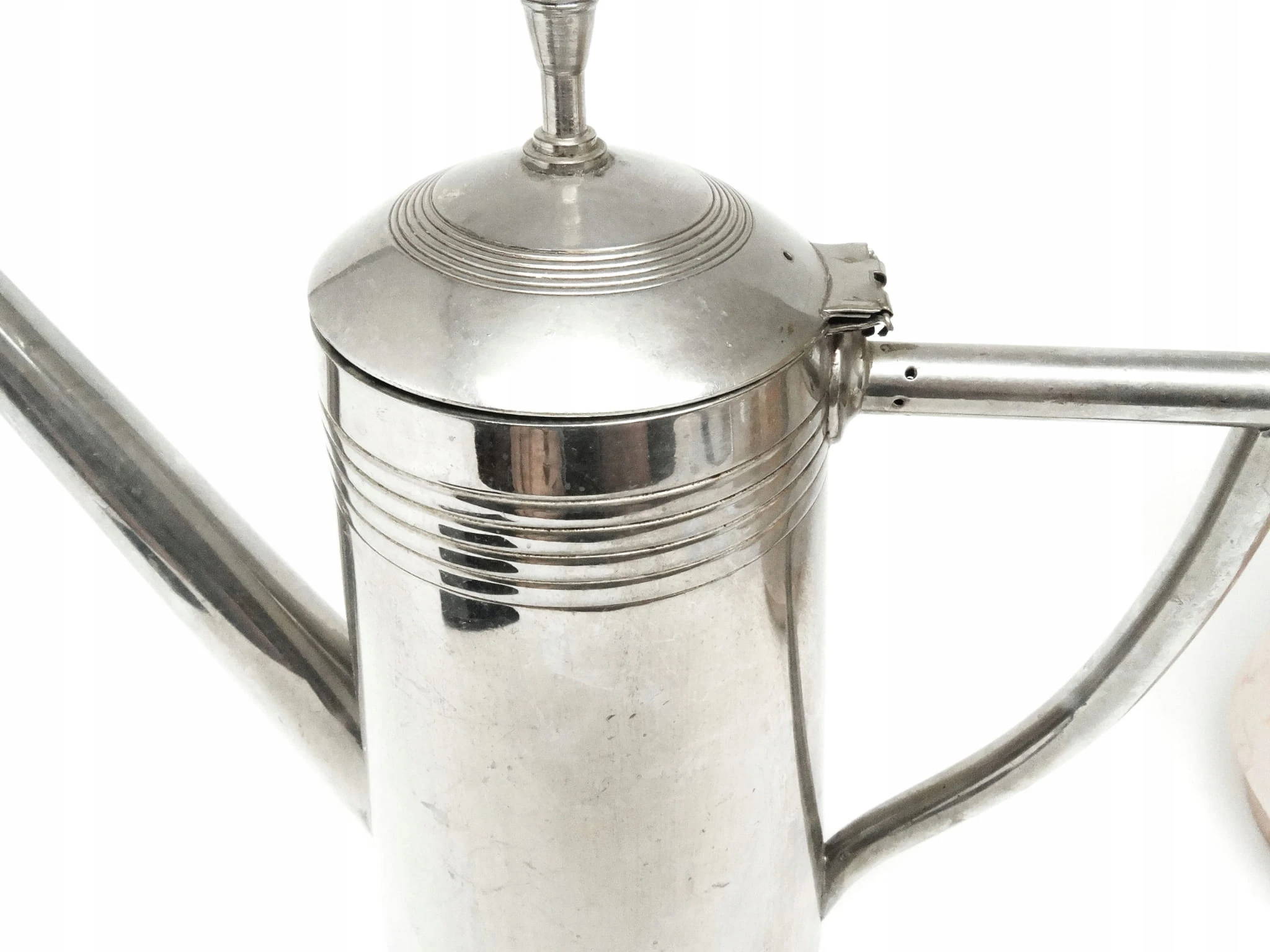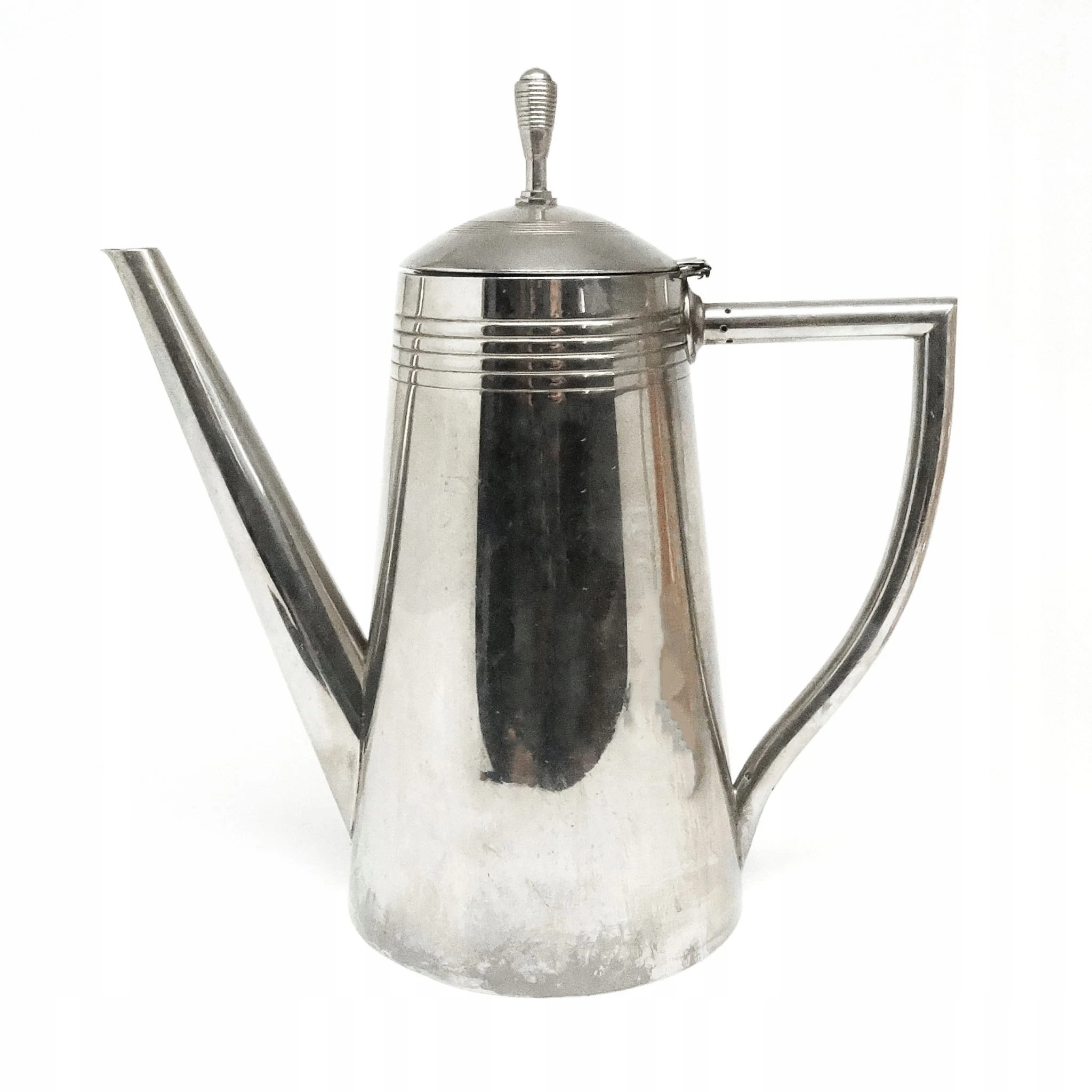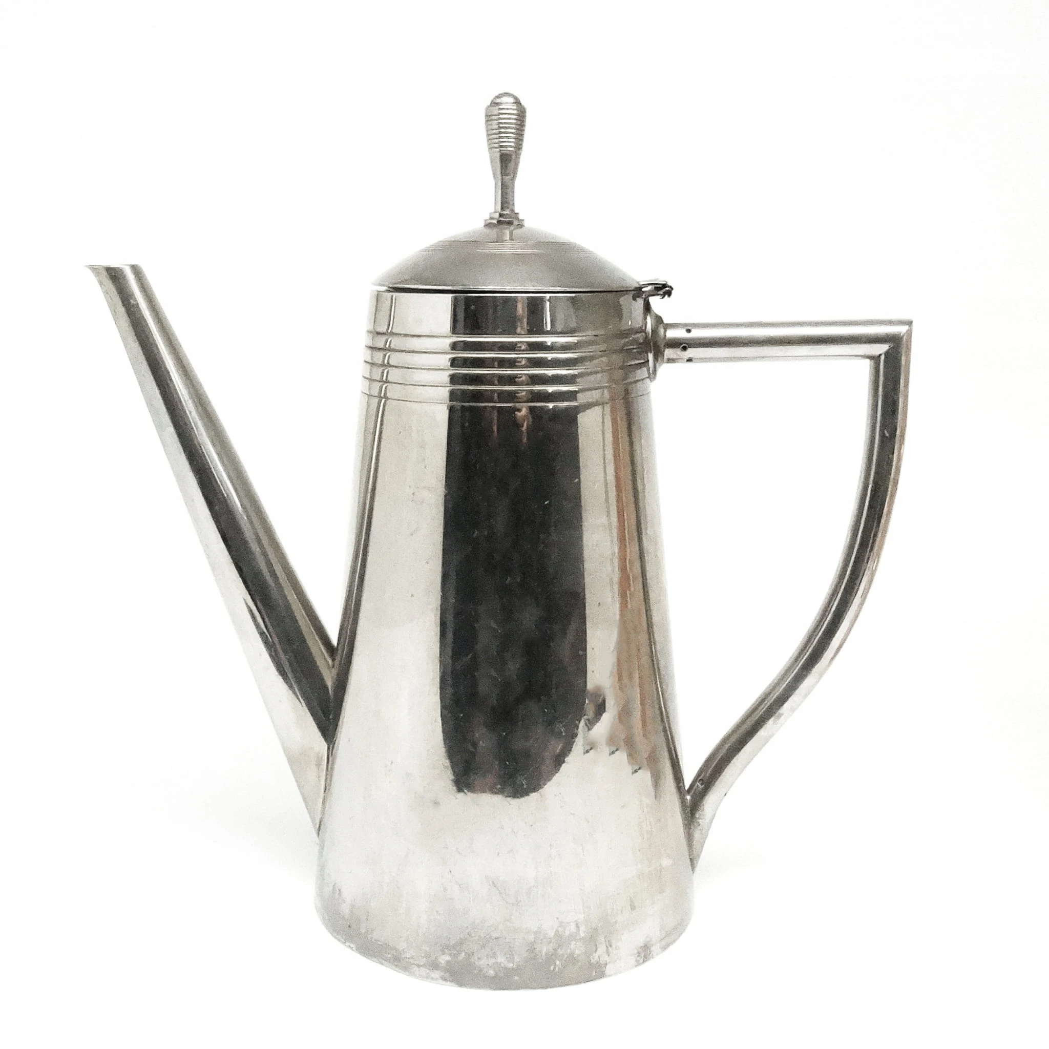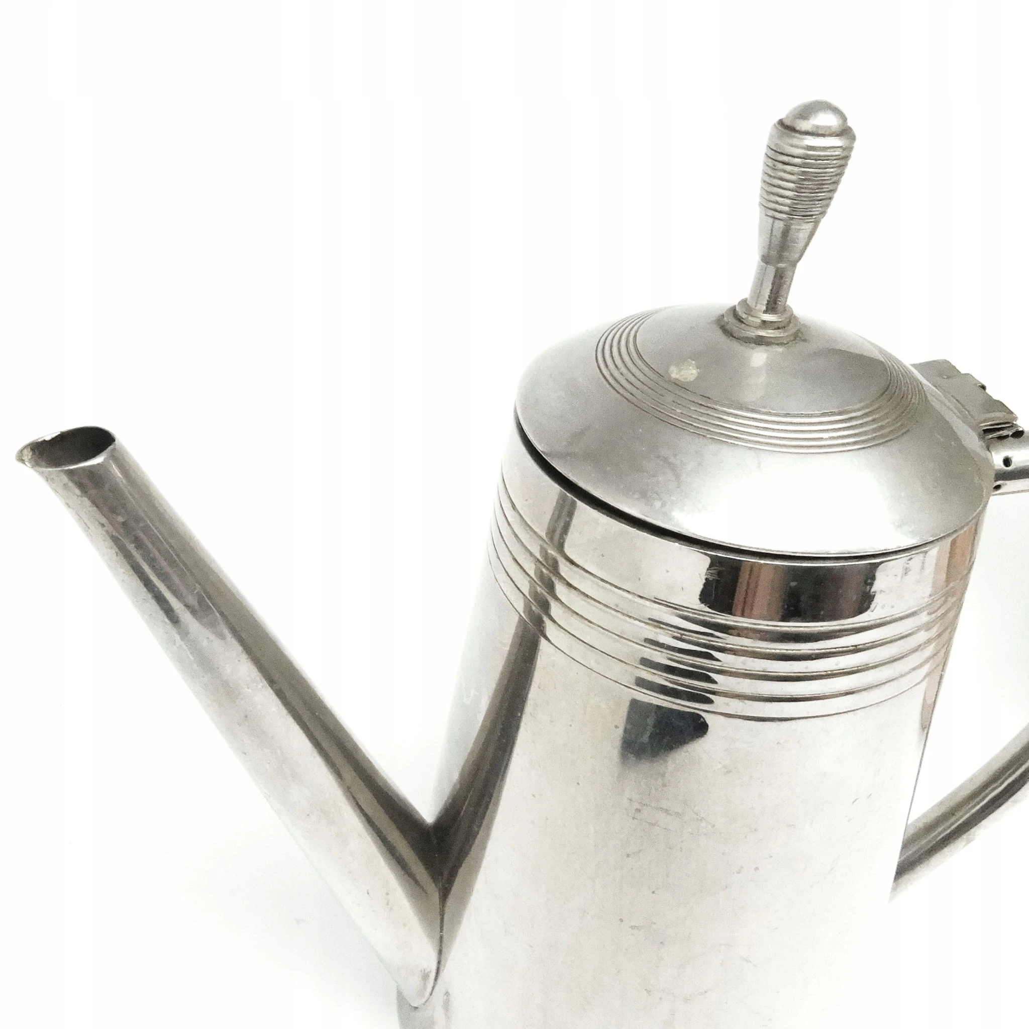 Dzbanek do kawy wykonany został na początku XX w. Od spodu grawerowany orzeł, K.&H., 8/10. Zachowany w stanie dobrym.