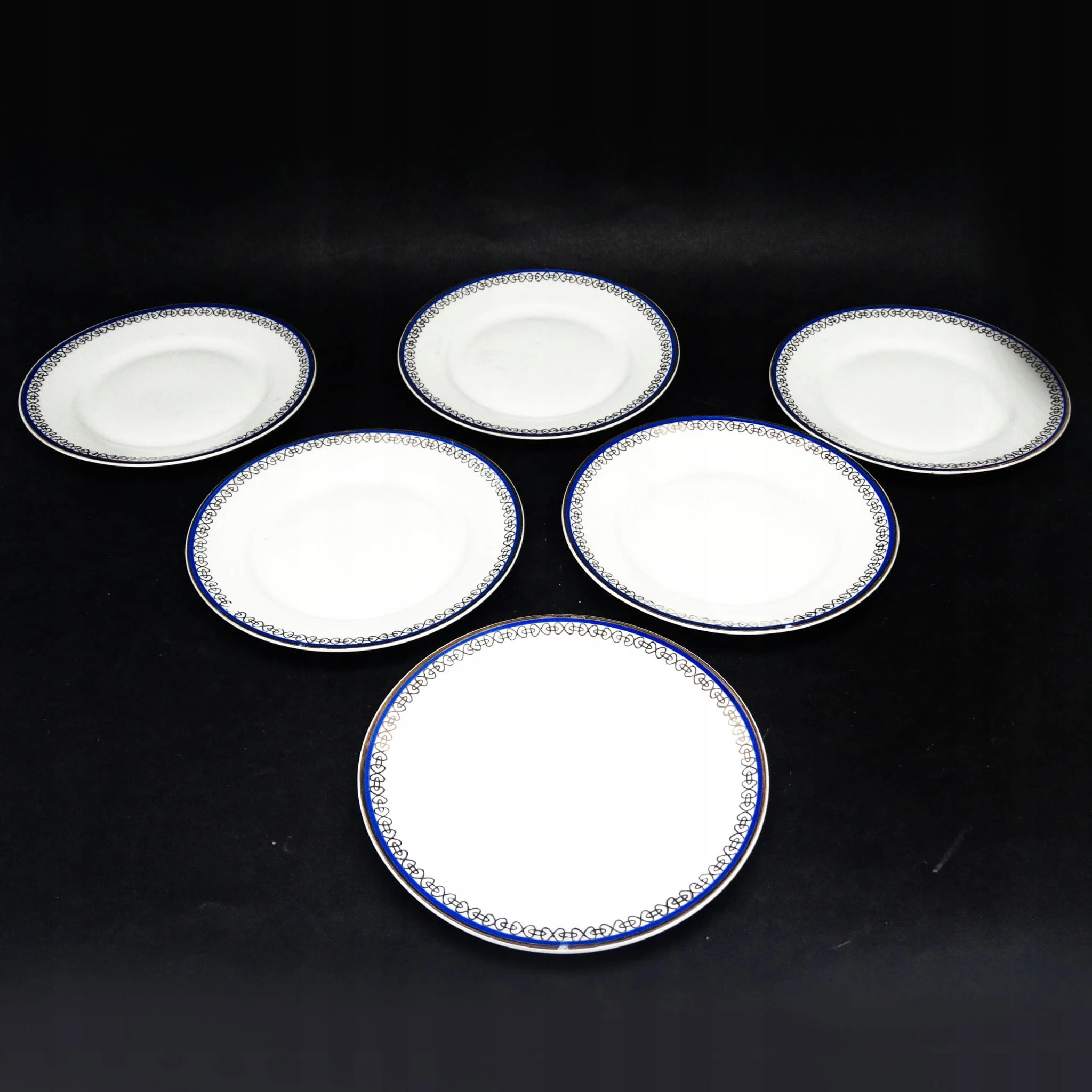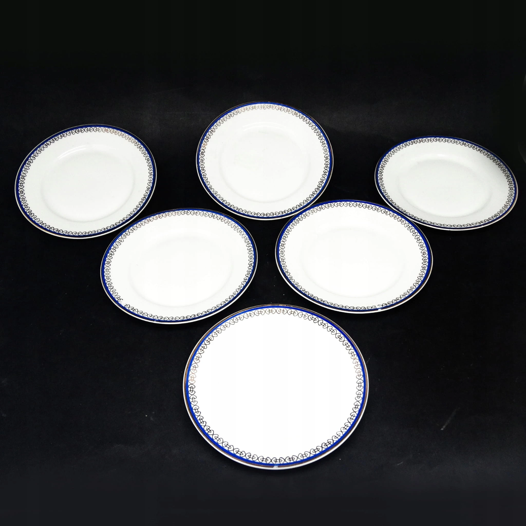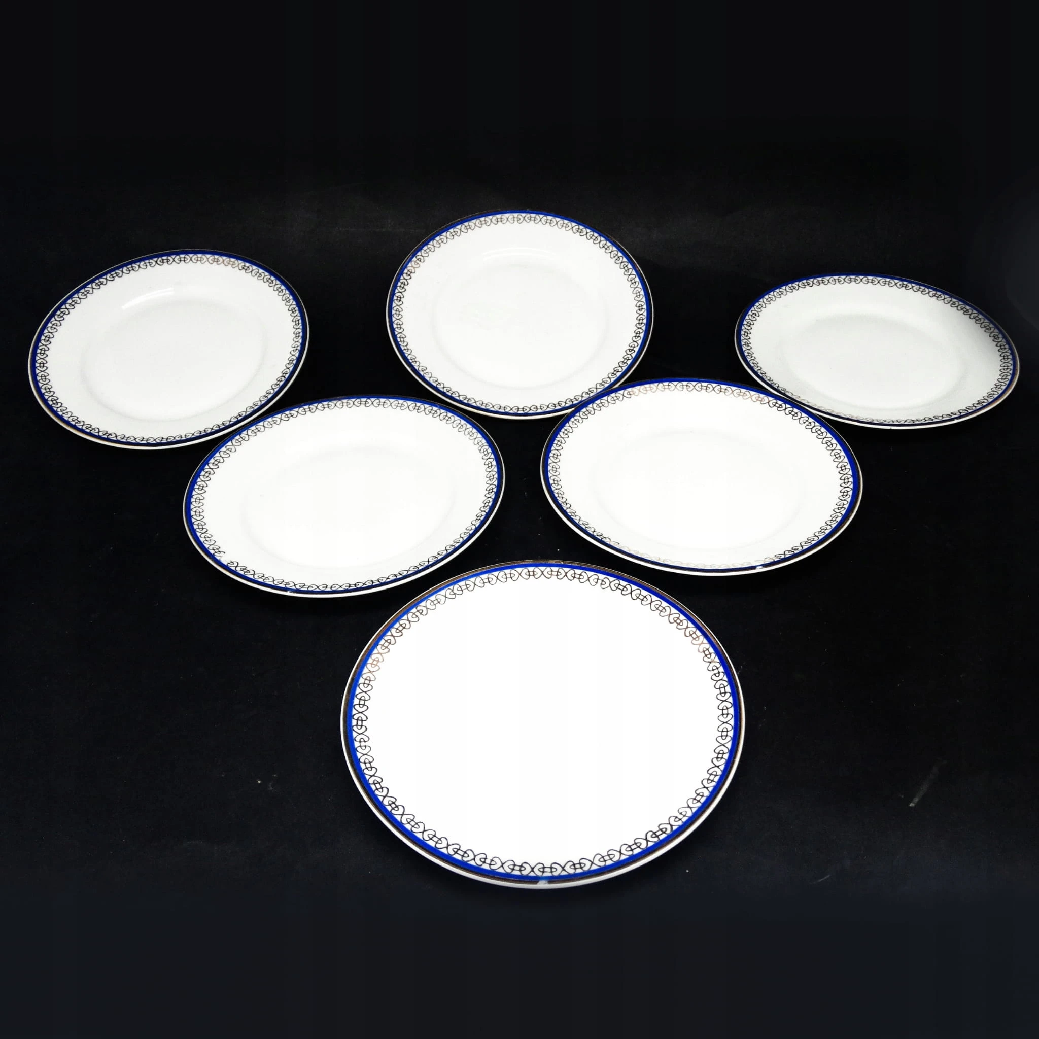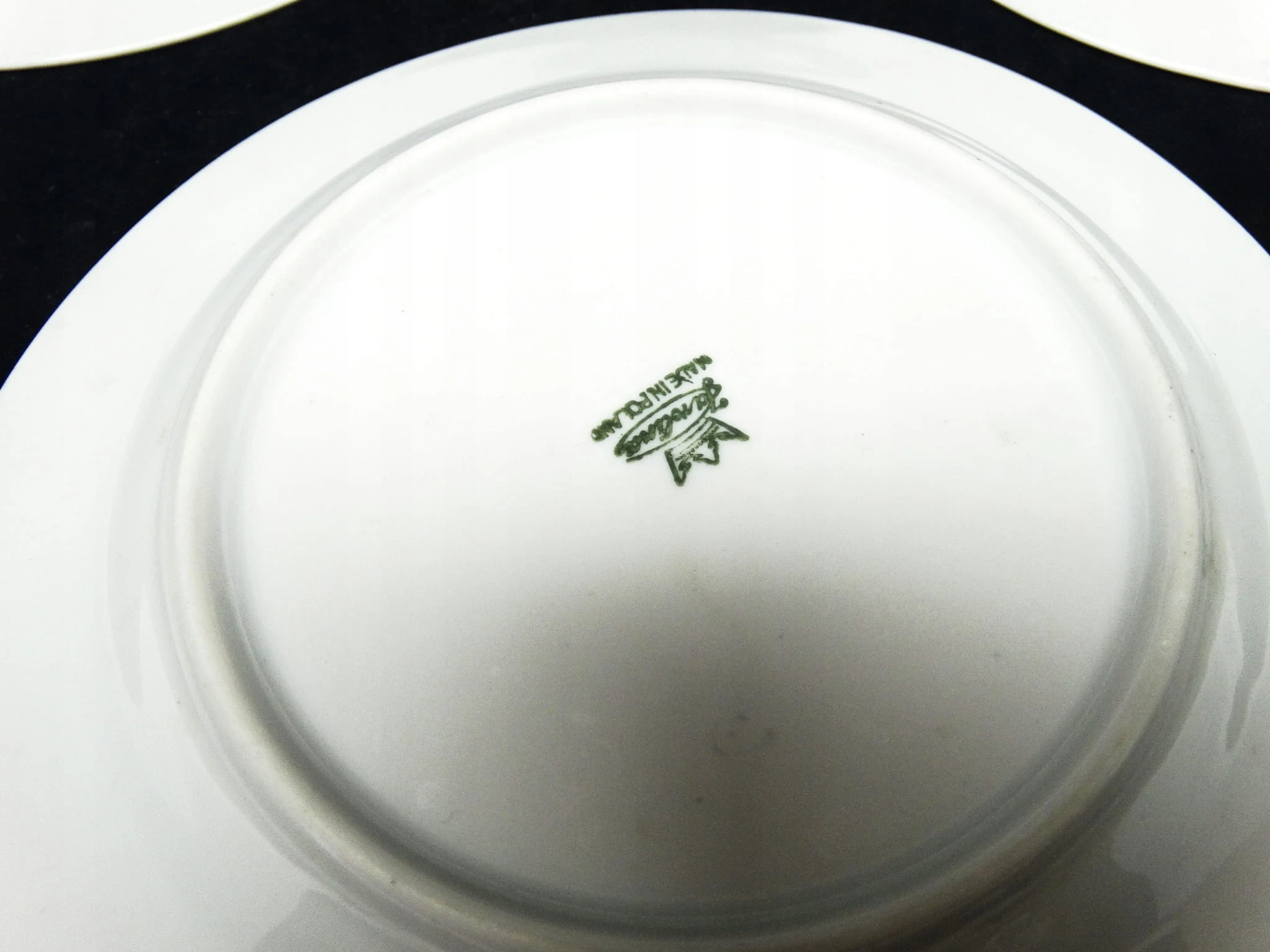 Komplet talerzy został wykonany z porcelany w Polsce. Pochodzi z lat 60. Sygnowany Karolina. Stan dobry.