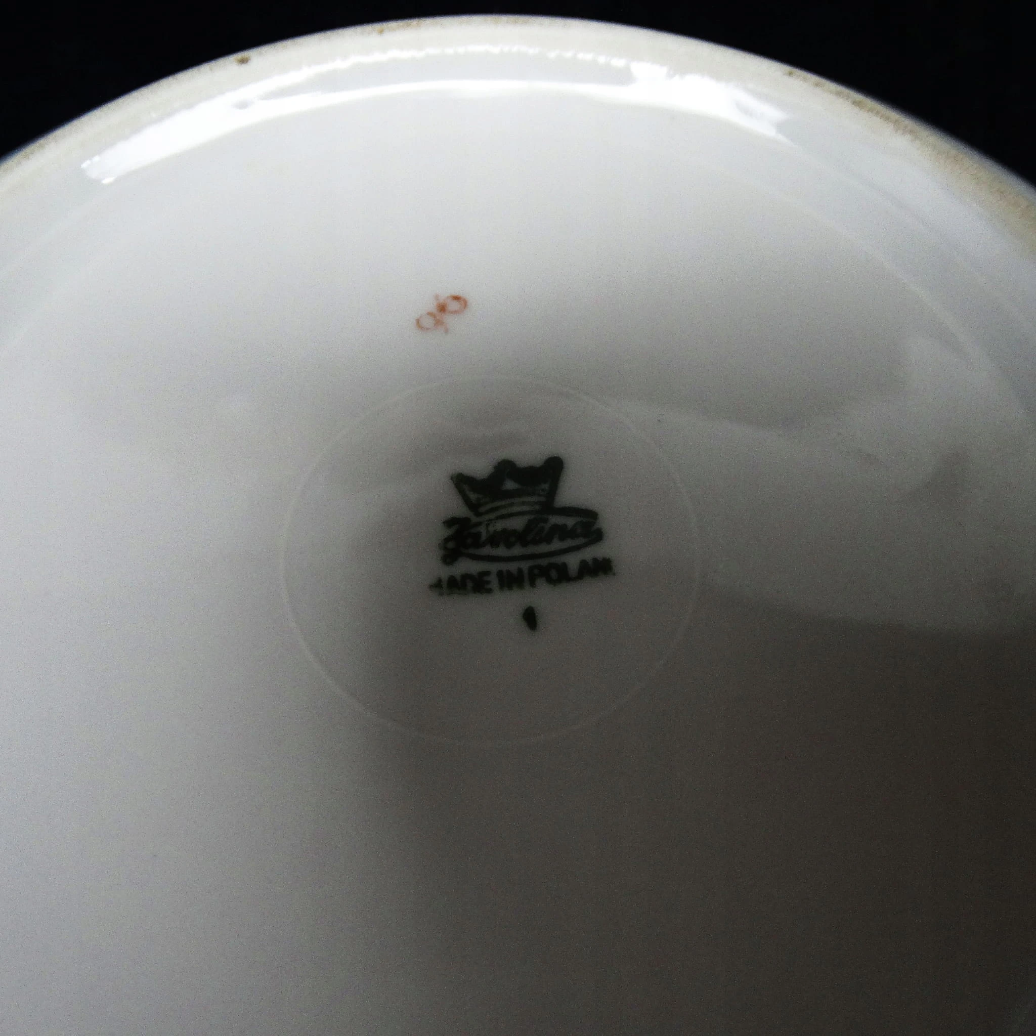 Patera została wykonany z porcelany w Polsce. Pochodzi z lat 60. Sygnowany Karolina. Stan dobry.