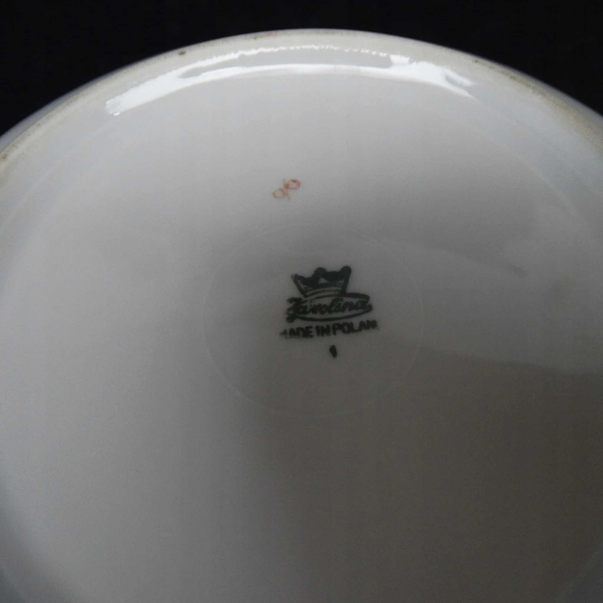 Patera została wykonany z porcelany w Polsce. Pochodzi z lat 60. Sygnowany Karolina. Stan dobry.