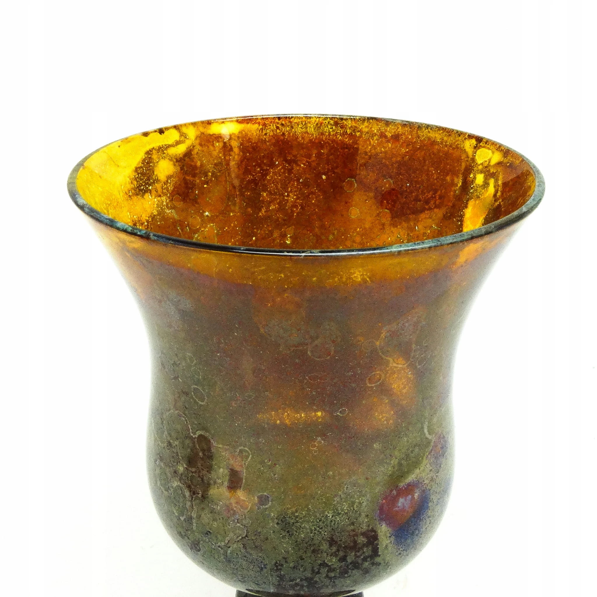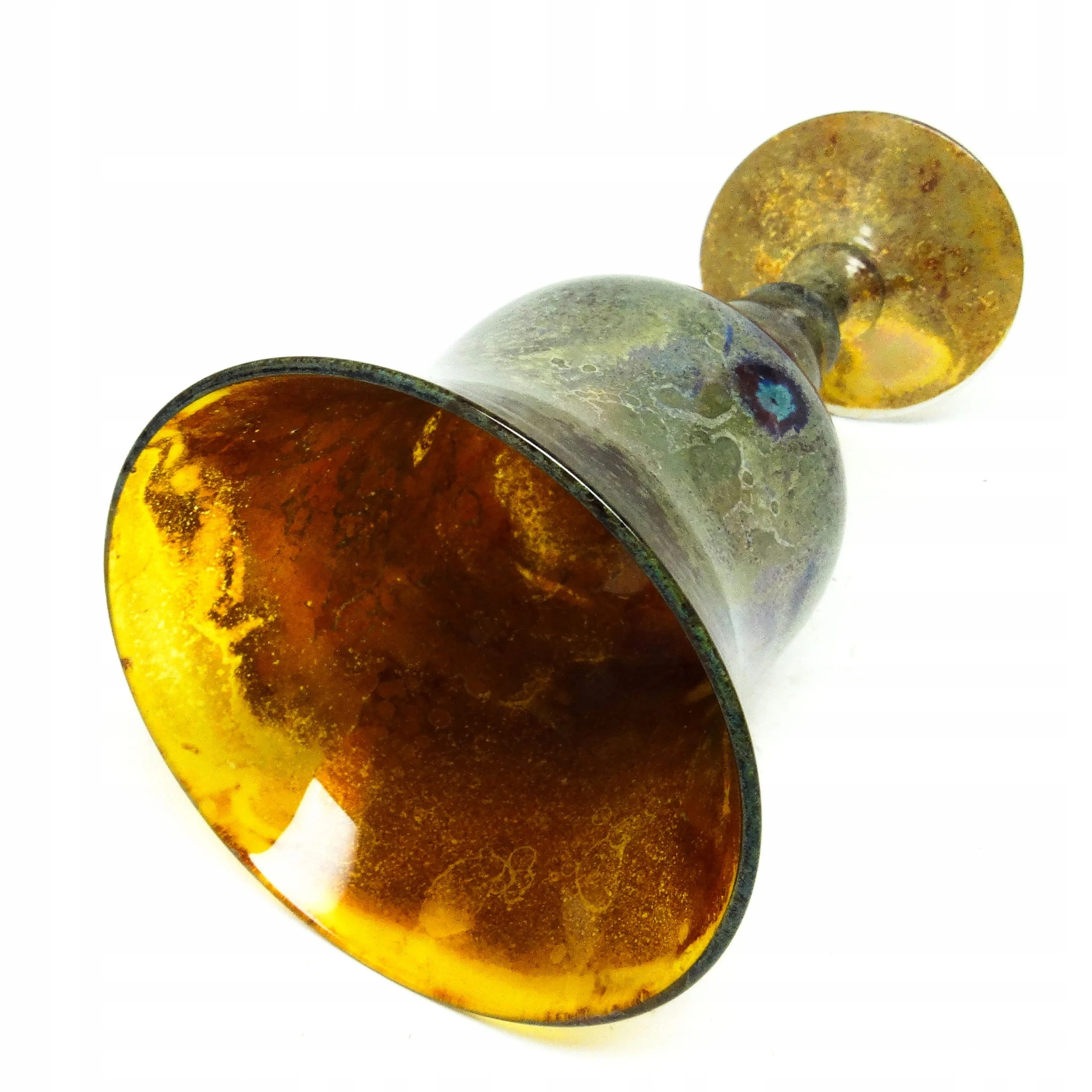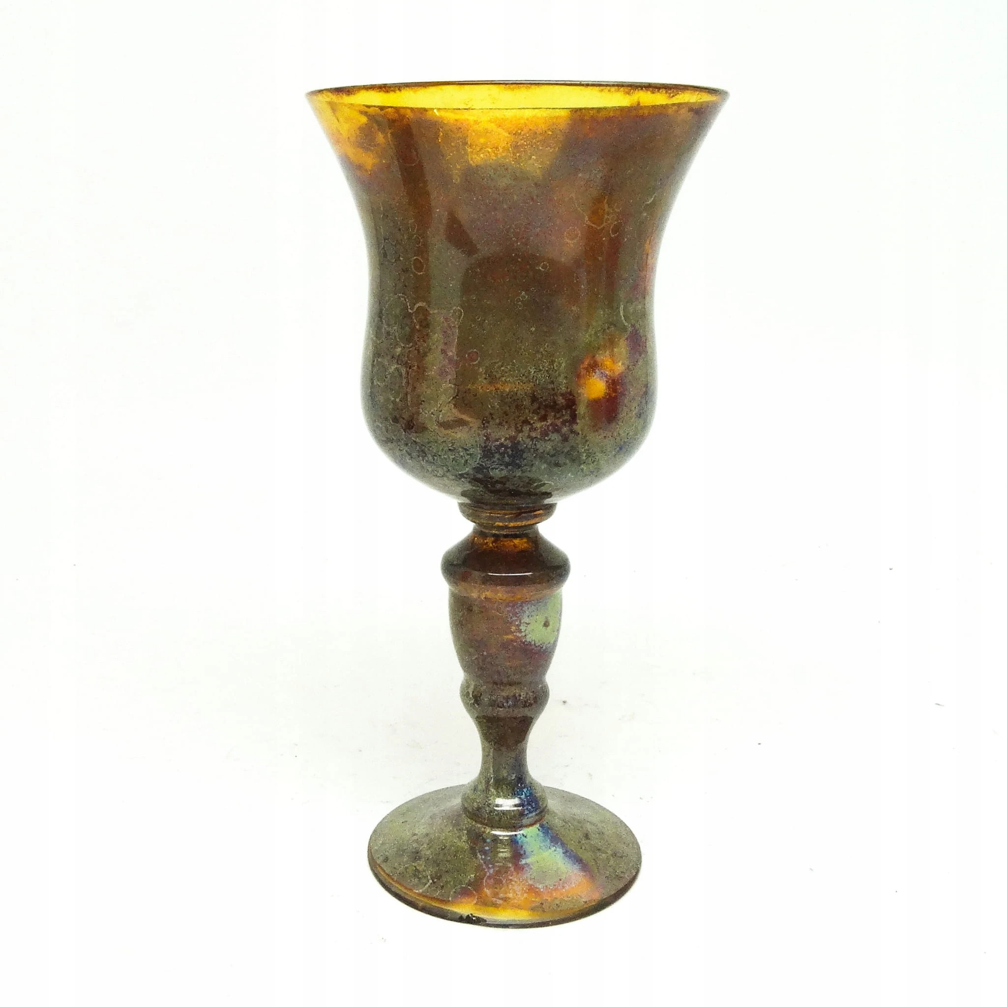 Kielich wykonany zostały w polskiej Hucie szkła Hortensja w Piotrkowie Trybunalskim. Funkcjonują dwie obiegowe nazwy dla tej serii przedmiotów - Mimoza i Pandora. Zaprojektowany jest przez Stanisława Kowalczyka i Janusza Kazaneckiego. Wykonany w latach 70. Stan przedmiotu jest dobry.