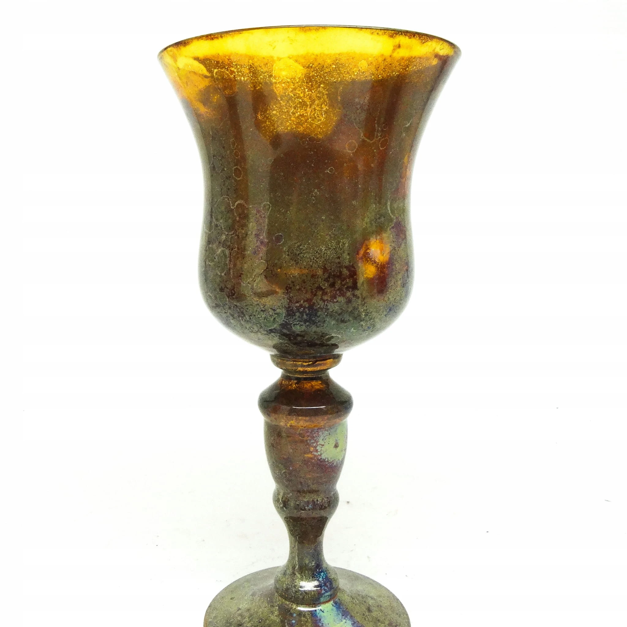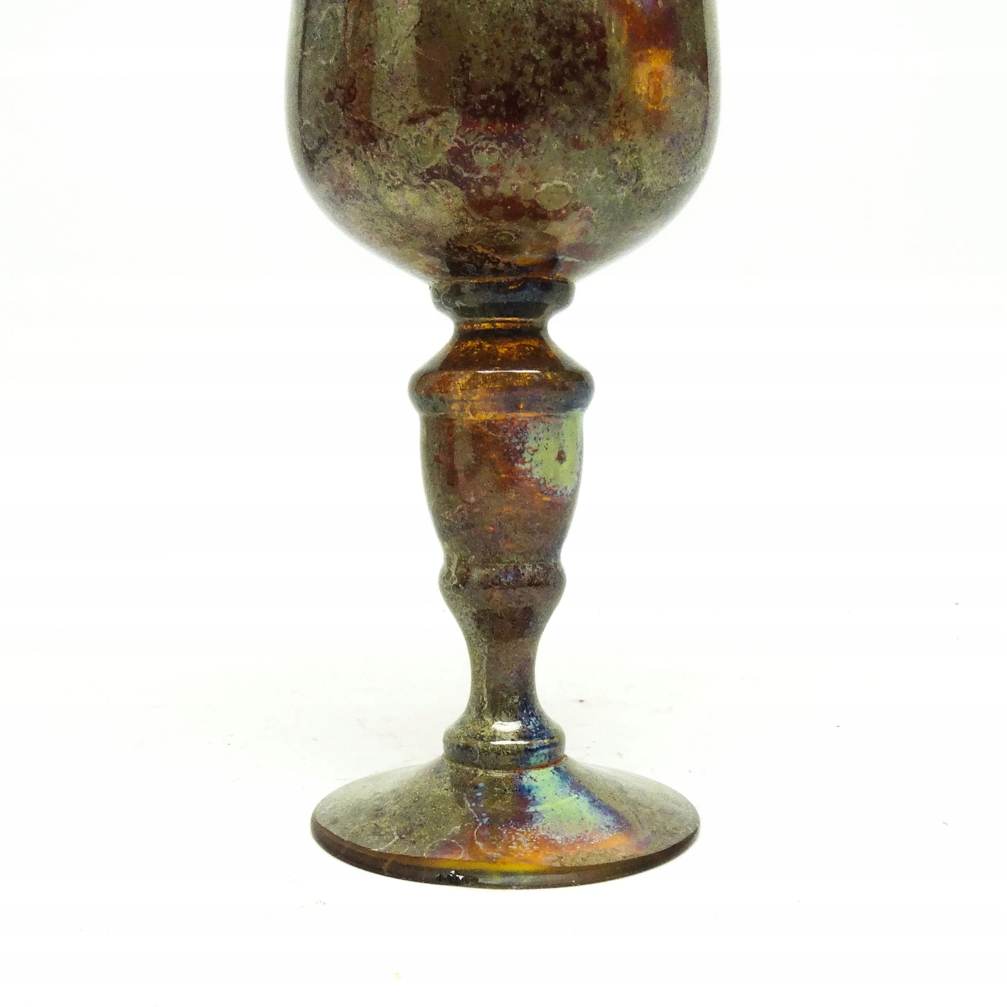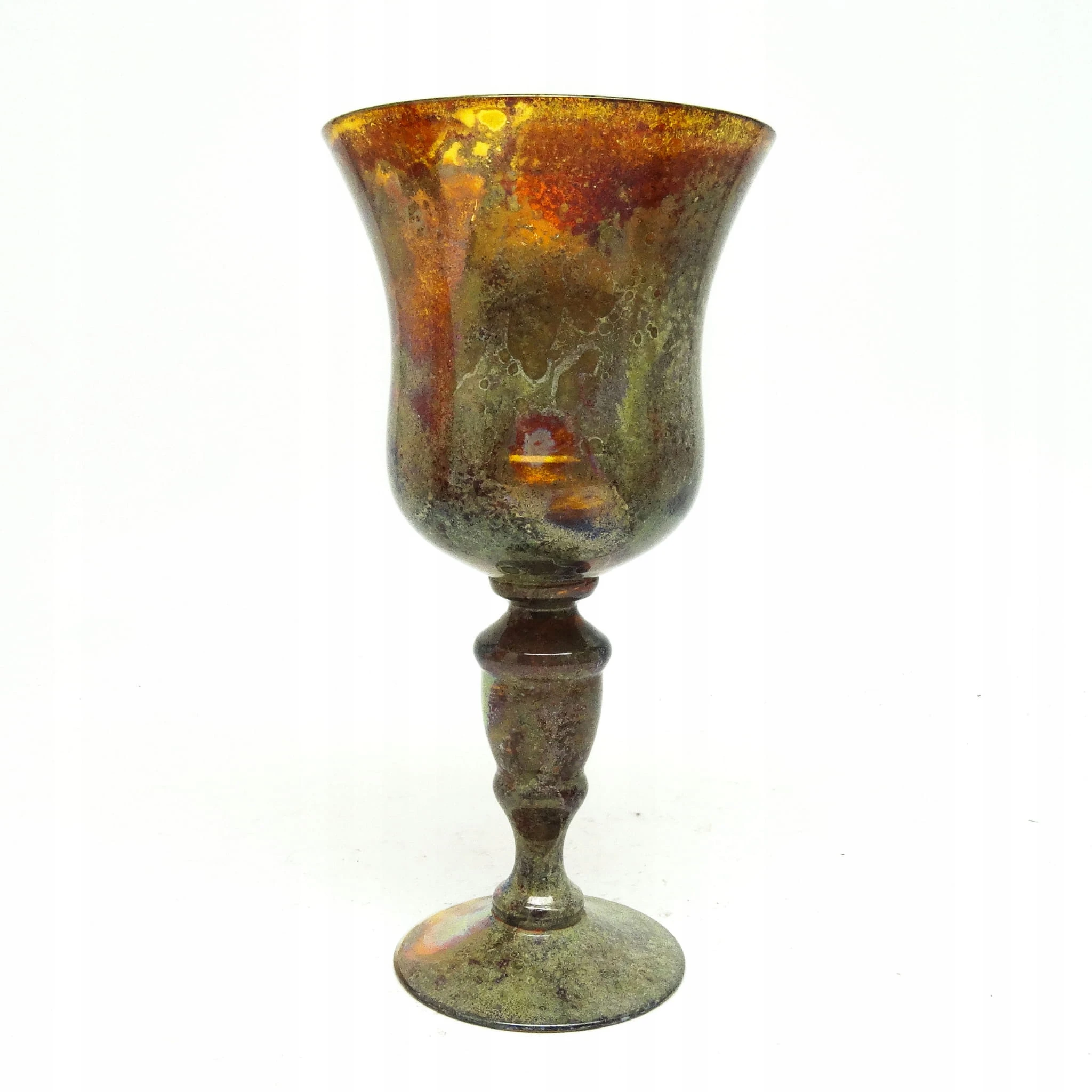 Kielich wykonany zostały w polskiej Hucie szkła Hortensja w Piotrkowie Trybunalskim. Funkcjonują dwie obiegowe nazwy dla tej serii przedmiotów - Mimoza i Pandora. Zaprojektowany jest przez Stanisława Kowalczyka i Janusza Kazaneckiego. Wykonany w latach 70. Stan przedmiotu jest dobry.