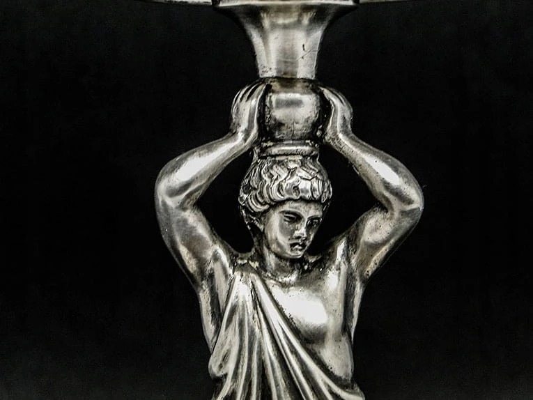 Austro-węgierska srebrna patera figuralna na owoce.
