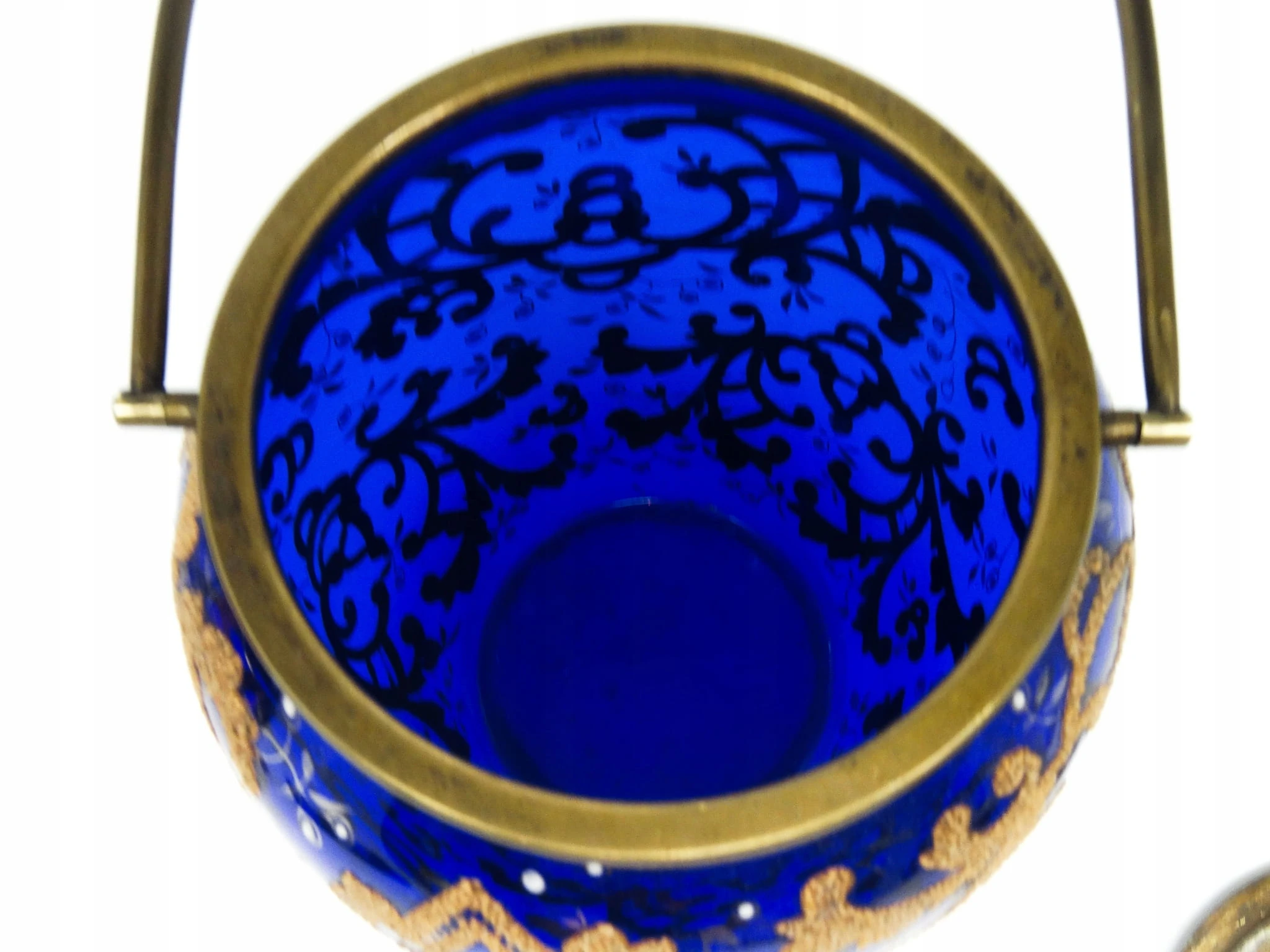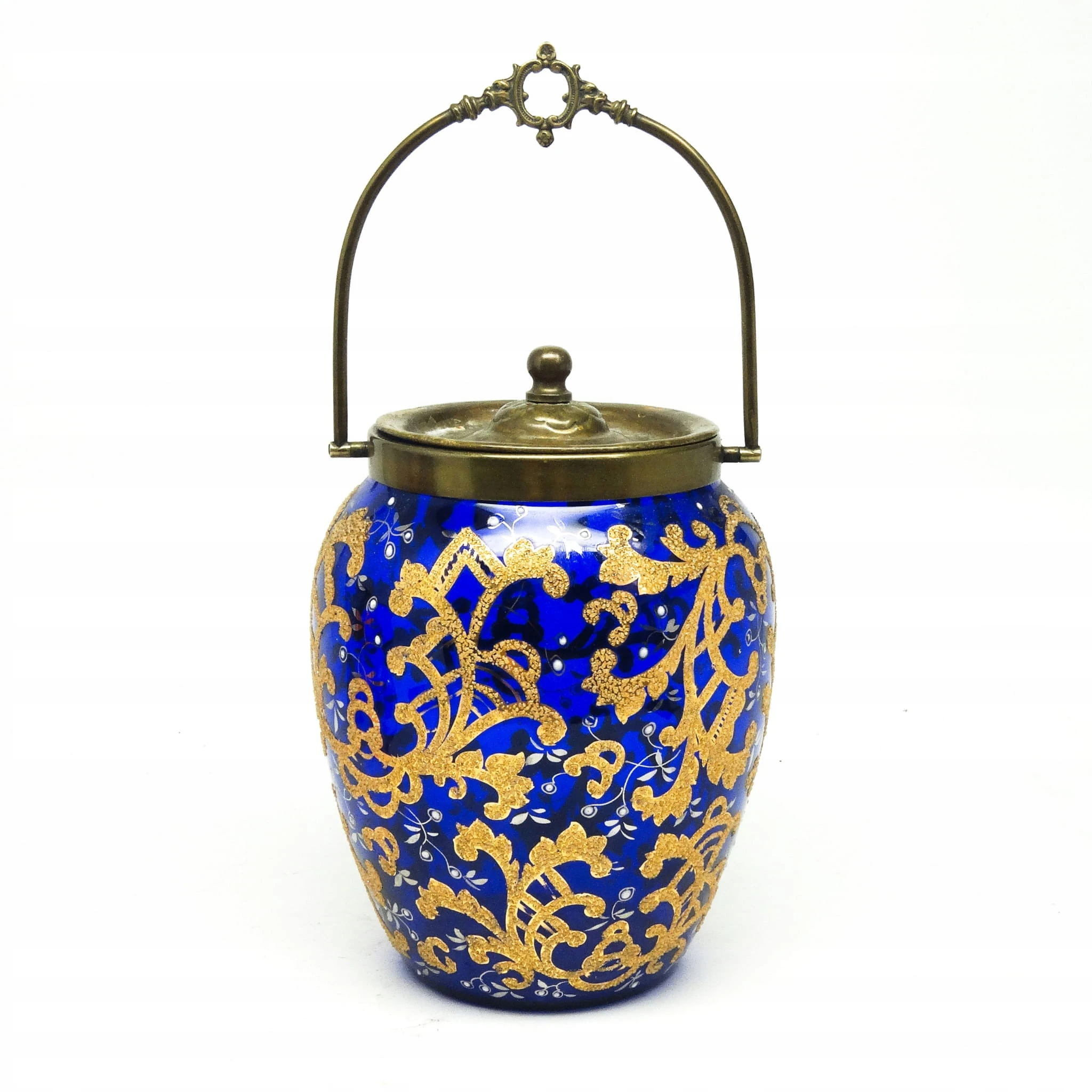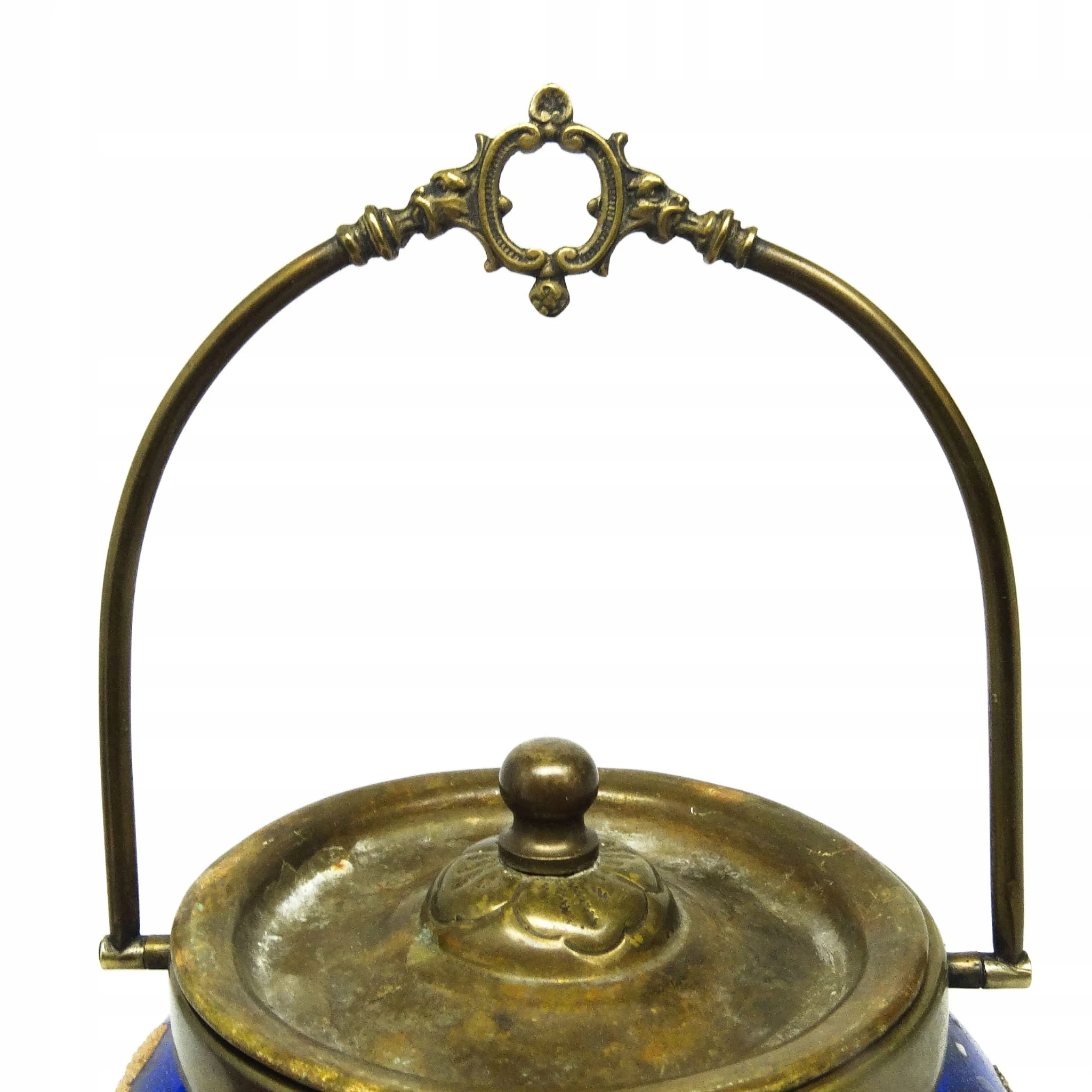 Piękna herbatnica w okuciu wyprodukowana w latach 20. w Niemczech. Zachowana jest w bardzo dobrym stanie. Wygląda niezwykle efektownie. Jest to unikatowy i ekskluzywny przedmiot. Pokrywa dobierana i pasuje. Wysokość podana wraz z pałąkiem.