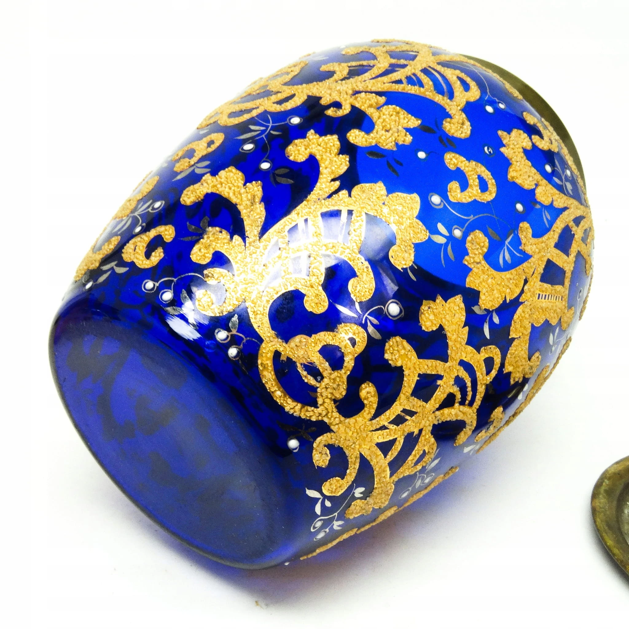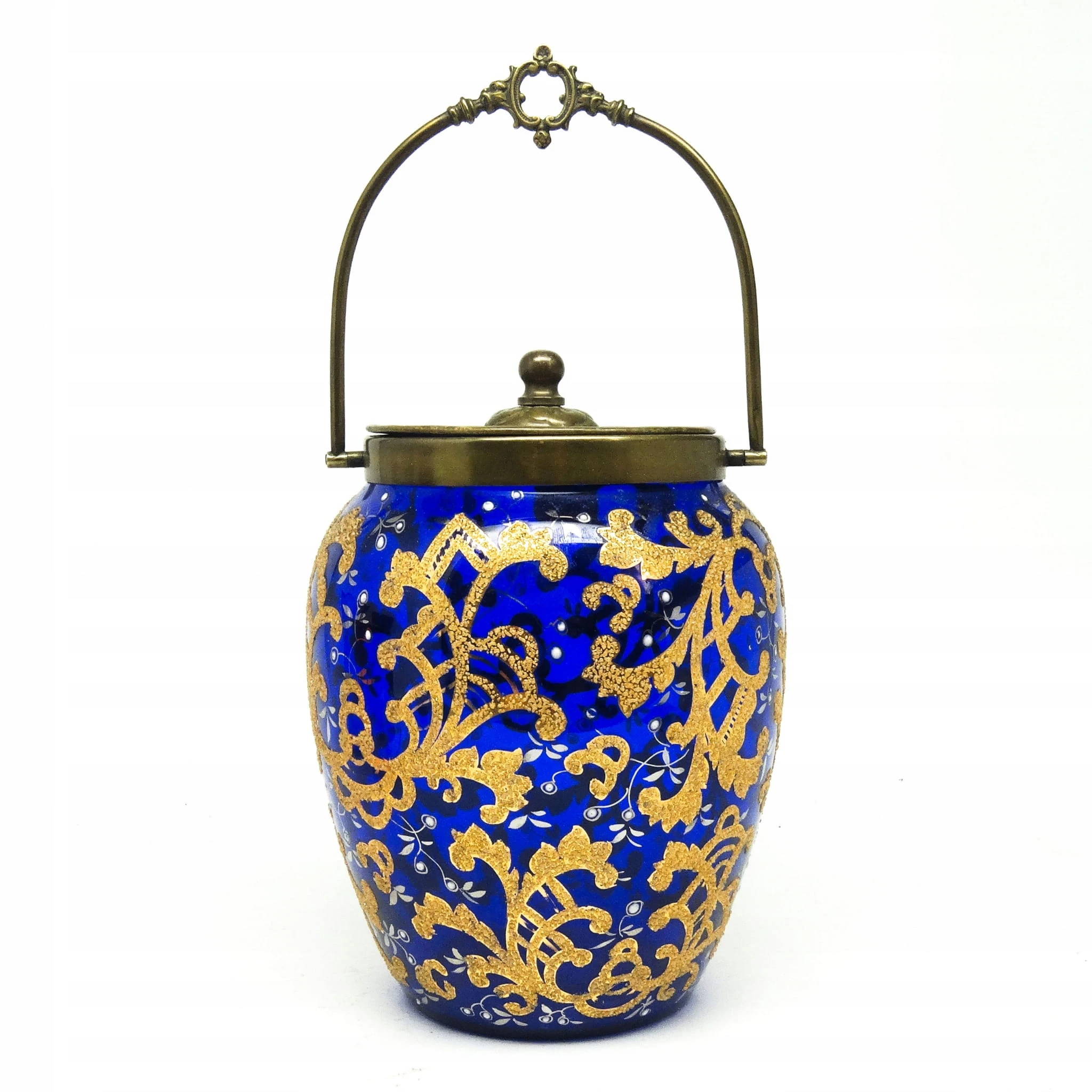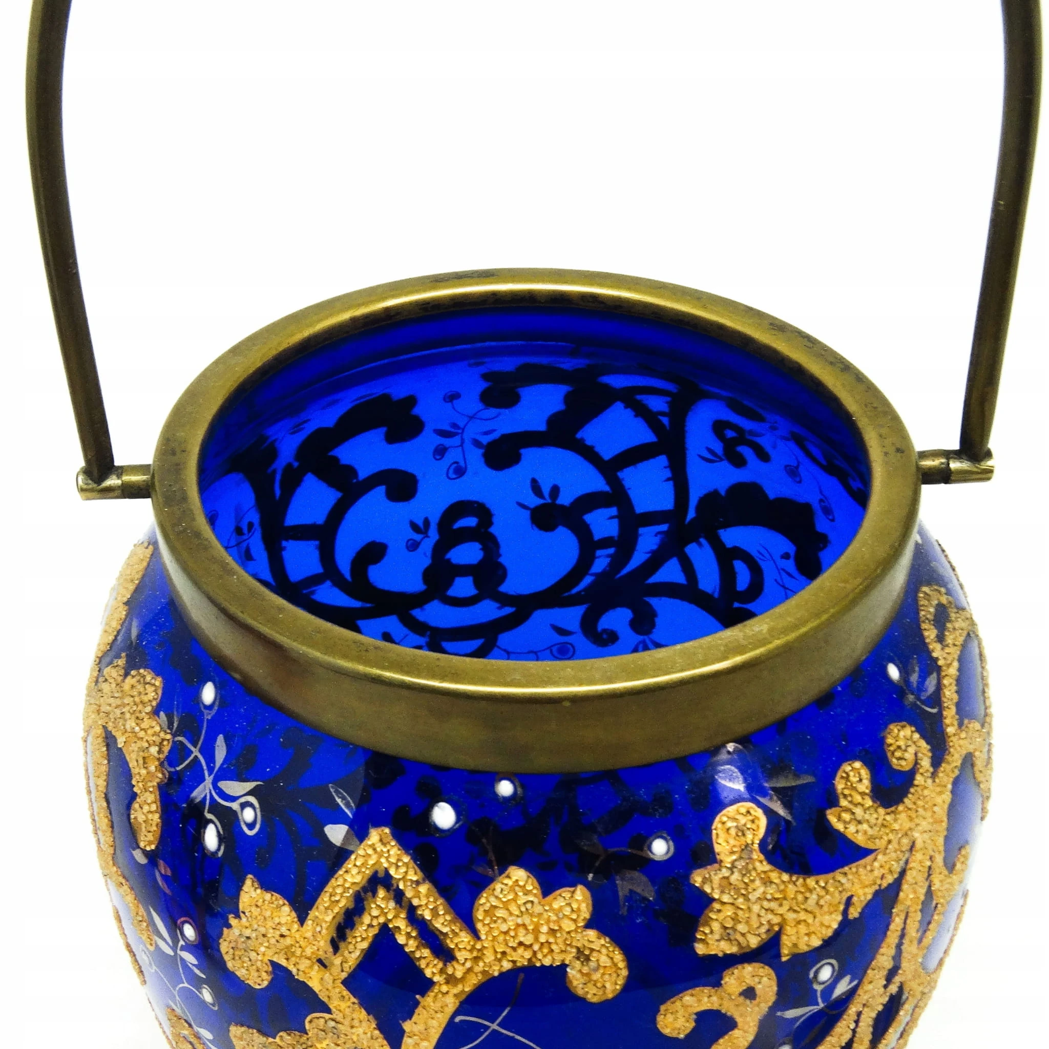 Piękna herbatnica w okuciu wyprodukowana w latach 20. w Niemczech. Zachowana jest w bardzo dobrym stanie. Wygląda niezwykle efektownie. Jest to unikatowy i ekskluzywny przedmiot. Pokrywa dobierana i pasuje. Wysokość podana wraz z pałąkiem.