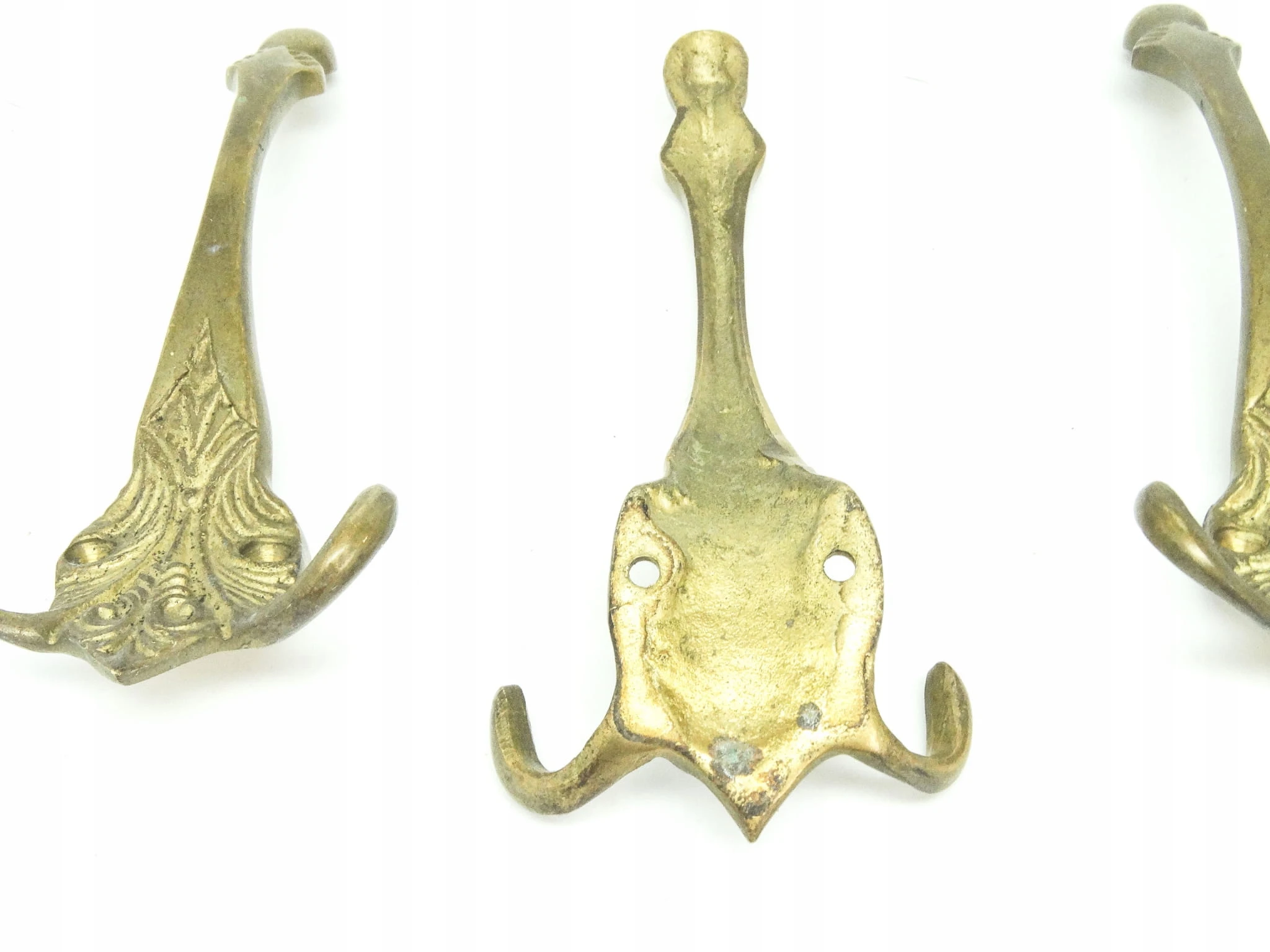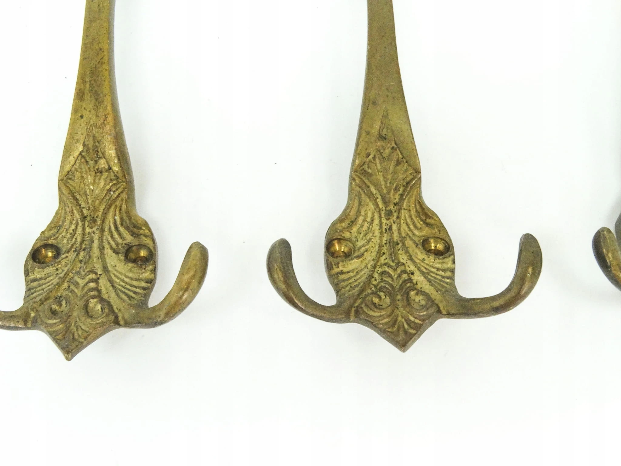 Zestaw wieszaków (4 szt.) jest z lat 70-tych. Stan przedmiotu jest bardzo dobry. Wykonany z mosiądzu w Polsce.