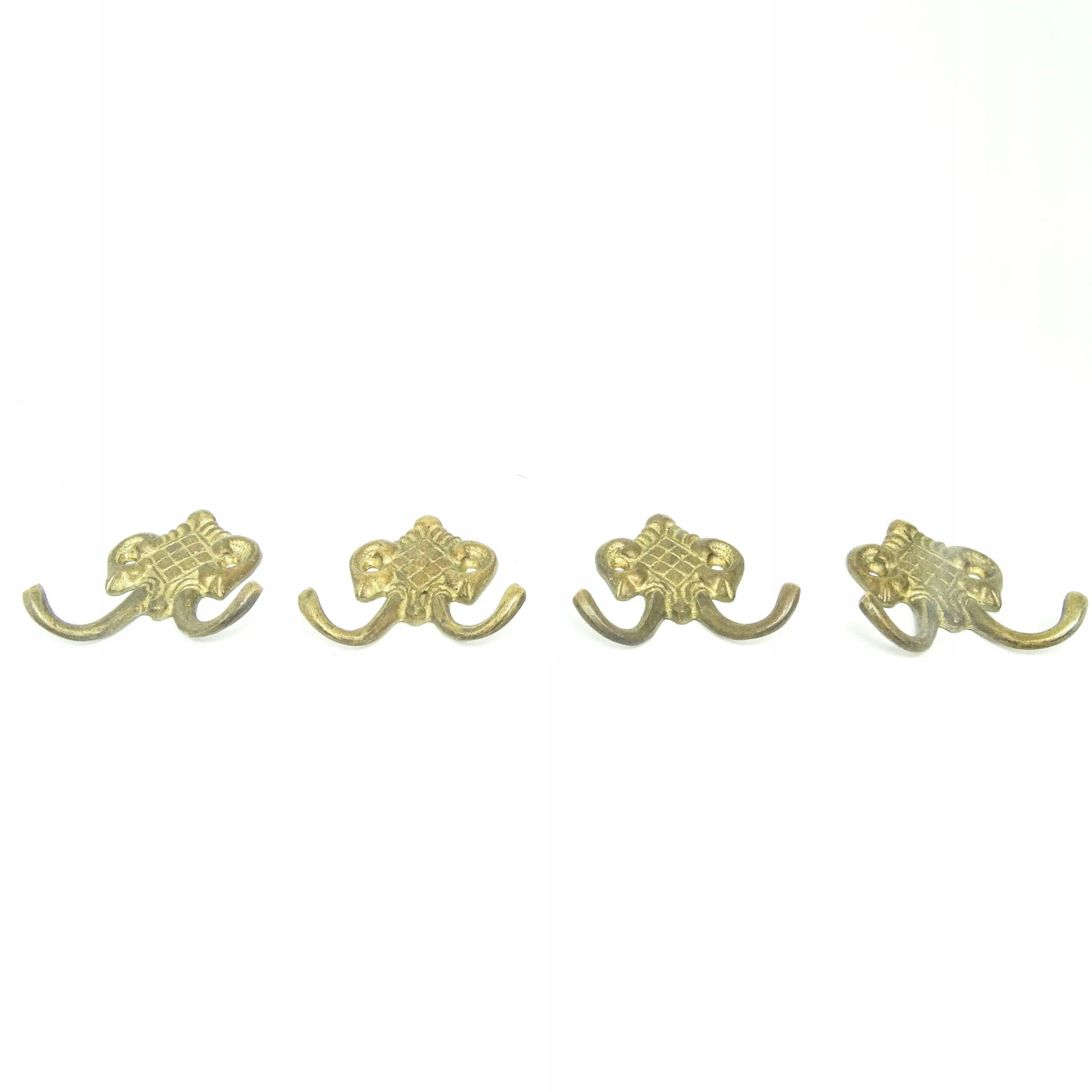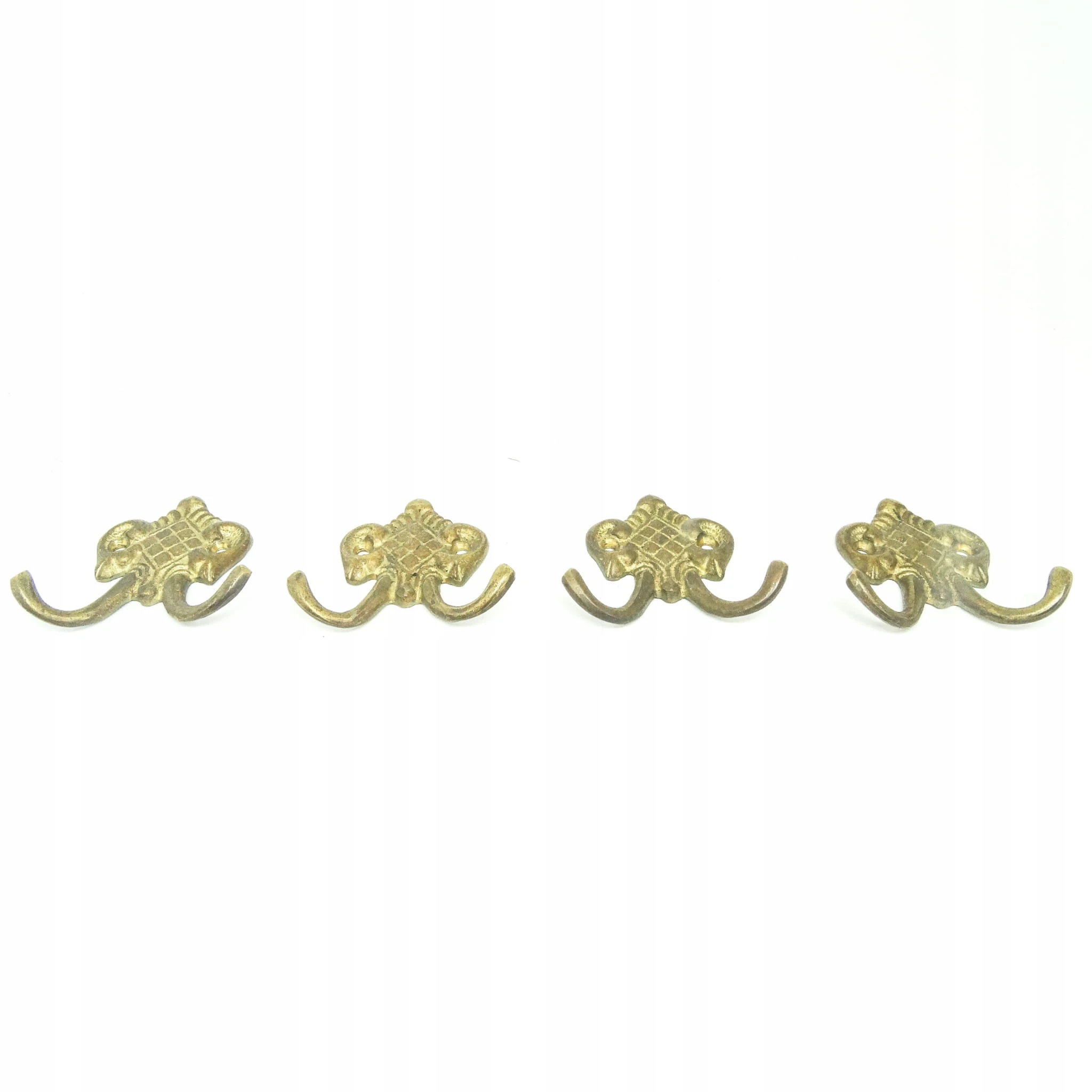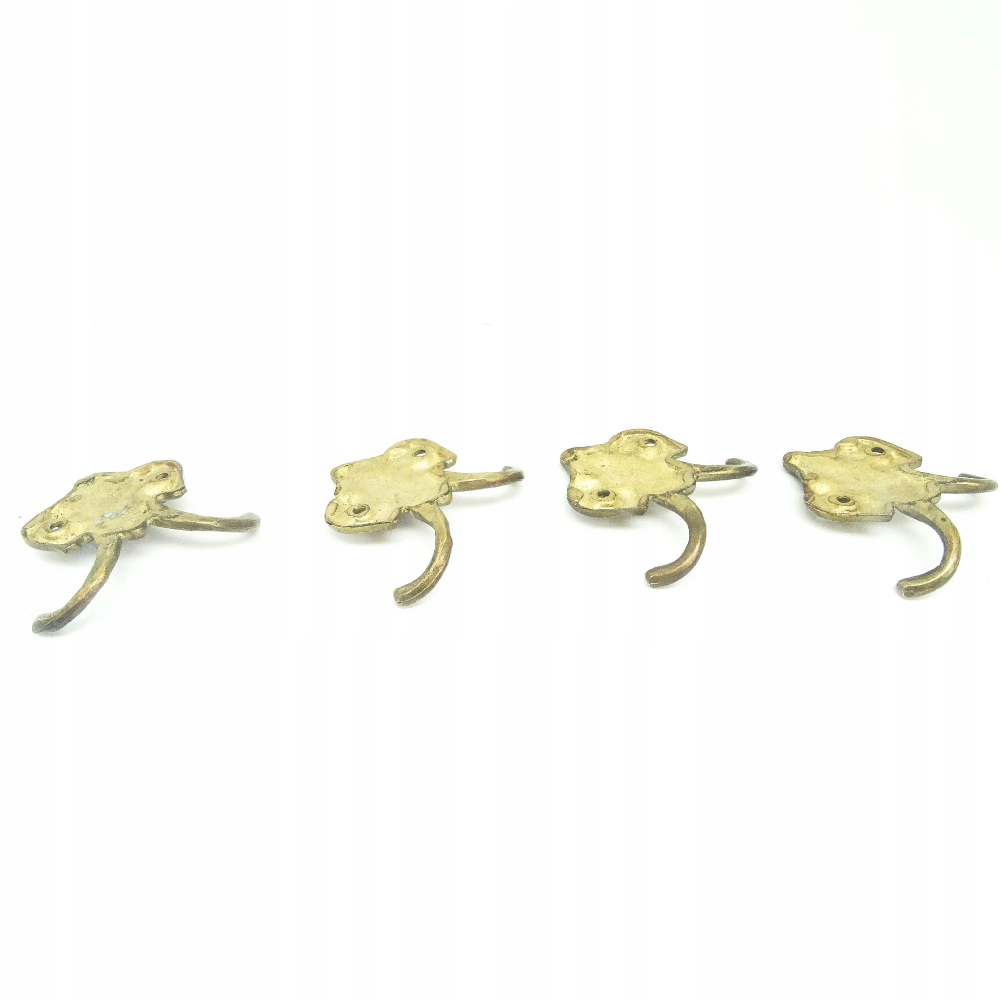 Zestaw wieszaków (4 szt.) jest z lat 70-tych. Stan przedmiotu jest bardzo dobry. Wykonany z mosiądzu w Polsce.