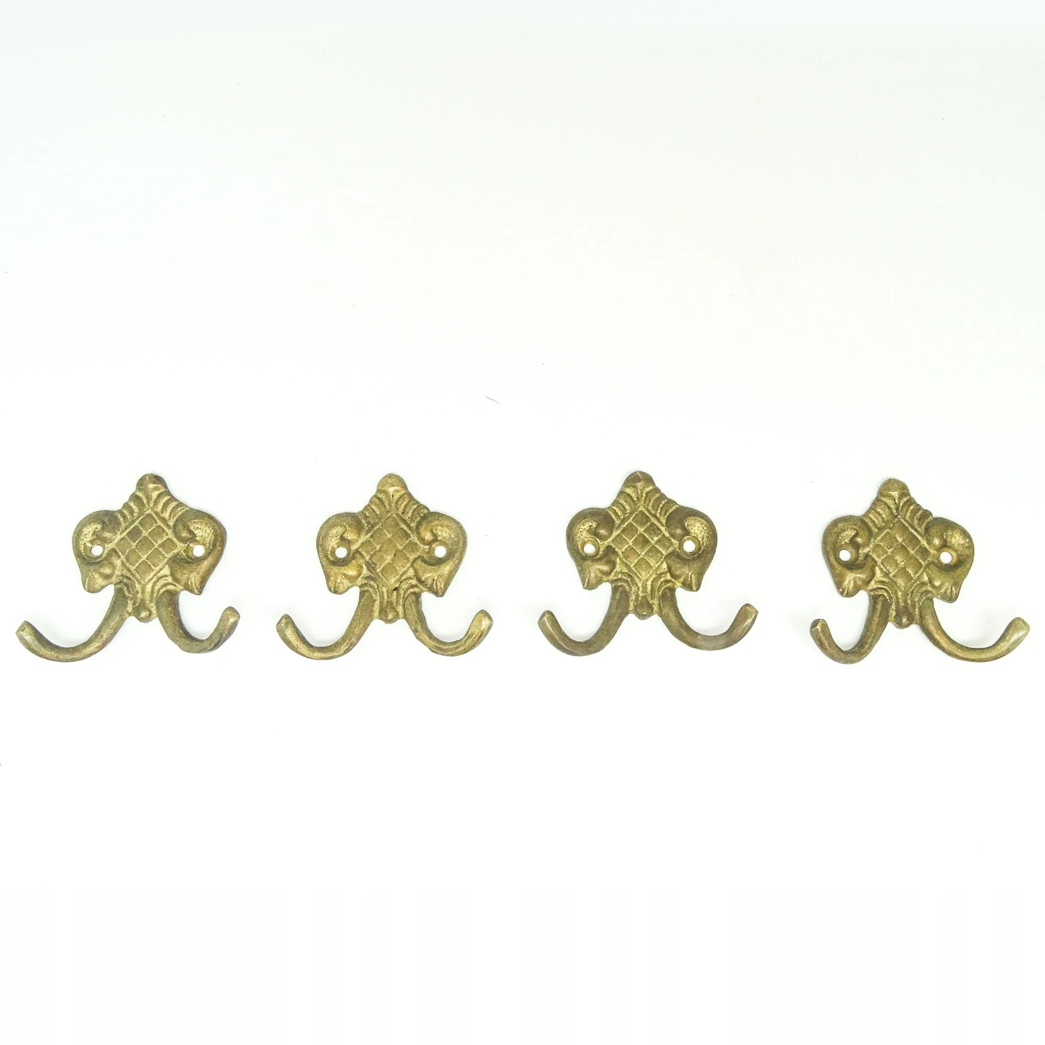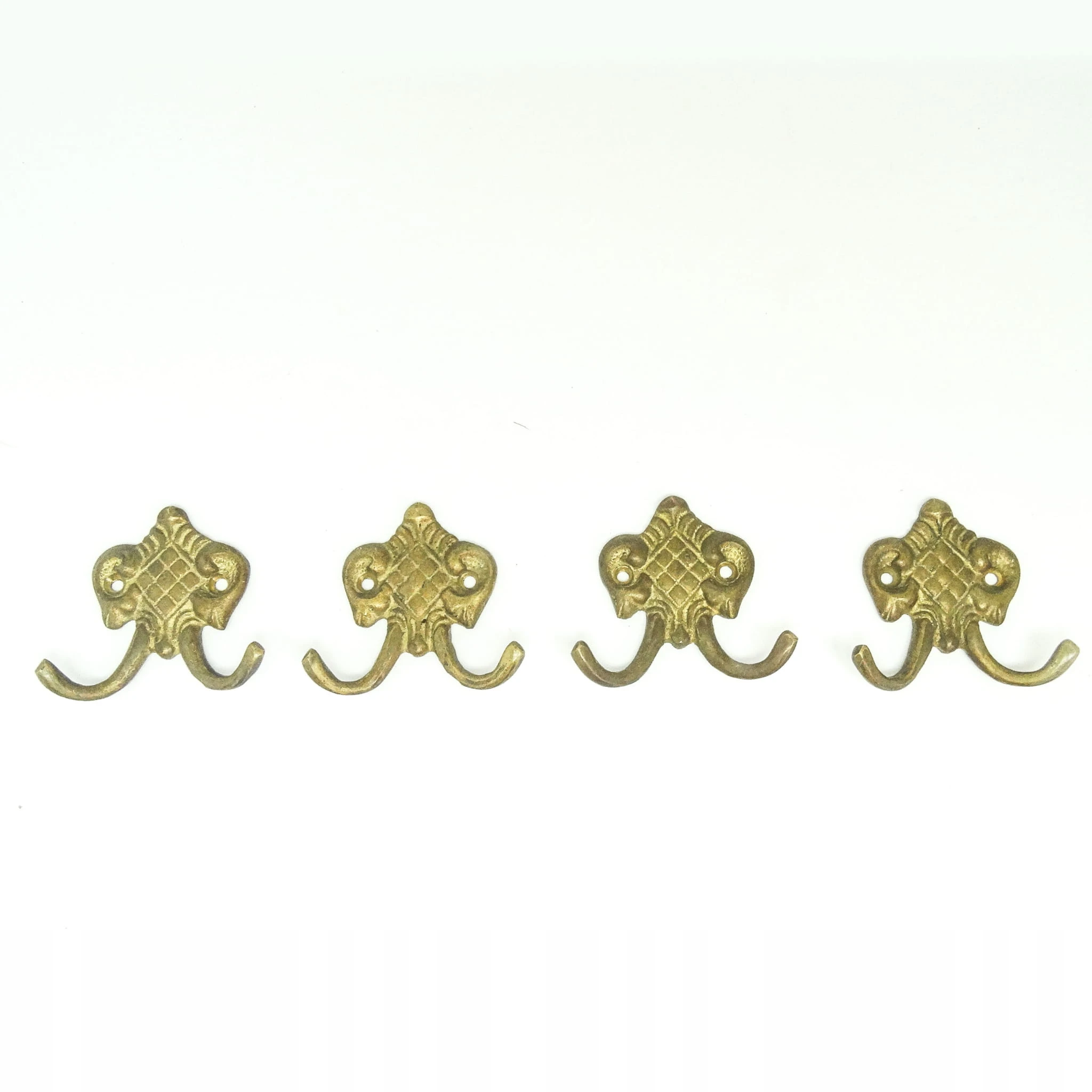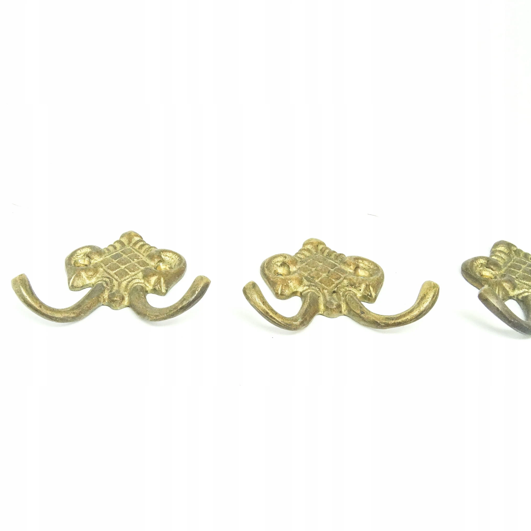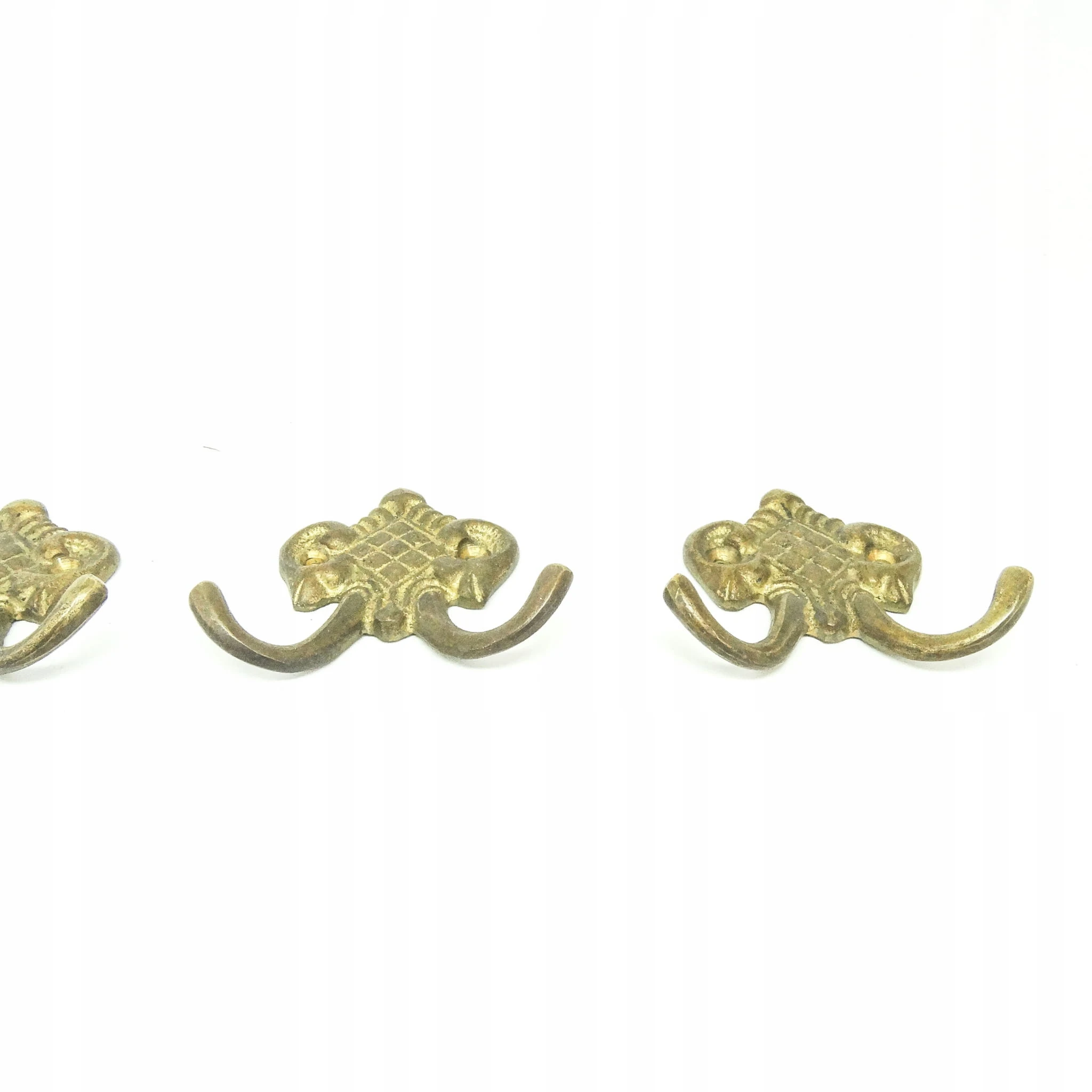 Zestaw wieszaków (4 szt.) jest z lat 70-tych. Stan przedmiotu jest bardzo dobry. Wykonany z mosiądzu w Polsce.
