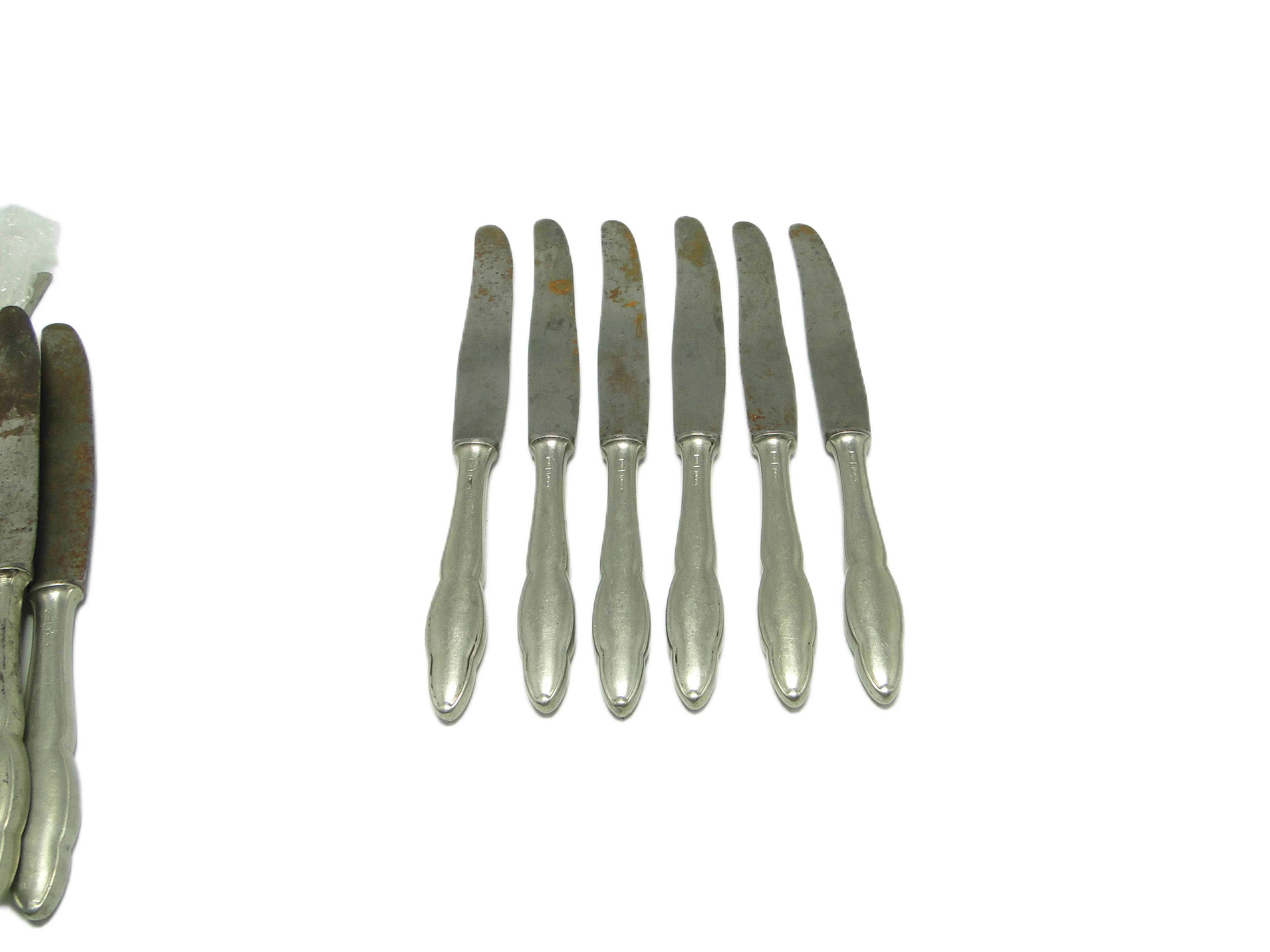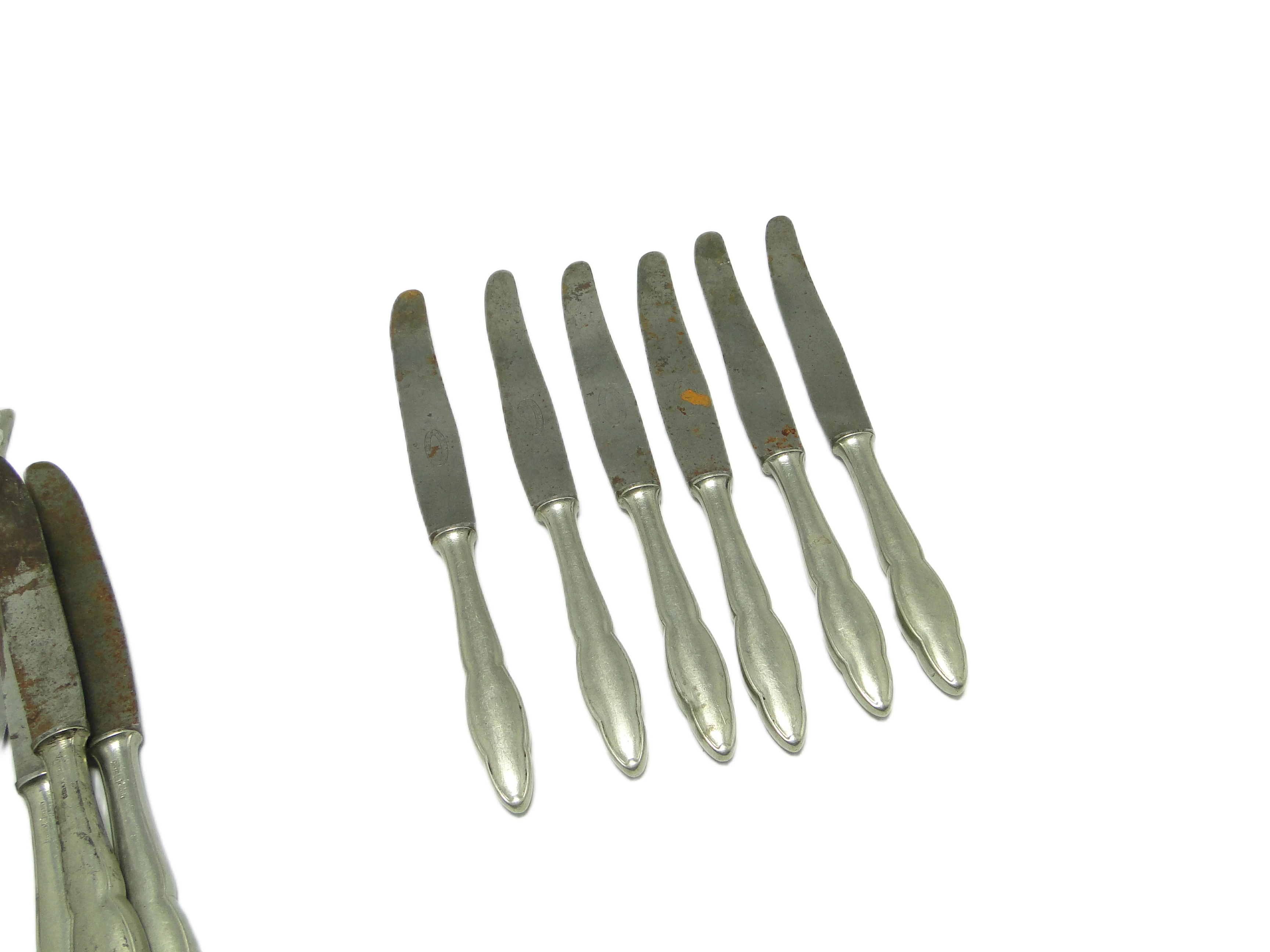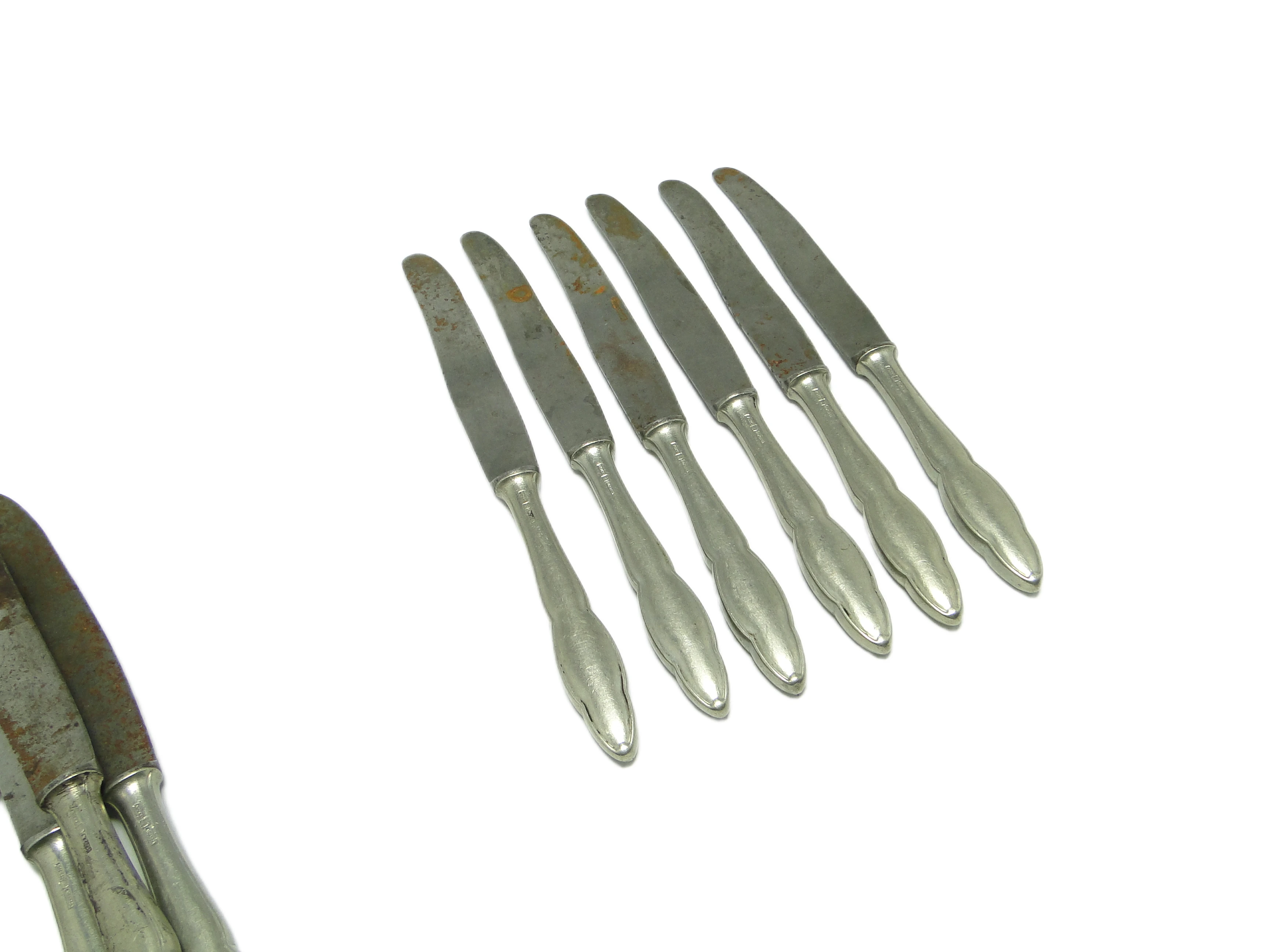Komplet noży do chleba Modernizm, mosiądz srebrzony, Polska, lata 50.