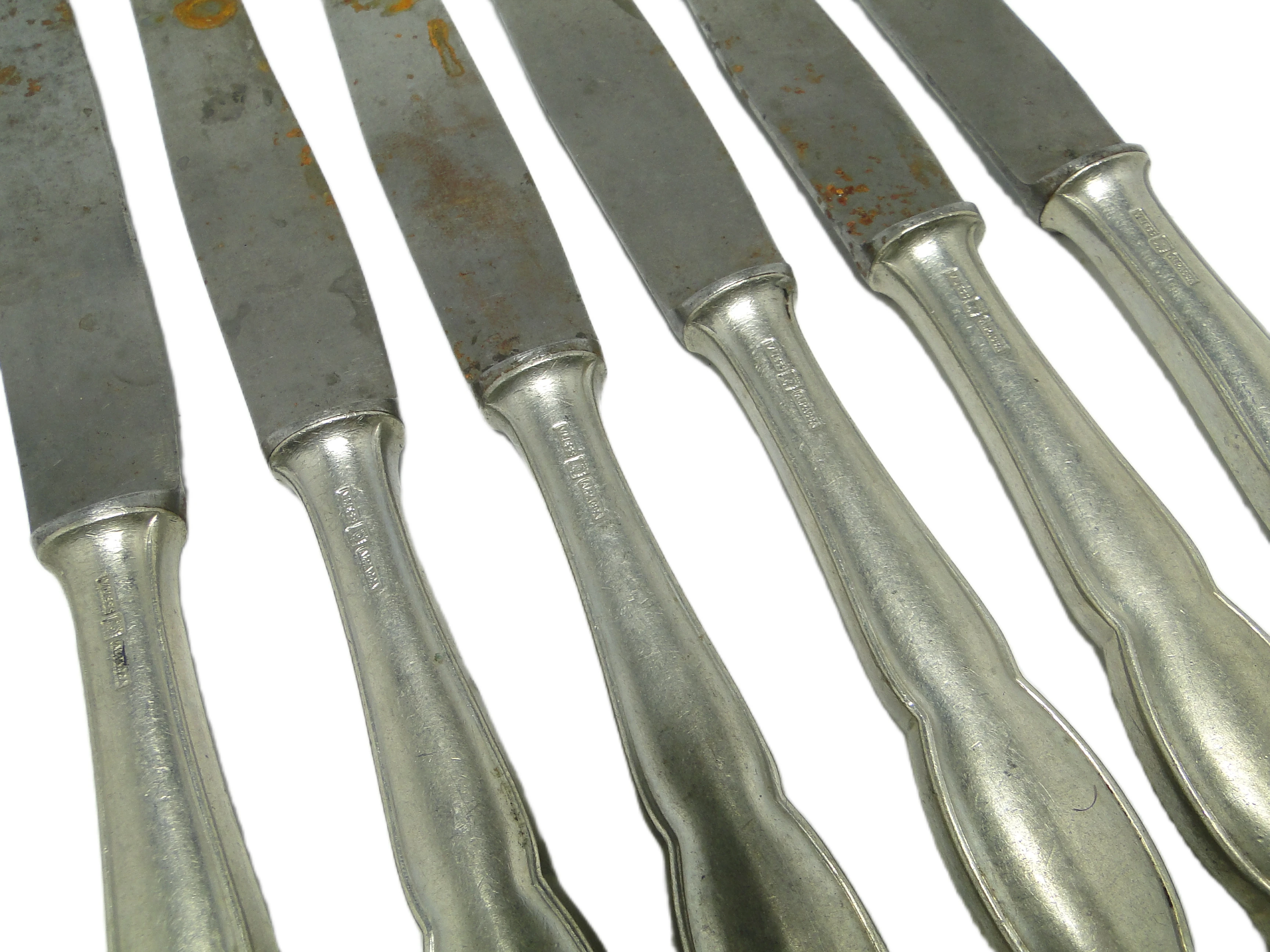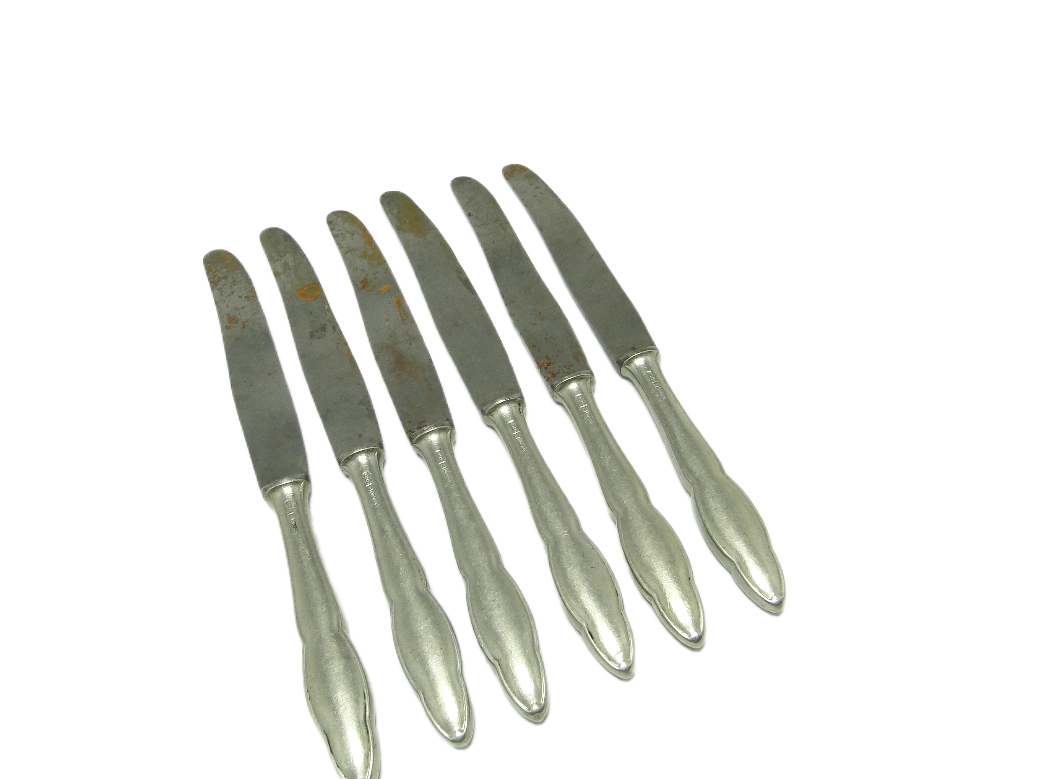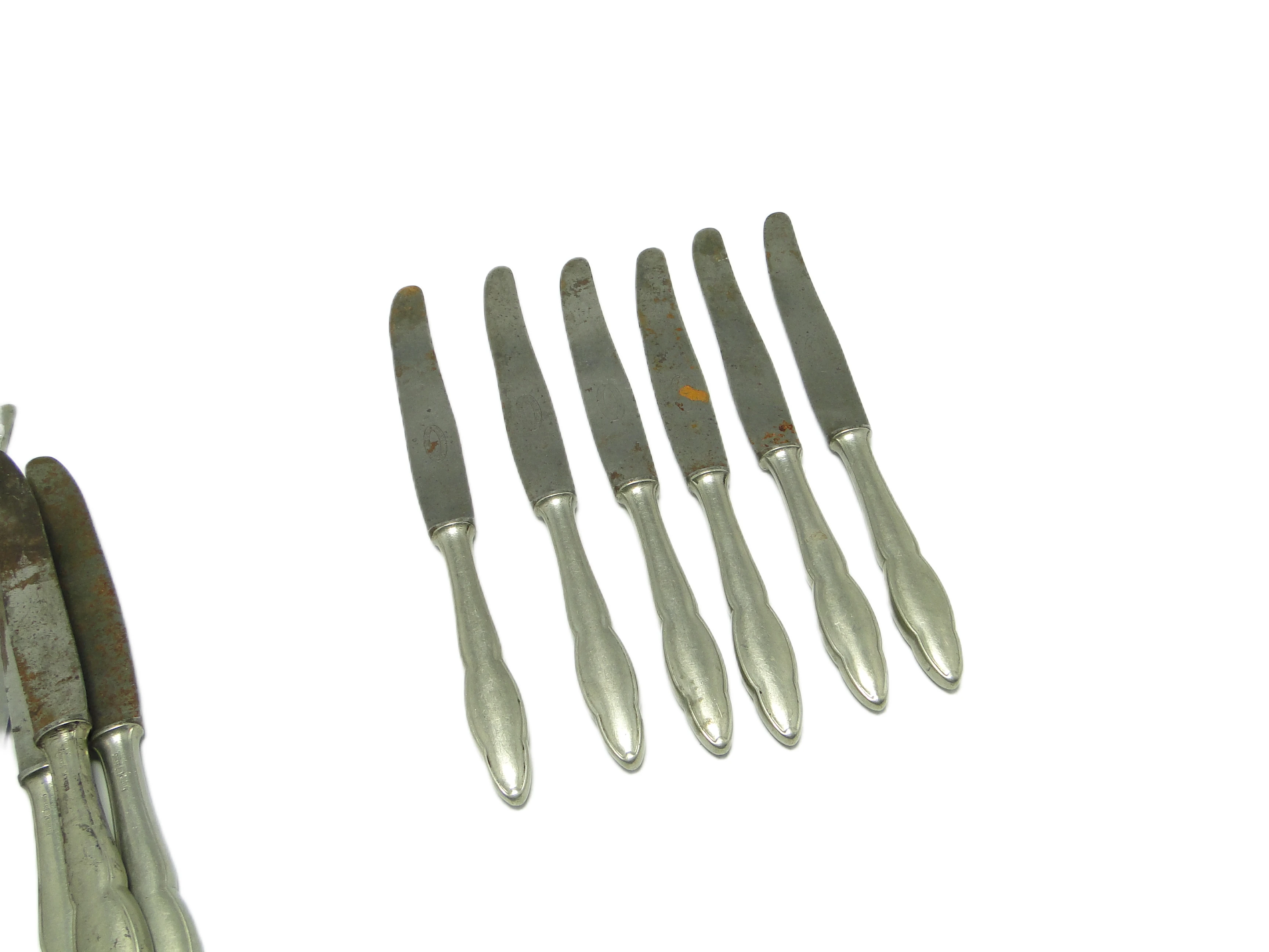 Komplet noży do chleba Modernizm, mosiądz srebrzony, Polska, lata 50.