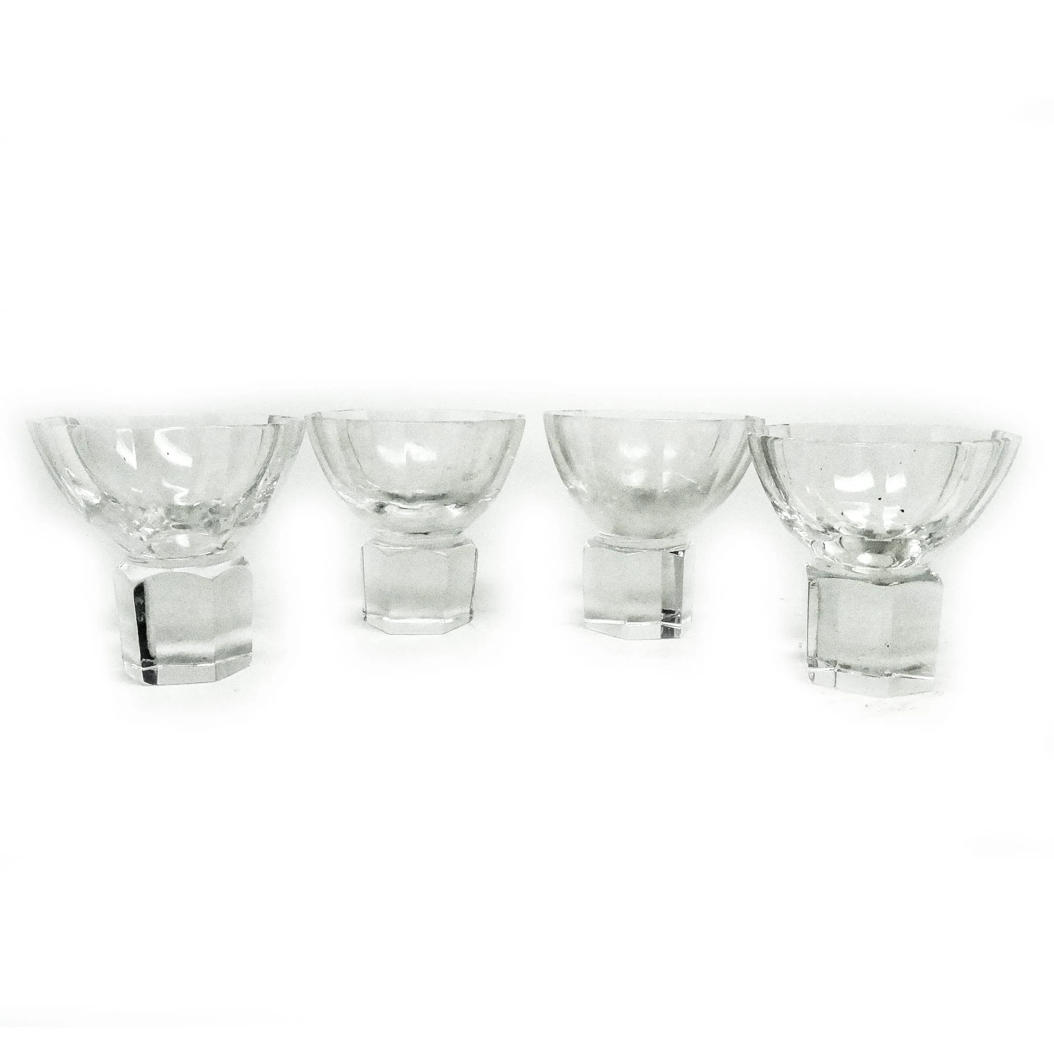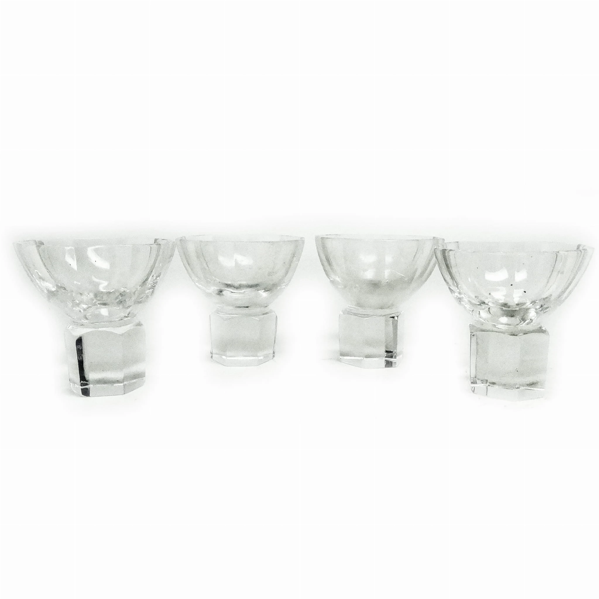 Kieliszki do wódki wykonane ze szkła szlifowanego.
