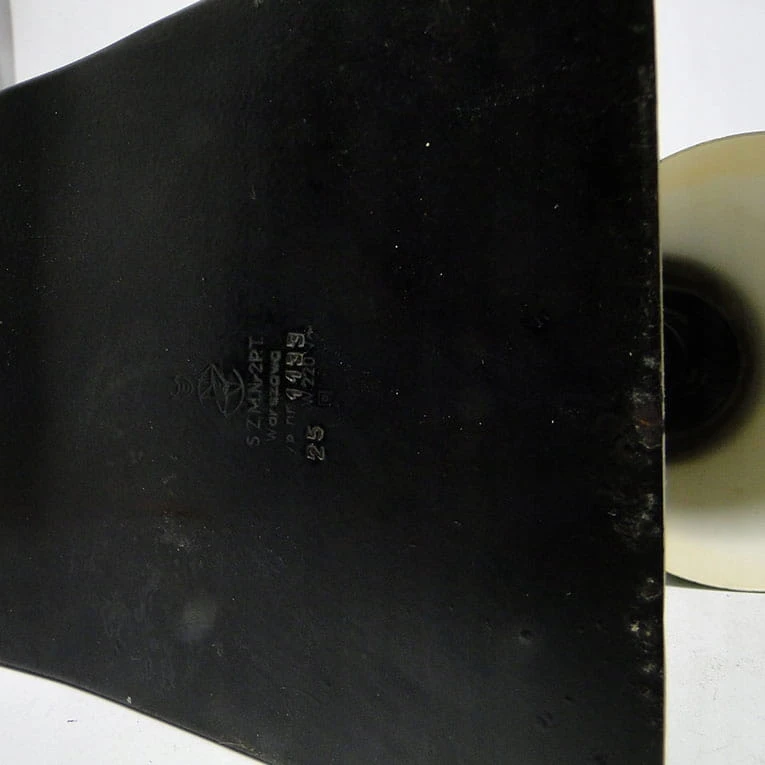 Zaprojektowana przez Apolinarego Gałeckiego, wyprodukowana w Stołecznych Zakładach Metalowych Nr 2 Przemysłu Terenowego w Warszawie w okresie lat 60 XX w. Stal lakierowana.