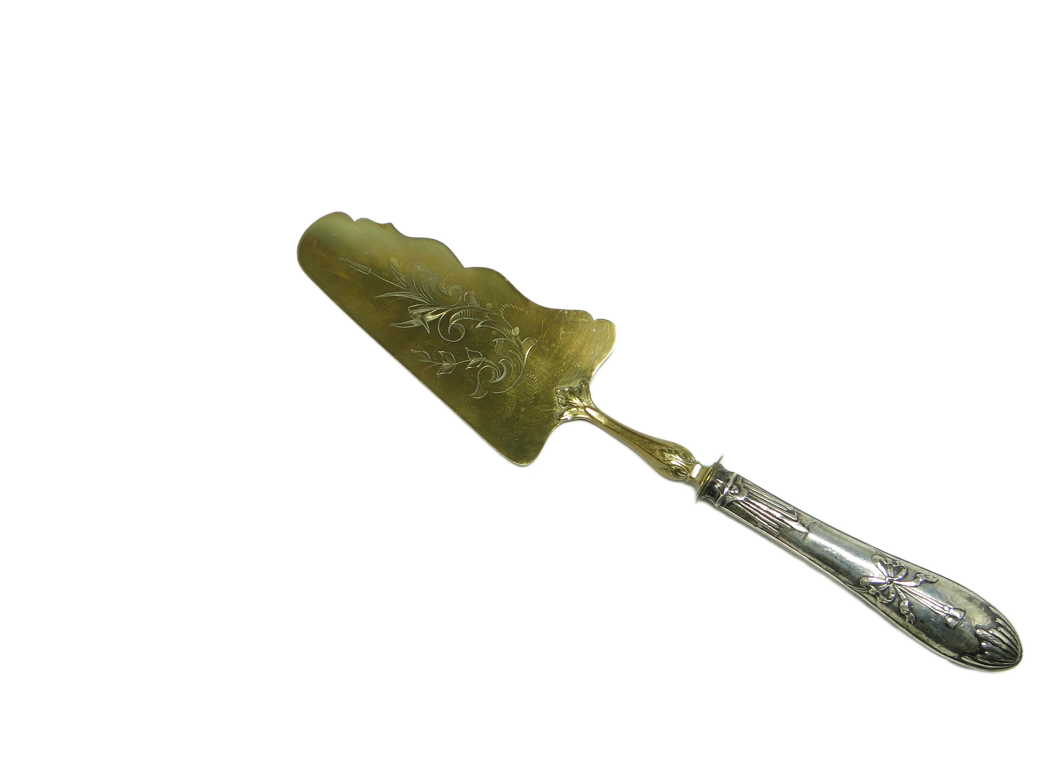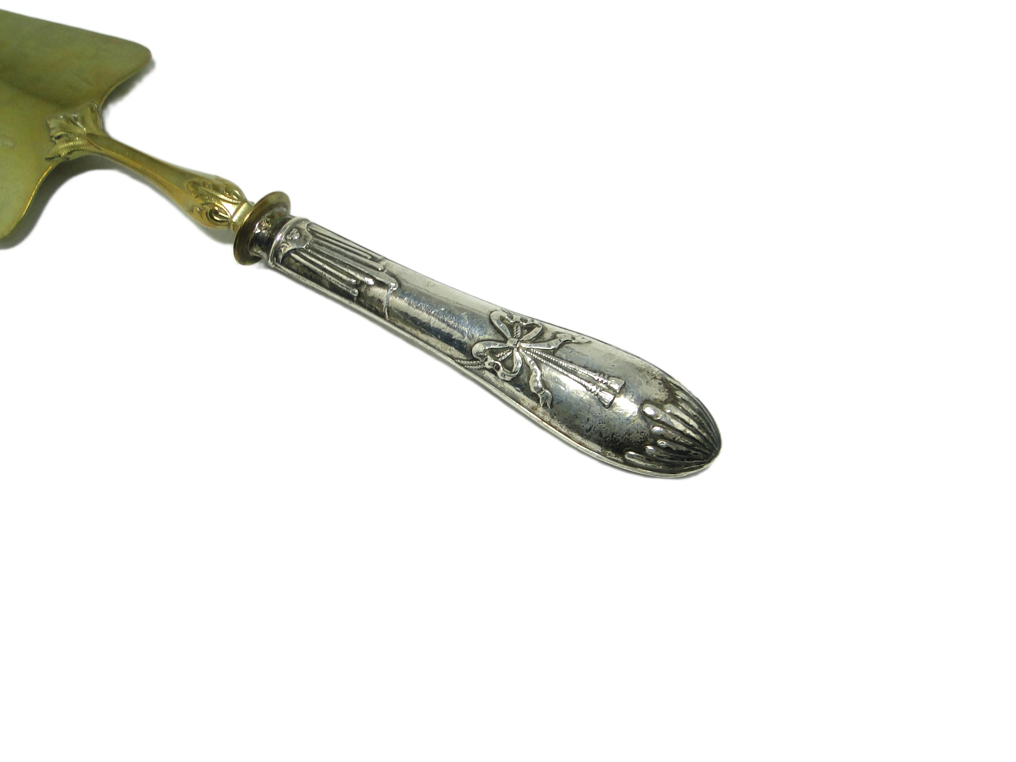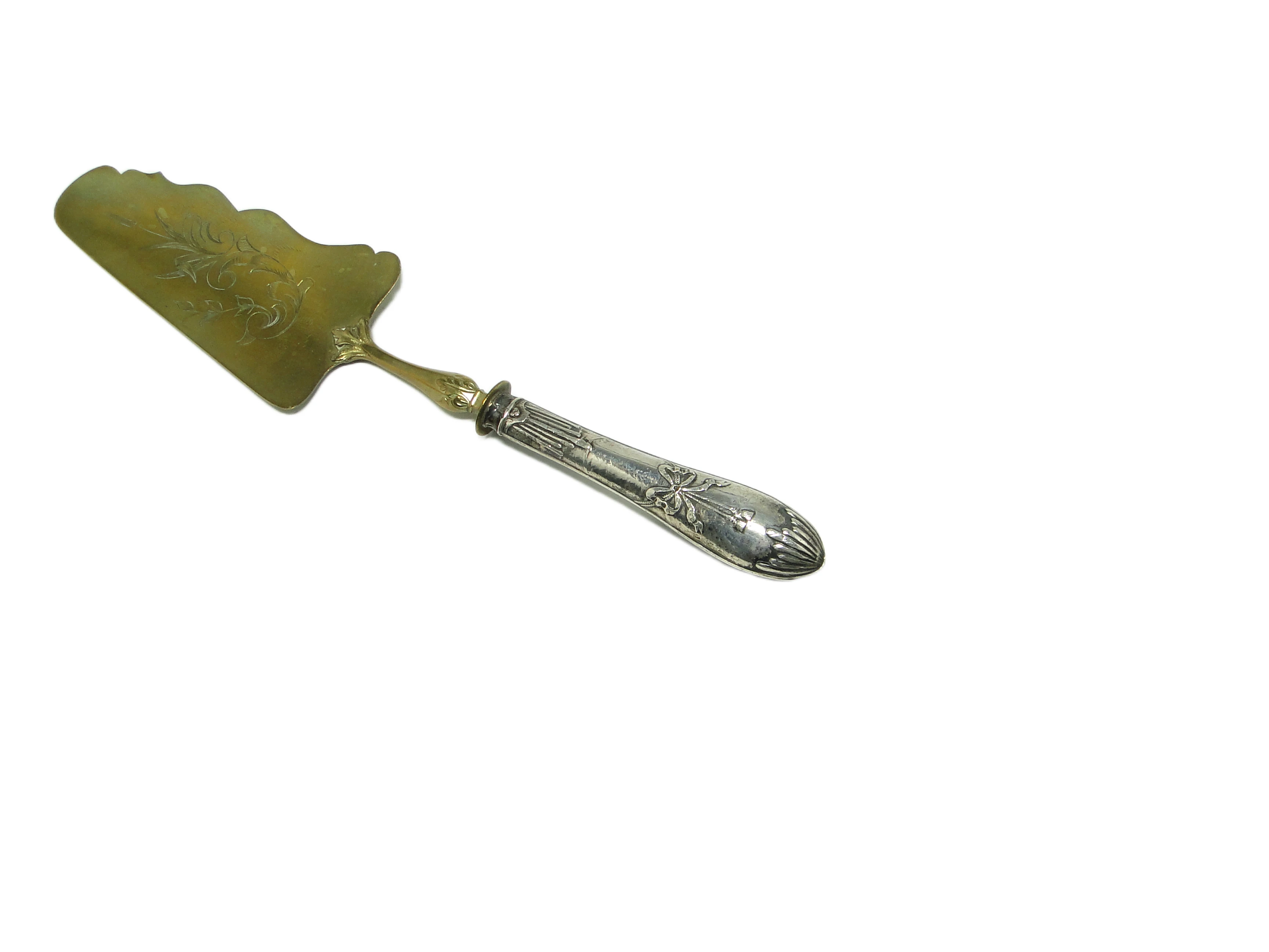 Łopatka do tortu, Art Nouveau, mosiądz złocony, srebro, Francja, początek XX w.
