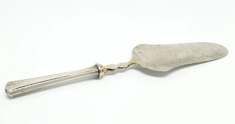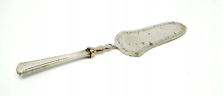 Przedmiotem aukcji jest srebna łopatka do tortu.