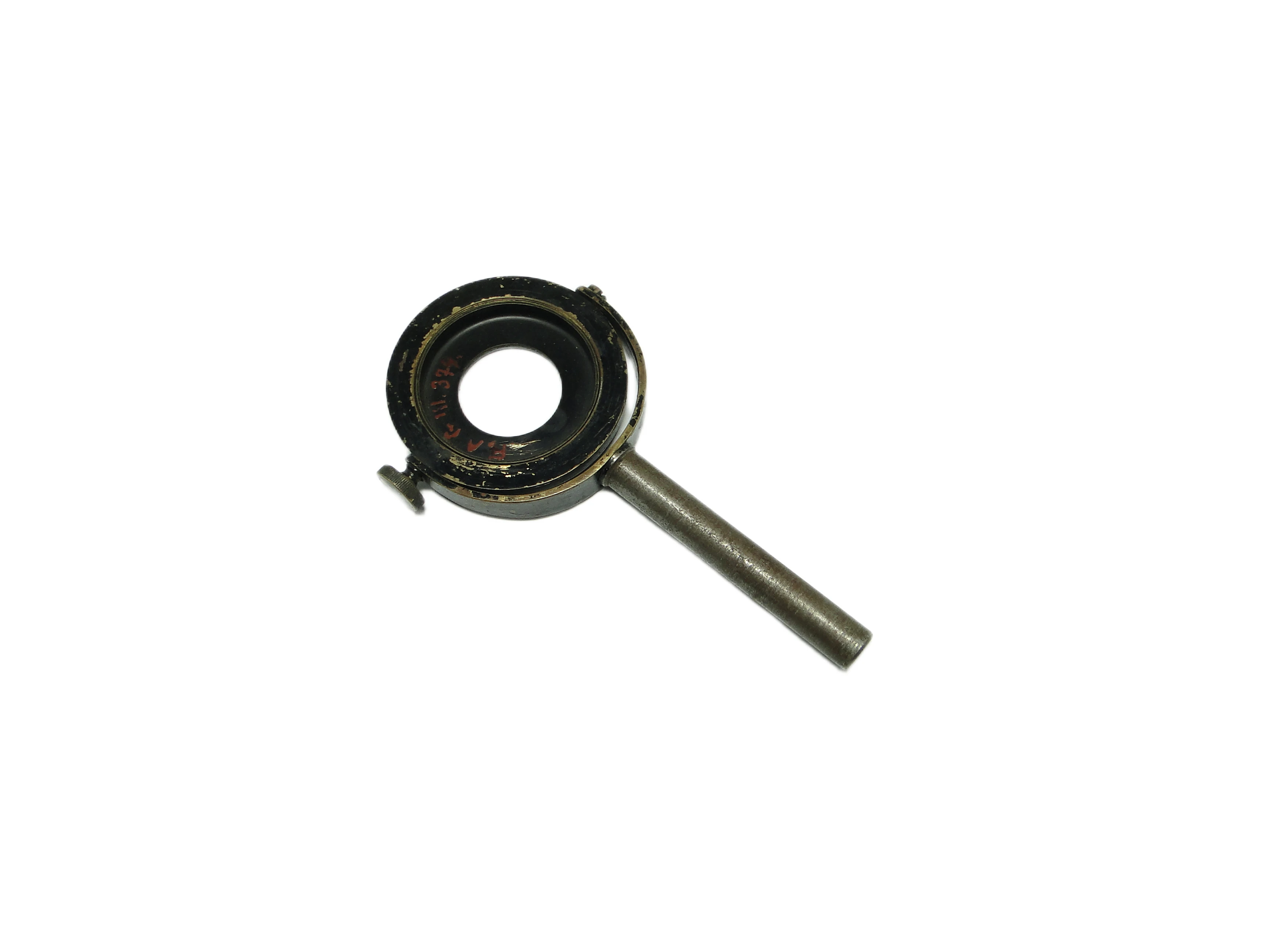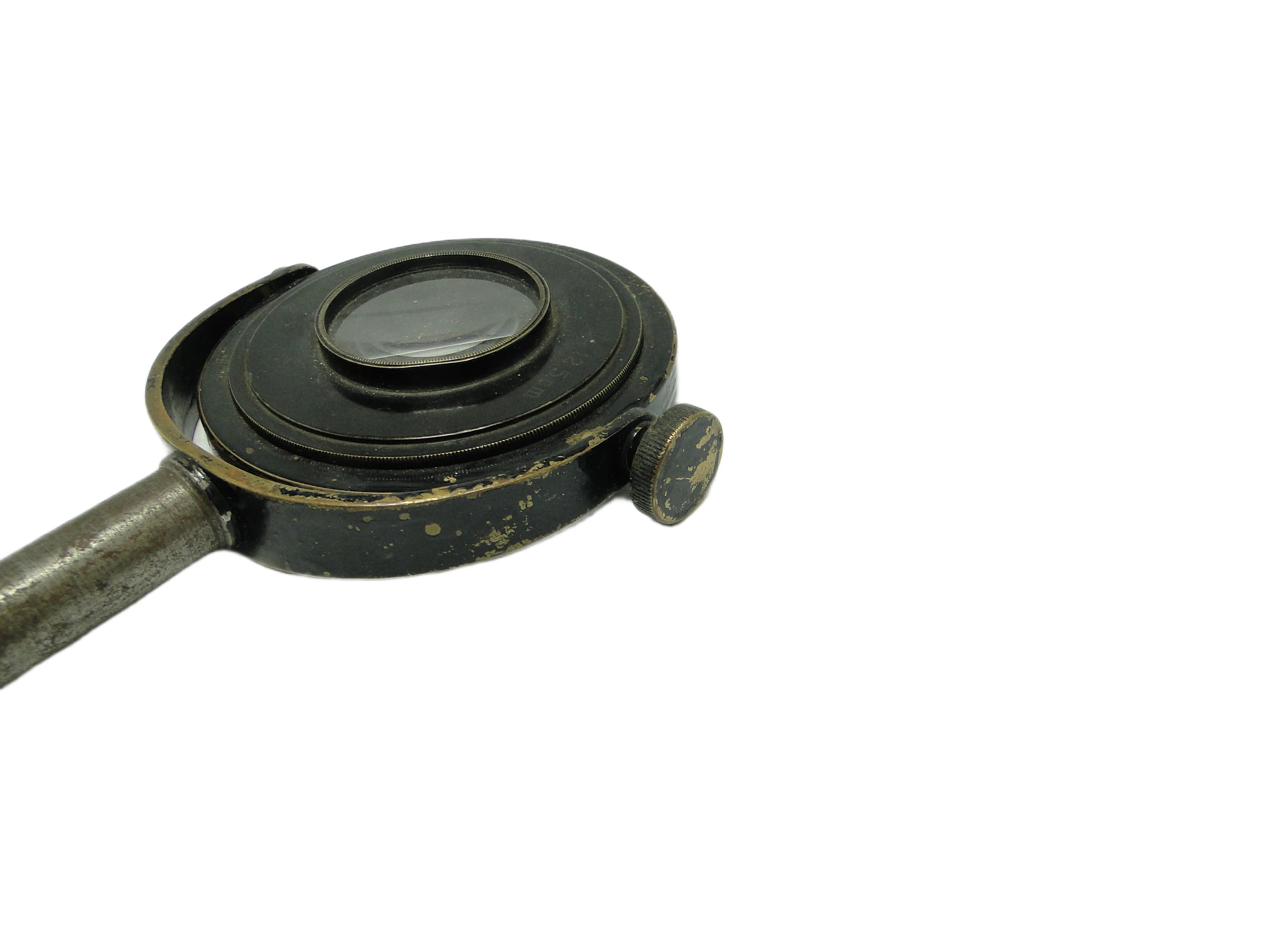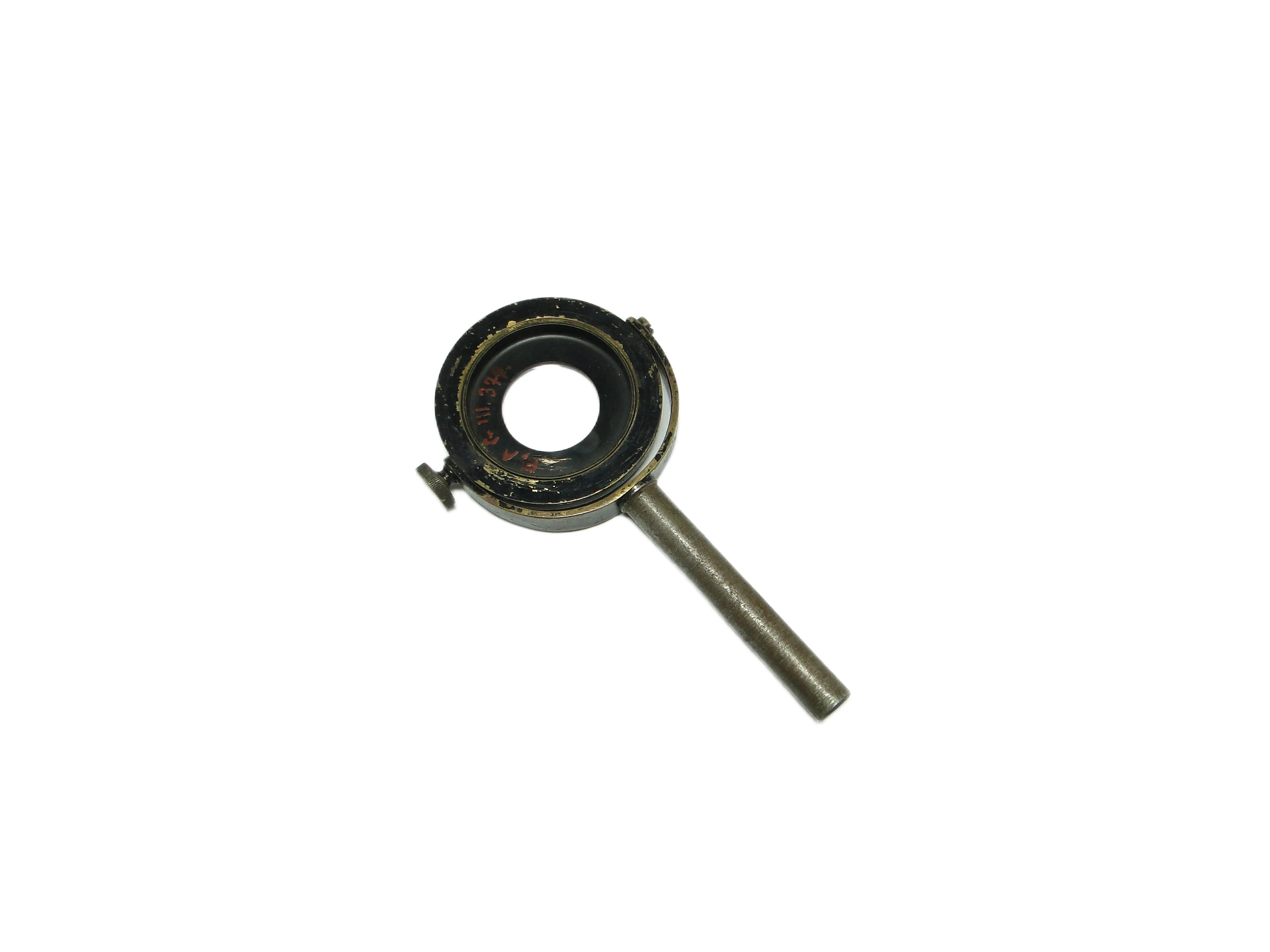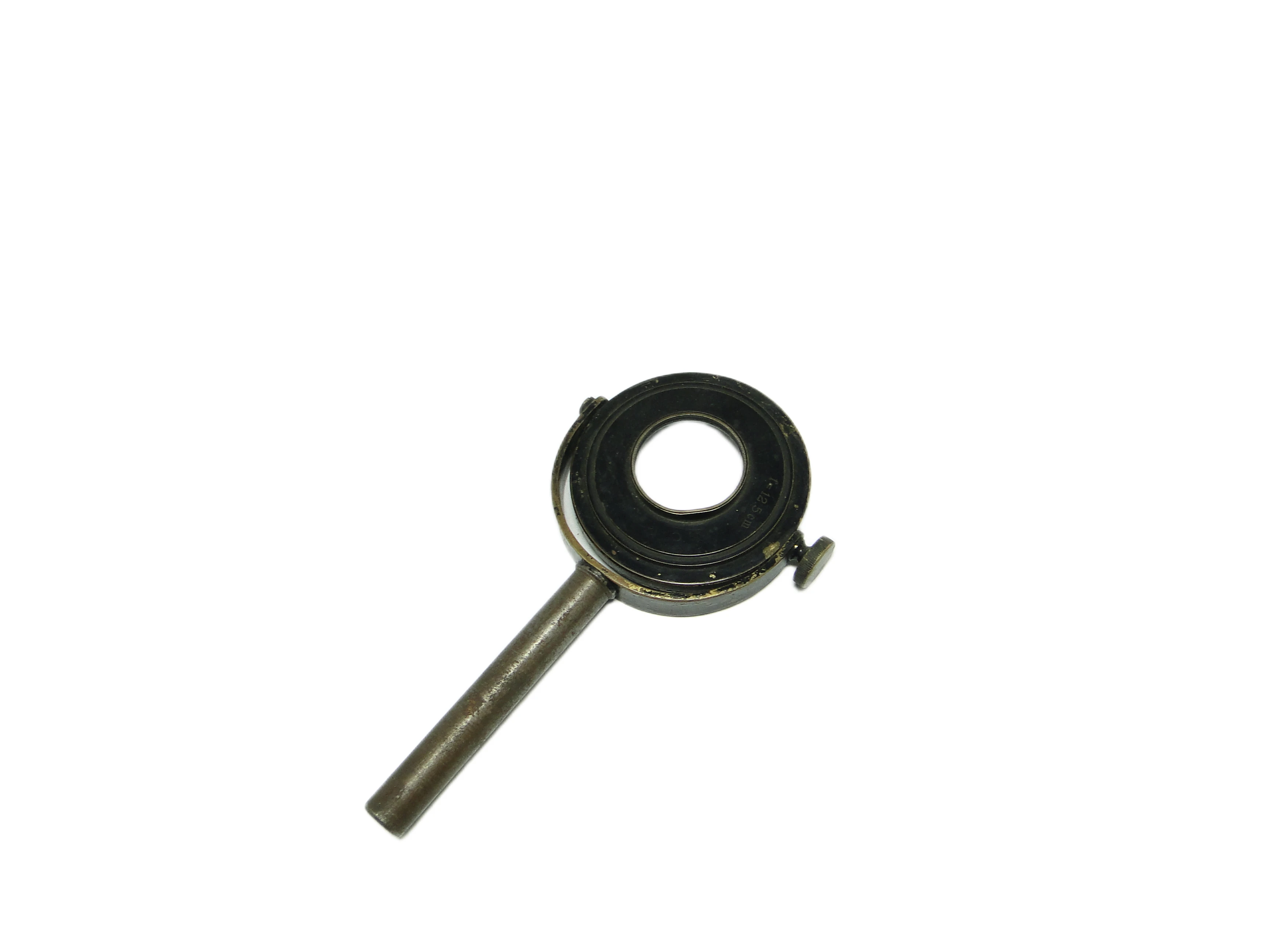 Lupa przemysłowa z lat 50., wyprodukowana w Polsce, prezentuje użytkowe wzornictwo powojennej epoki. Okrągła oprawa soczewki została wykonana z metalu pokrytego matową, czarną farbą – miejscami przetartą, co uwydatnia kontakt z czasem i codziennym użyciem. Na czarnej ramie widoczne są czerwone oznaczenia techniczne, prawdopodobnie numery seryjne lub kody warsztatowe. Rączka oraz elementy konstrukcyjne powstały z masywnego, srebrnoszarego metalu o lekko spatynowanej powierzchni, z widocznymi drobnymi rysami i satynowym połyskiem. Konstrukcja pozbawiona jest dekoracyjnych detali, a widoczne śruby i wyważone proporcje – cylindryczna rączka i kompaktowa, okrągła soczewka – podkreślają funkcjonalny, industrialny charakter przedmiotu. Stan zachowania bardzo dobry – brak poważnych uszkodzeń, całość oryginalna i kompletna.W tej lupie wyczuwalny jest głos polskiego rzemiosła przemysłowego lat 50., kiedy trwałość, prostota i przejrzystość formy stawały się odpowiedzią na powojenne potrzeby. Matowa czerń, przetarcia i ślady użytkowania opowiadają o narzędziu, które towarzyszyło codziennym czynnościom w laboratorium czy warsztacie, a czerwone oznaczenia zdają się szeptać o historii technicznych eksperymentów i rutynowych inspekcji. Każdy detal, od masywnej rączki po subtelne przetarcia na oprawie, przywołuje obraz przedmiotu, który przez lata służył skupieniu i pracy z detalem.Lupę można wykorzystać zarówno jako praktyczny instrument do czytania i oglądania drobnych detali, jak i jako wyrazisty akcent aranżacyjny w kolekcjonerskim gabinecie, industrialnym salonie czy na półce wśród antyków technicznych. Można ją zestawić z metalowymi akcesoriami, starymi książkami lub minimalistycznymi dekoracjami. Sprawdzi się w przestrzeniach w stylu mid-century modern, vintage oraz w eklektycznych wnętrzach kolekcjonerskich, gdzie jej surowy rodowód podkreśli autentyczność kompozycji.