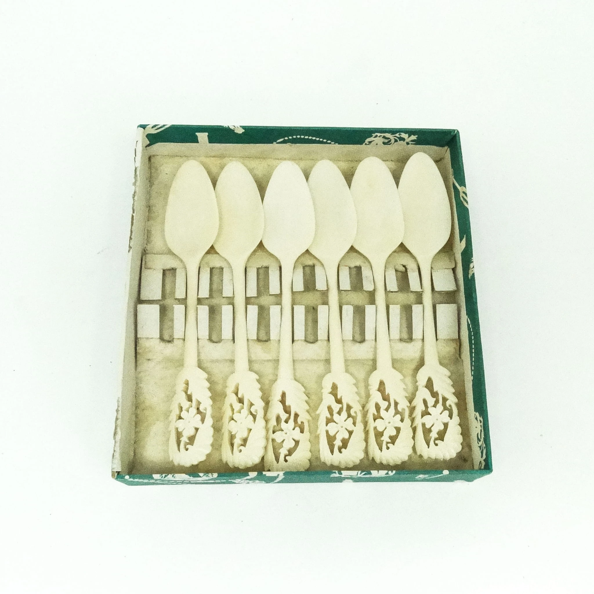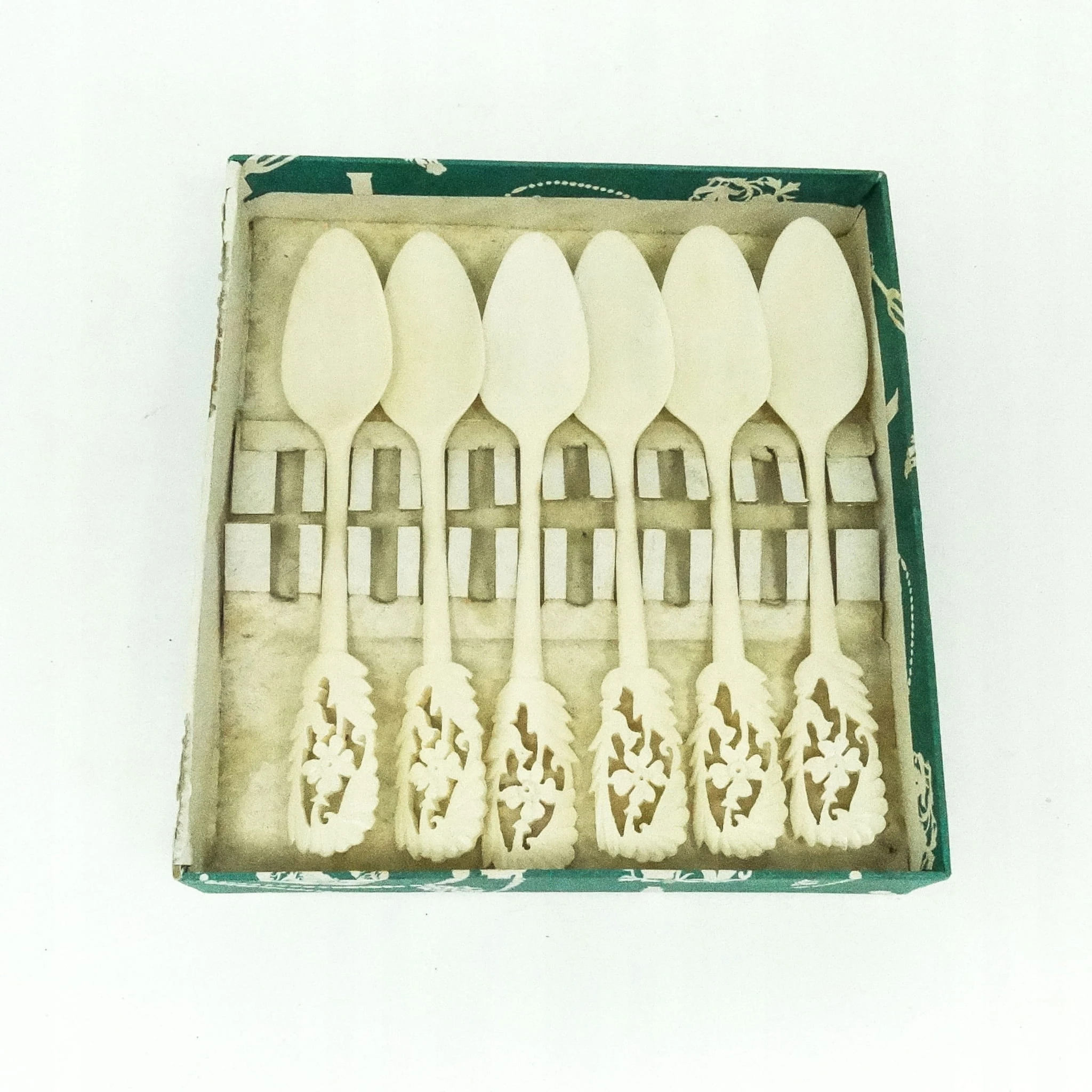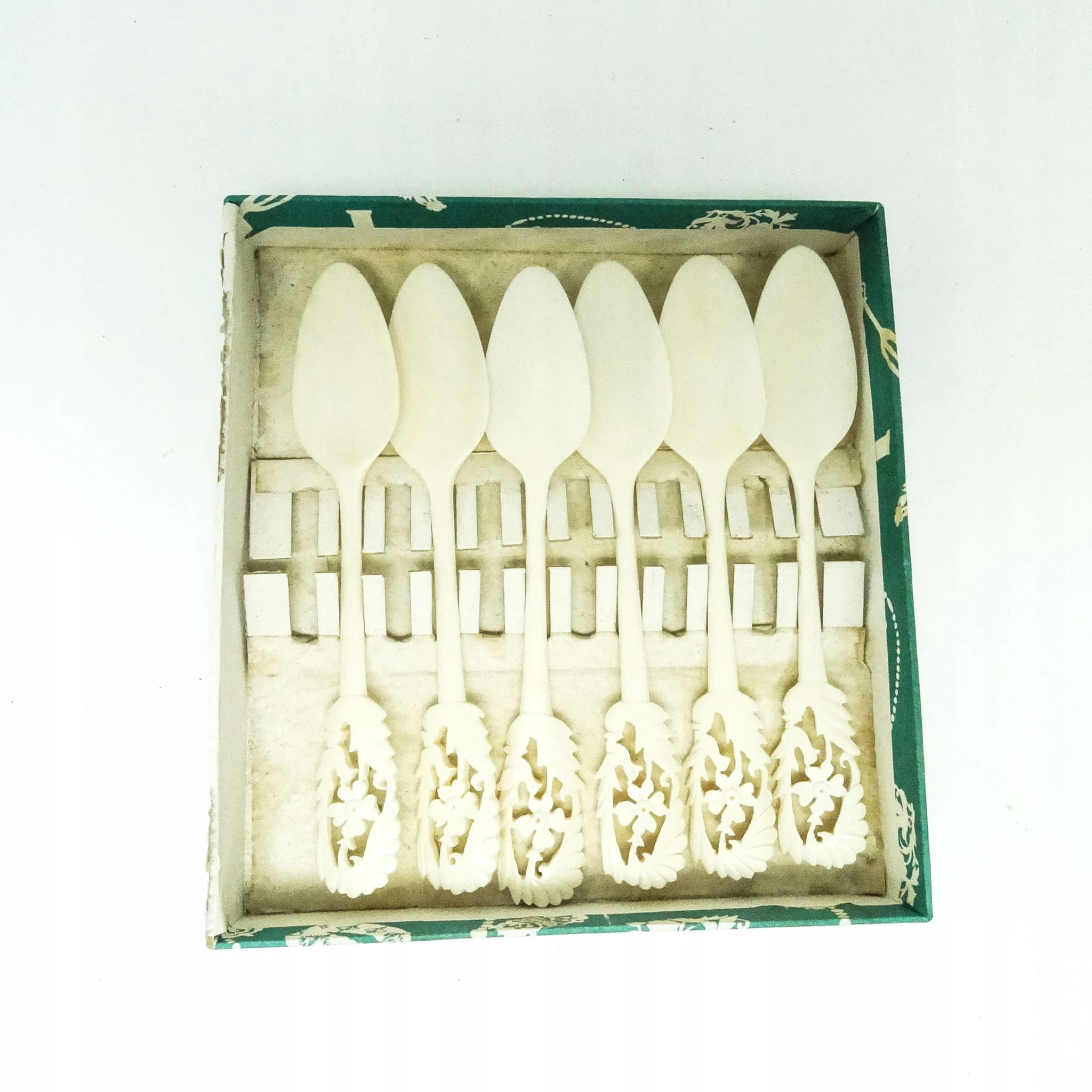 Łyżki do lodów wykonane z kości zostały stworzone w latach 50. w Niemczech. Stan bardzo dobry.