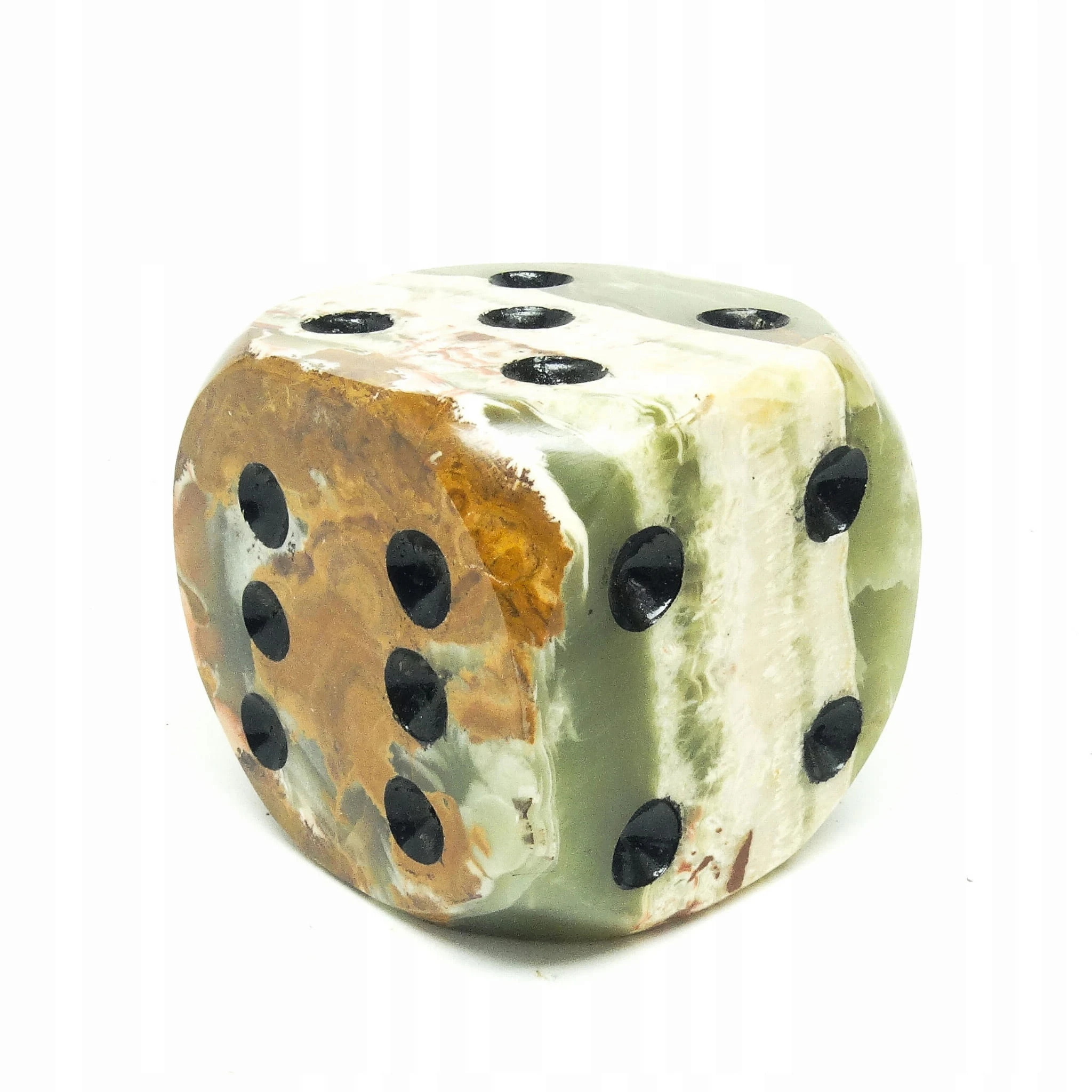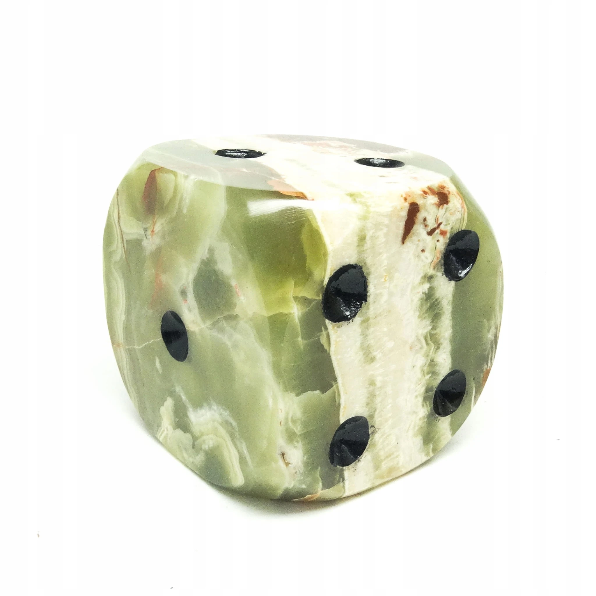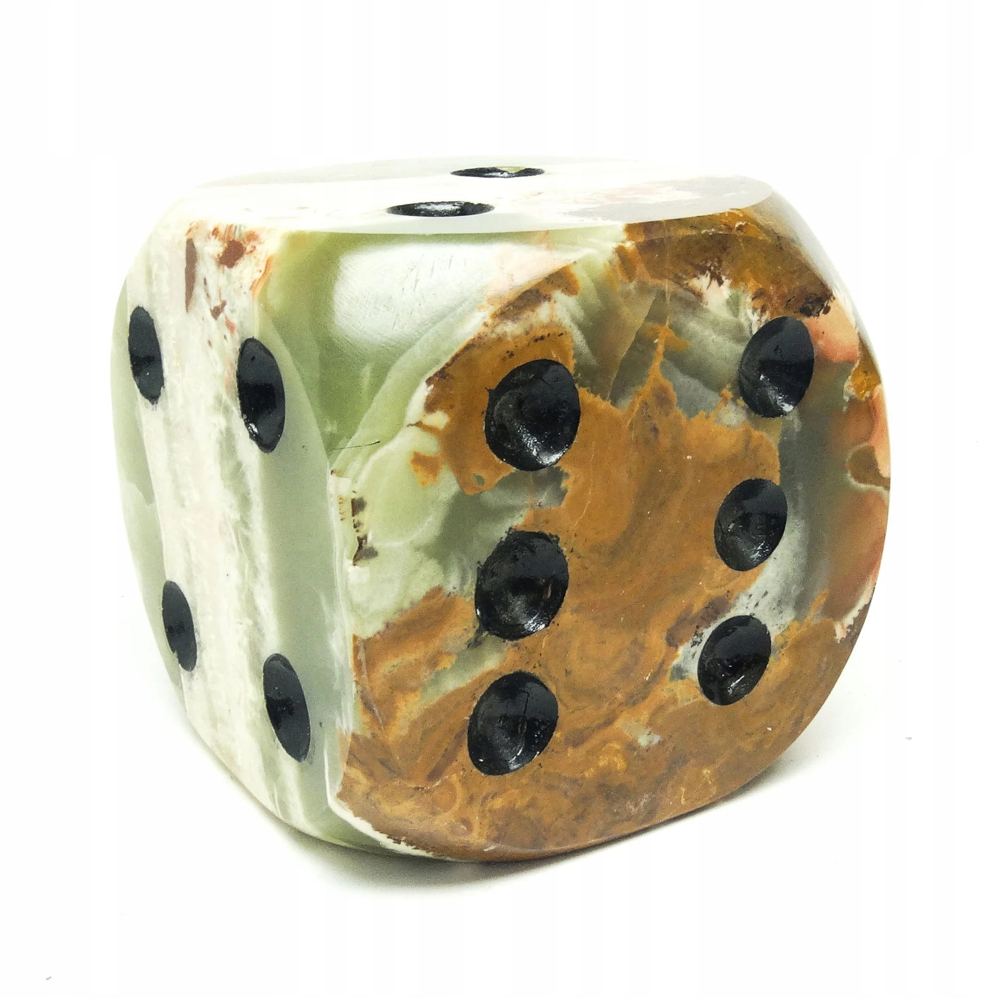 Przycisk do papieru wyprodukowany został w Niemczech około 1930. Powierzchnia jest wykonana z marmuru i ma kształt pokaźnych rozmiarów kości do gry. Zachowany jest w dobrym stanie. Jest ciężki. Wykonany w stylu art deco.
