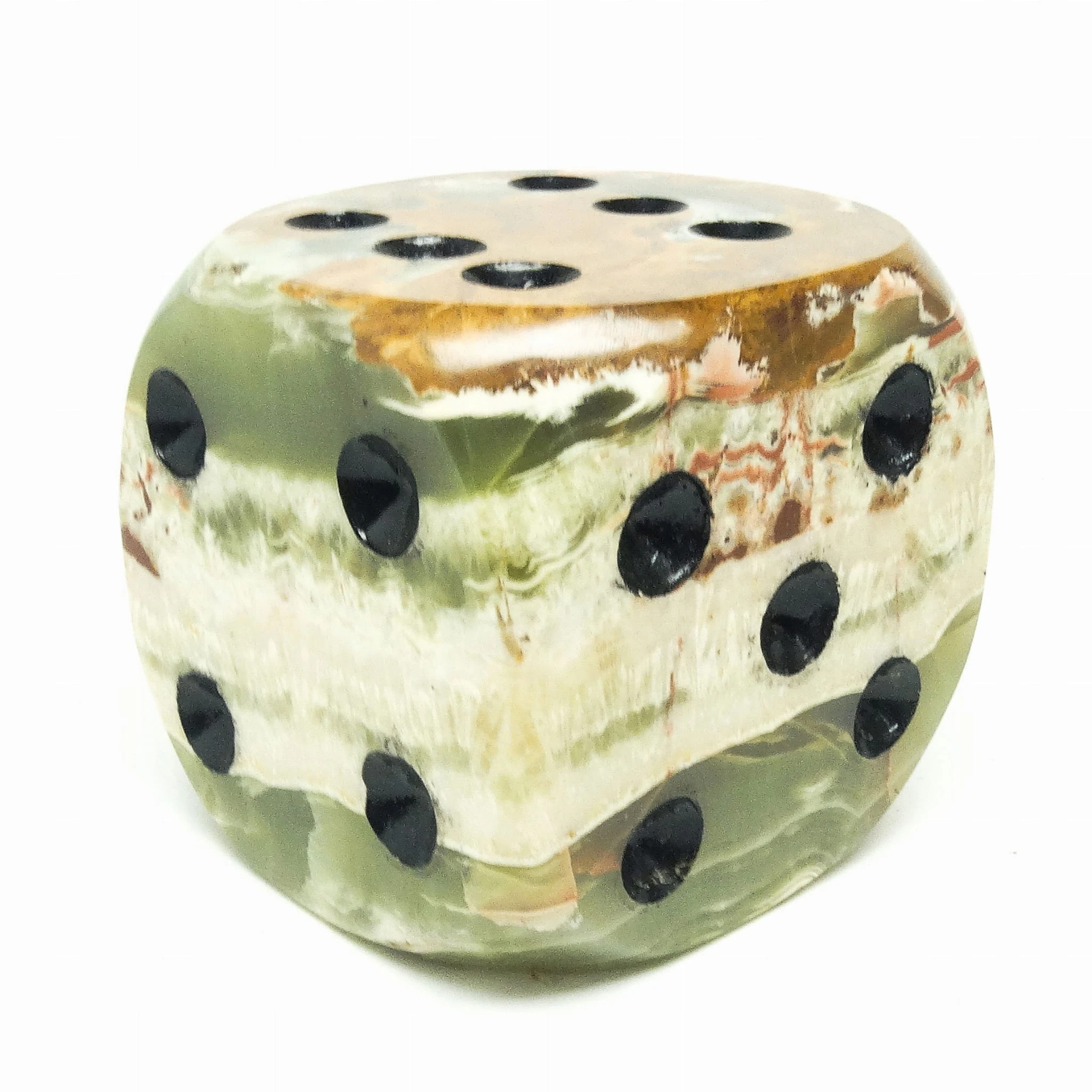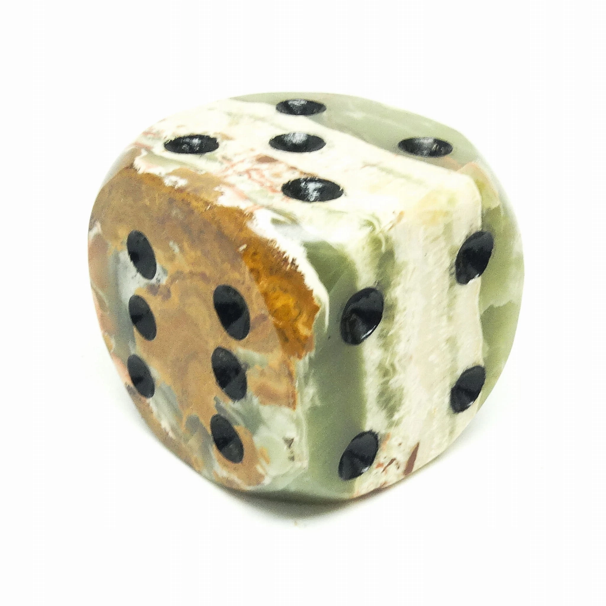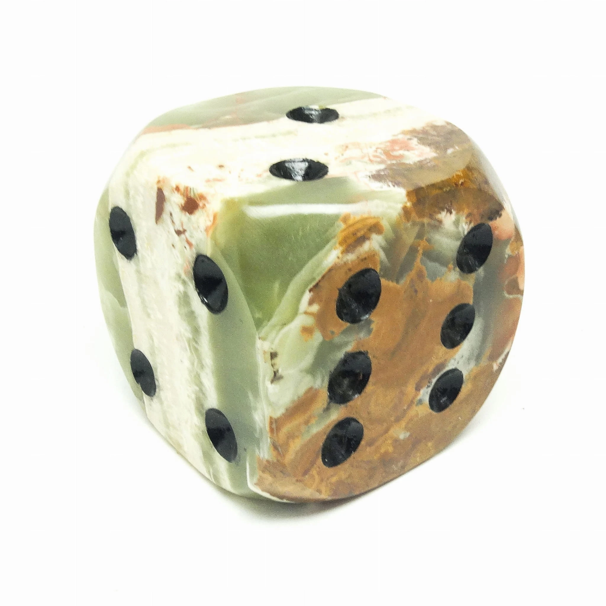Przycisk do papieru wyprodukowany został w Niemczech około 1930. Powierzchnia jest wykonana z marmuru i ma kształt pokaźnych rozmiarów kości do gry. Zachowany jest w dobrym stanie. Jest ciężki. Wykonany w stylu art deco.