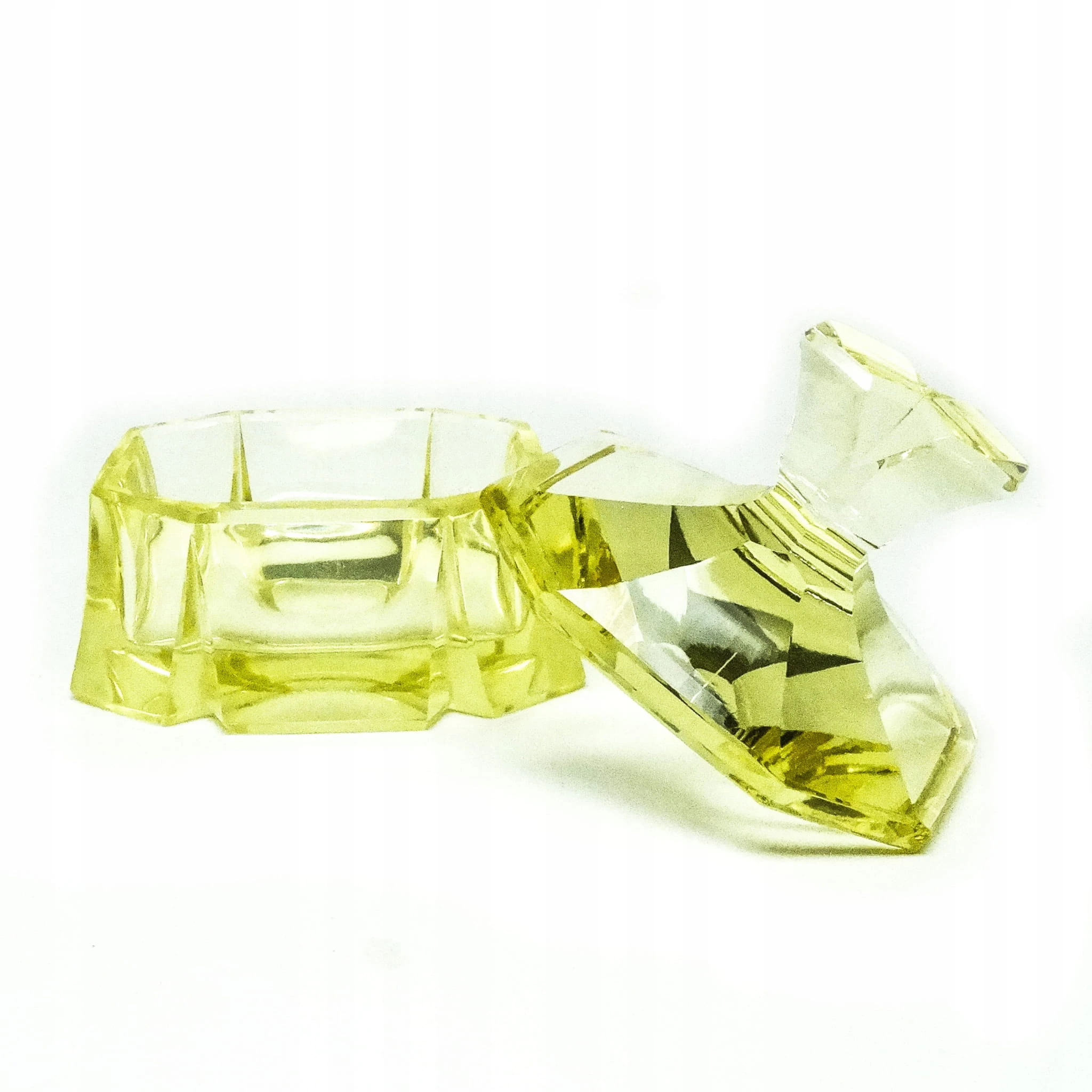 Bomboniera wyprodukowana została w Czechosłowacji w mieście Karlove Vary w latach 30. przez wytwórnie Moser. Wykonana jest z fasetowanego szkła. Zachowana jest w dobrym stanie. Przedmiot jest sygnowany.