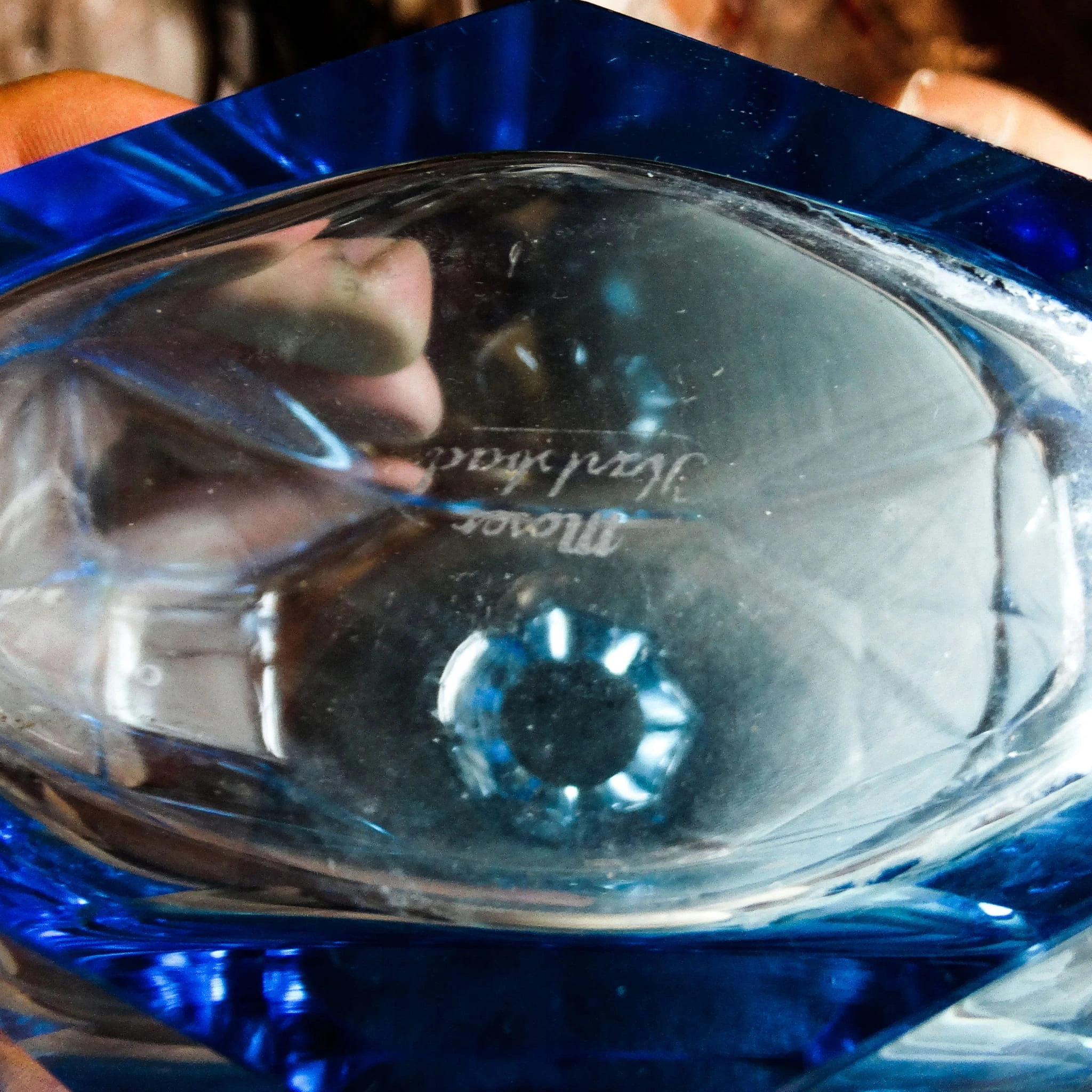 Karafka wyprodukowana została w Czechosłowacji w mieście Karlove Vary w latach 30. przez wytwórnie Moser. Karafka jest bardzo dobrze zachowana. Przedmiot jest sygnowany. Wykonana z szkła fasetowanego.