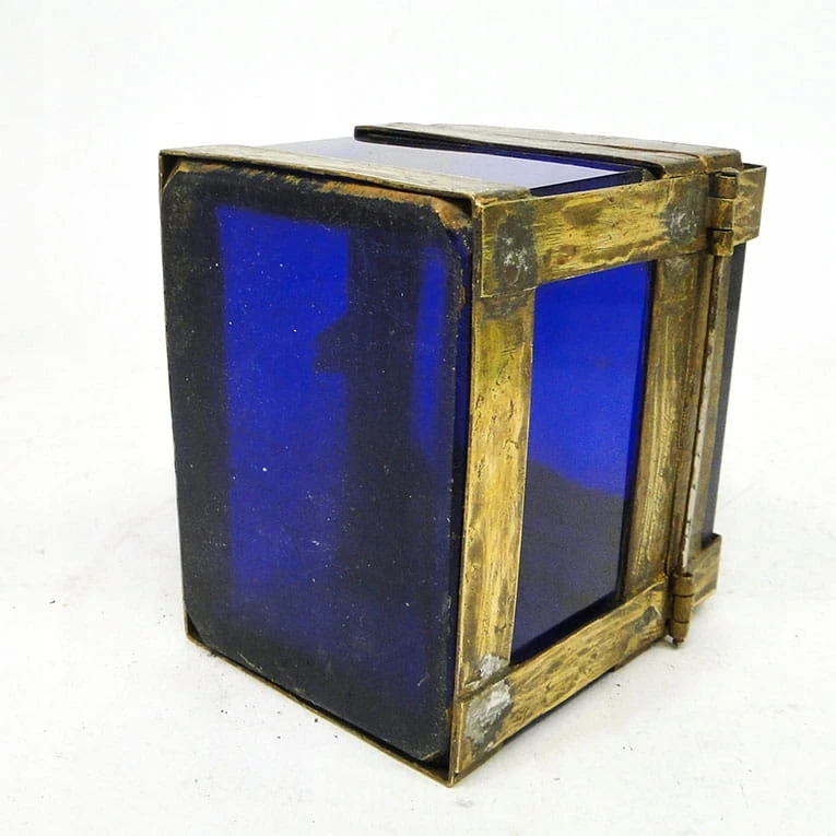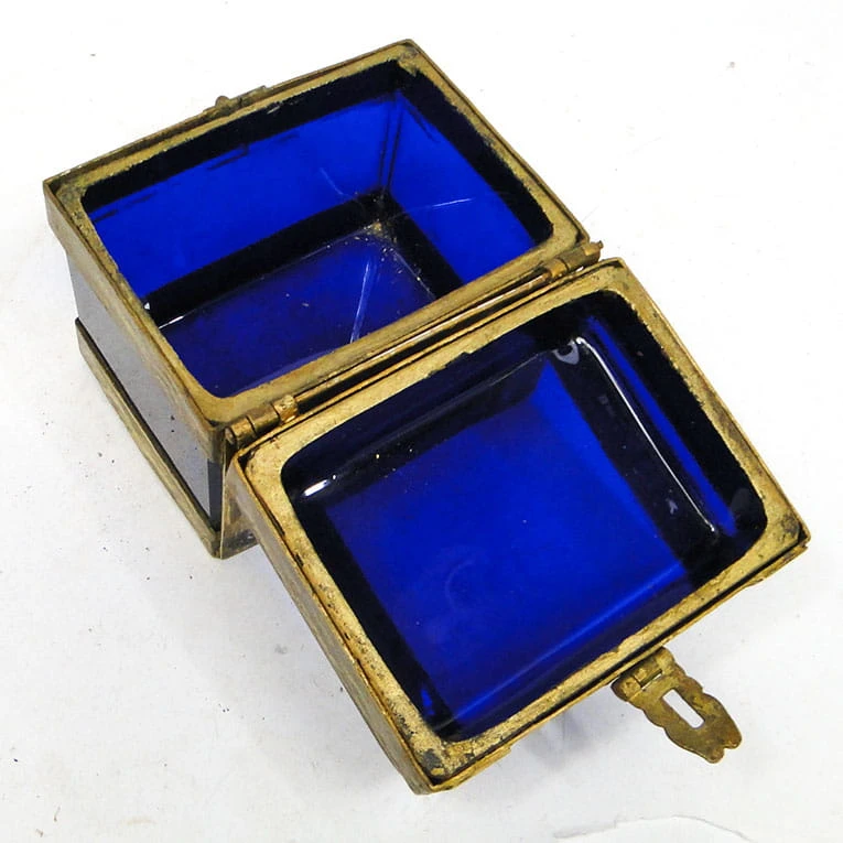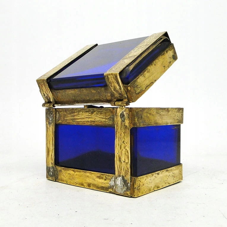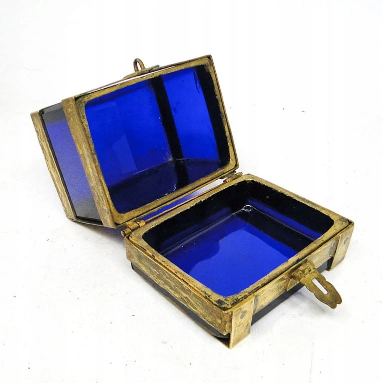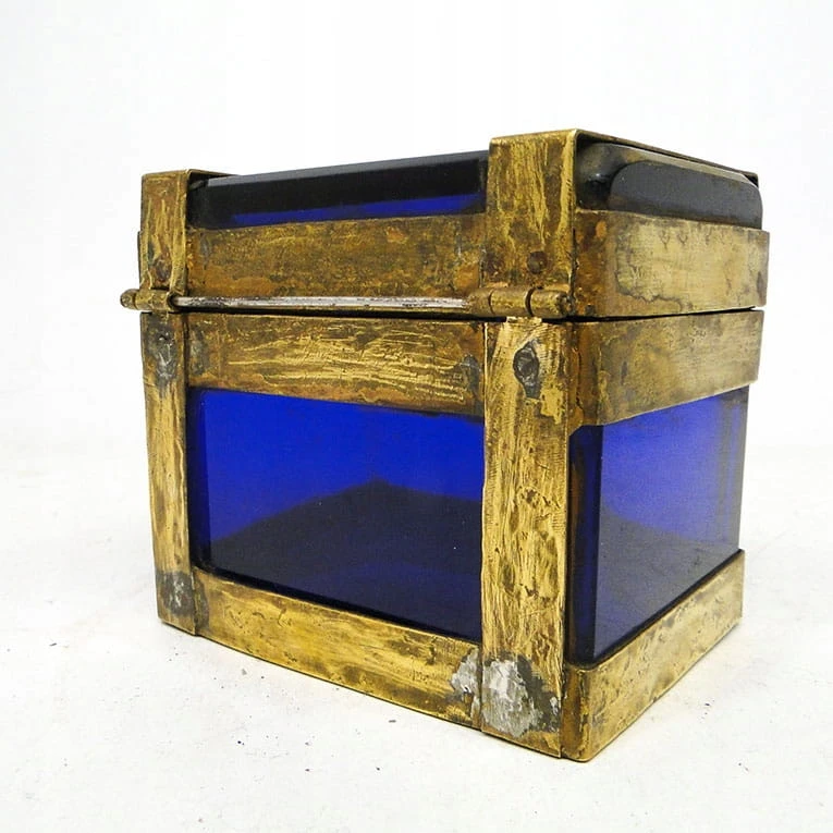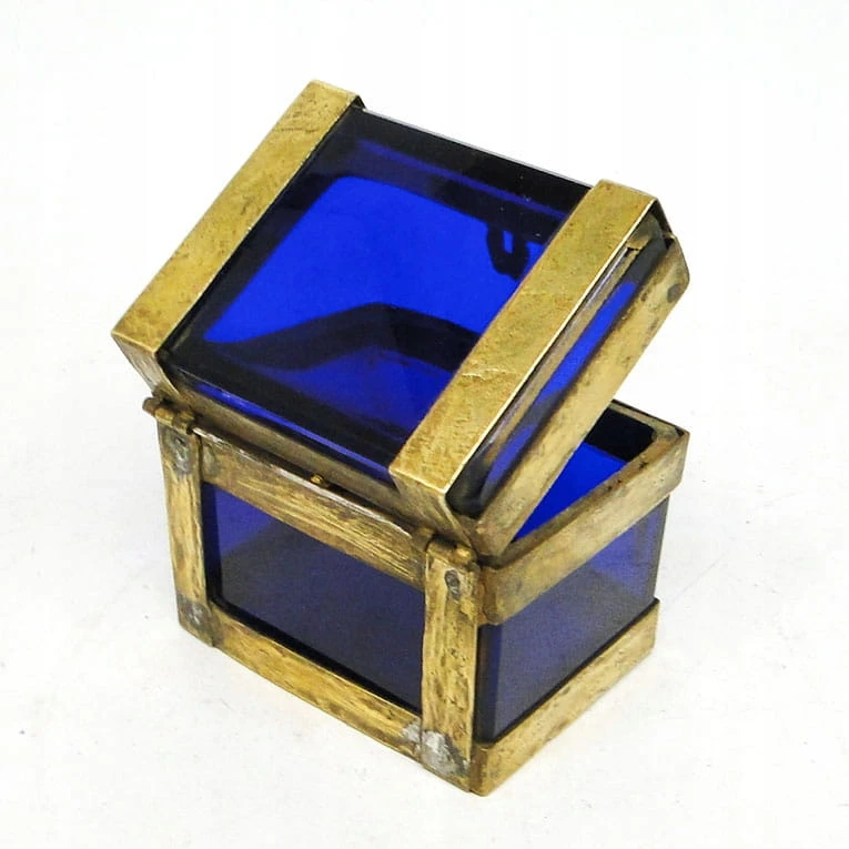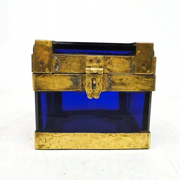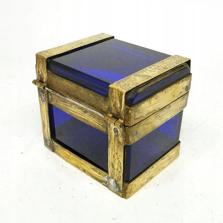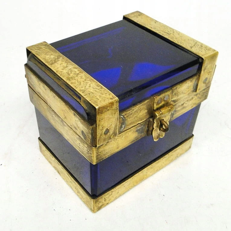 J5I Moser kobaltowa szkatuła w mosiężnym okuciu