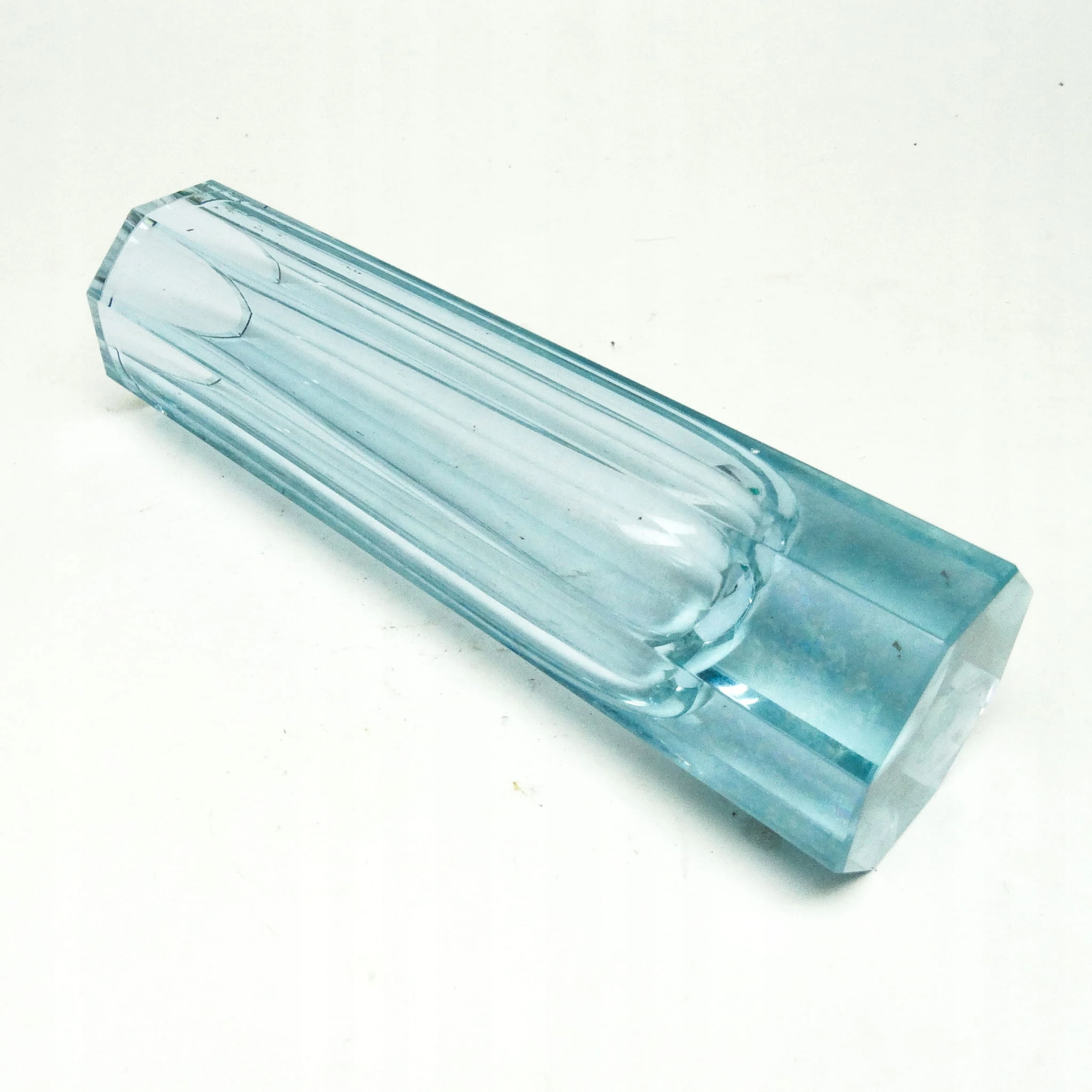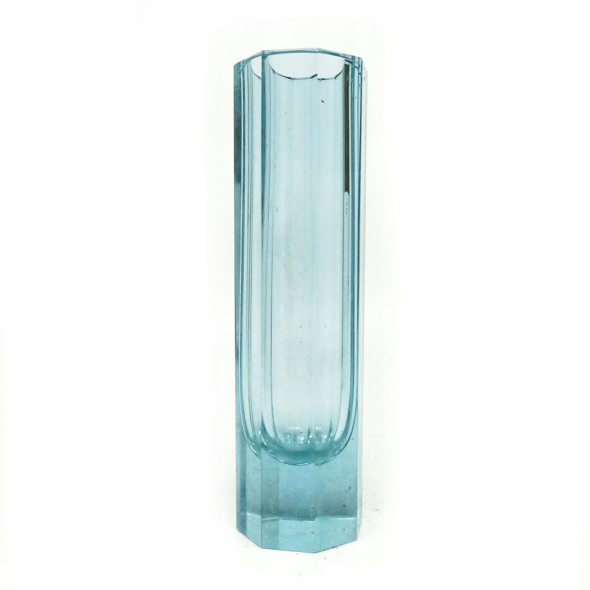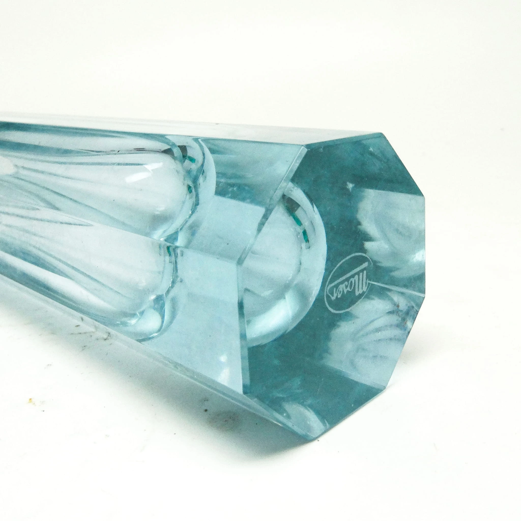 Wazon wyprodukowany został w Czechosłowacji w mieście Karlove Vary w latach 30. przez wytwórnie Moser. Wykonany jest z fasetowanego szkła. Zachowany jest w bardzo dobrym stanie. Sygnowany. Jest to szkło aleksandrytowe - zmienia kolor pod wpływem promieni UV z fioletowego na seledynowy.