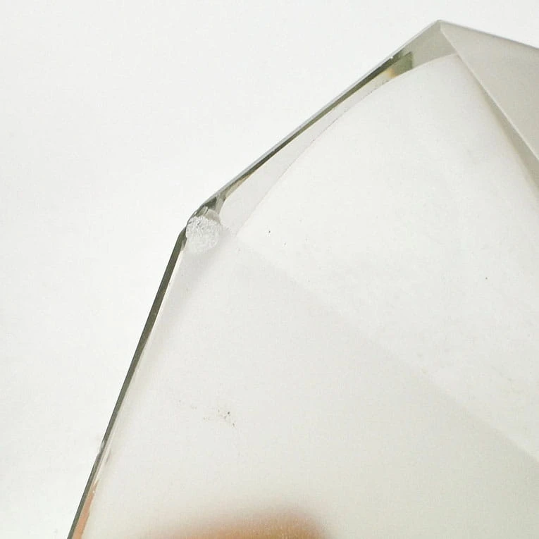 Misa wyprodukowana została w Czechosłowacji w mieście Karlove Vary w latach 30. przez wytwórnie Moser. Przedmiot nosi ślady użytkowania w postaci kilku pojedynczych odprysków pokazanych na zdjęciu. Przedmiot nie jest sygnowany. Wykonany z szkła fasetowanego.