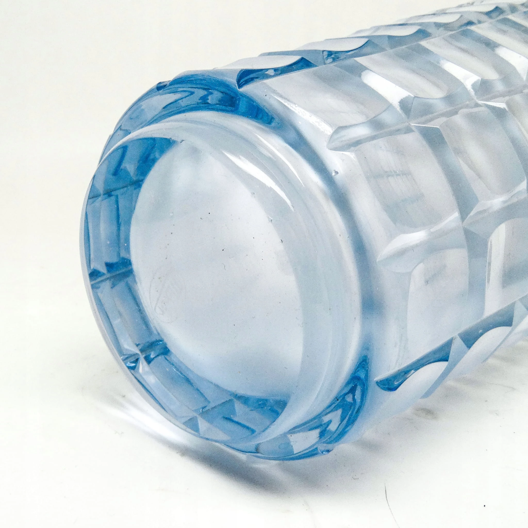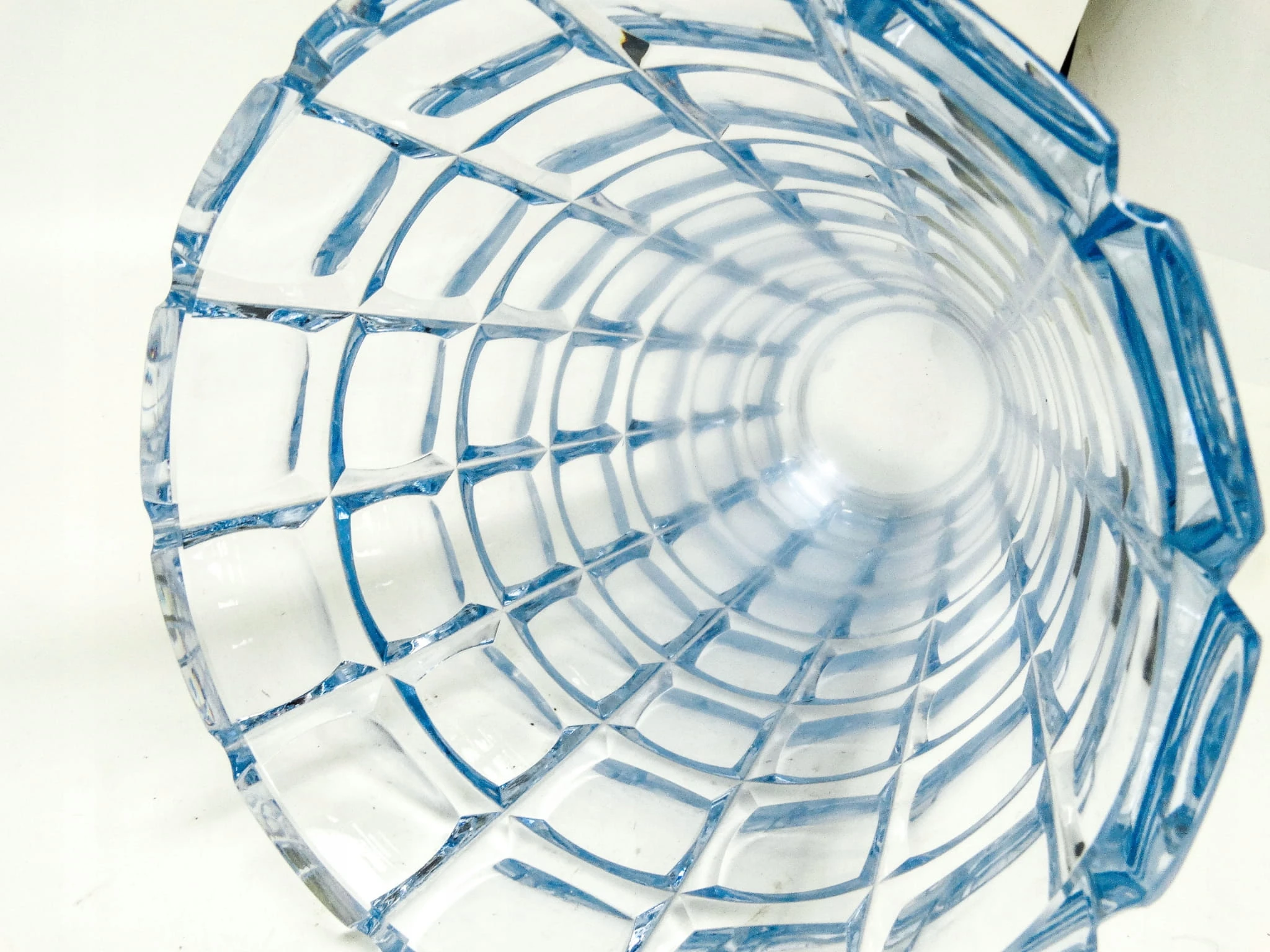 Wazon wyprodukowany został w Czechosłowacji w mieście Karlove Vary w latach 50. przez wytwórnie Moser. Wykonany jest z fasetowanego szkła. Zachowany jest w dobrym stanie - rysy po wewnętrznej stronie. Sygnowany.