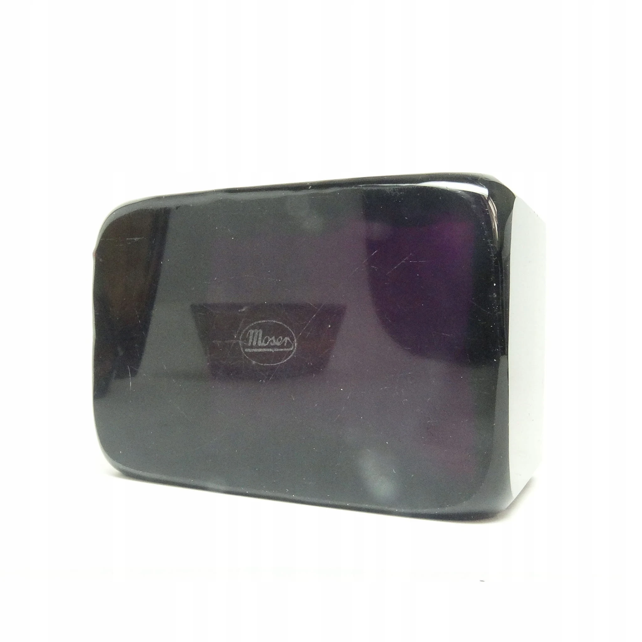 Przybornik wyprodukowany został w Czechosłowacji w mieście Karlove Vary w latach 30. przez wytwórnię Moser. Wykonany jest z fasetowanego szkła. Stan dobry.