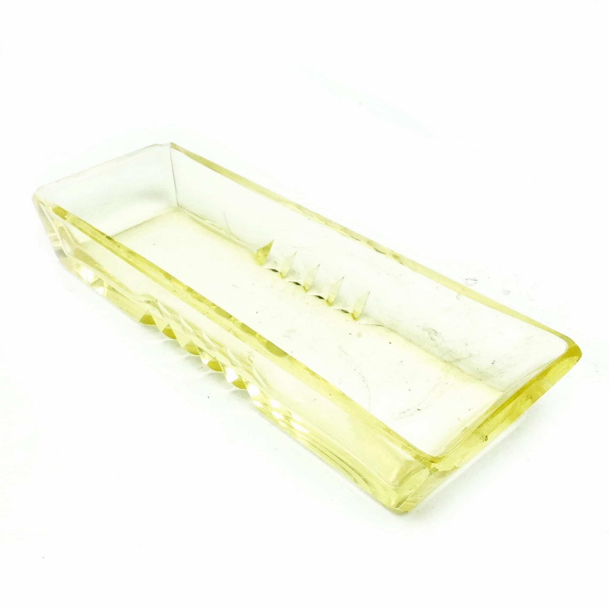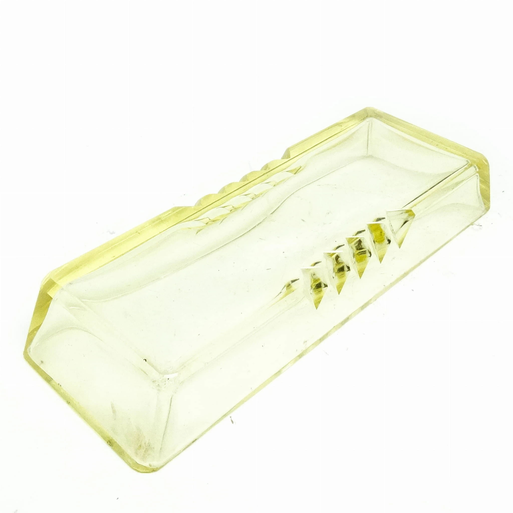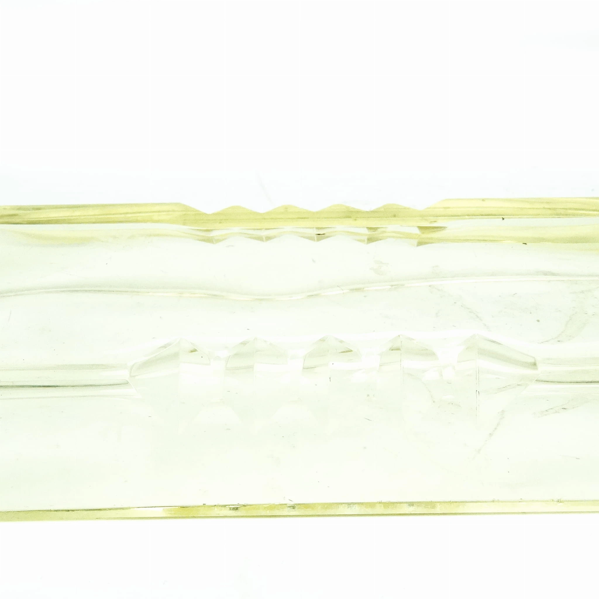 Przybornik wyprodukowany został w Czechosłowacji w mieście Karlove Vary w latach 30. przez wytwórnie Moser. Wykonany jest z fasetowanego szkła. Stan dobry. Niesygnowany.