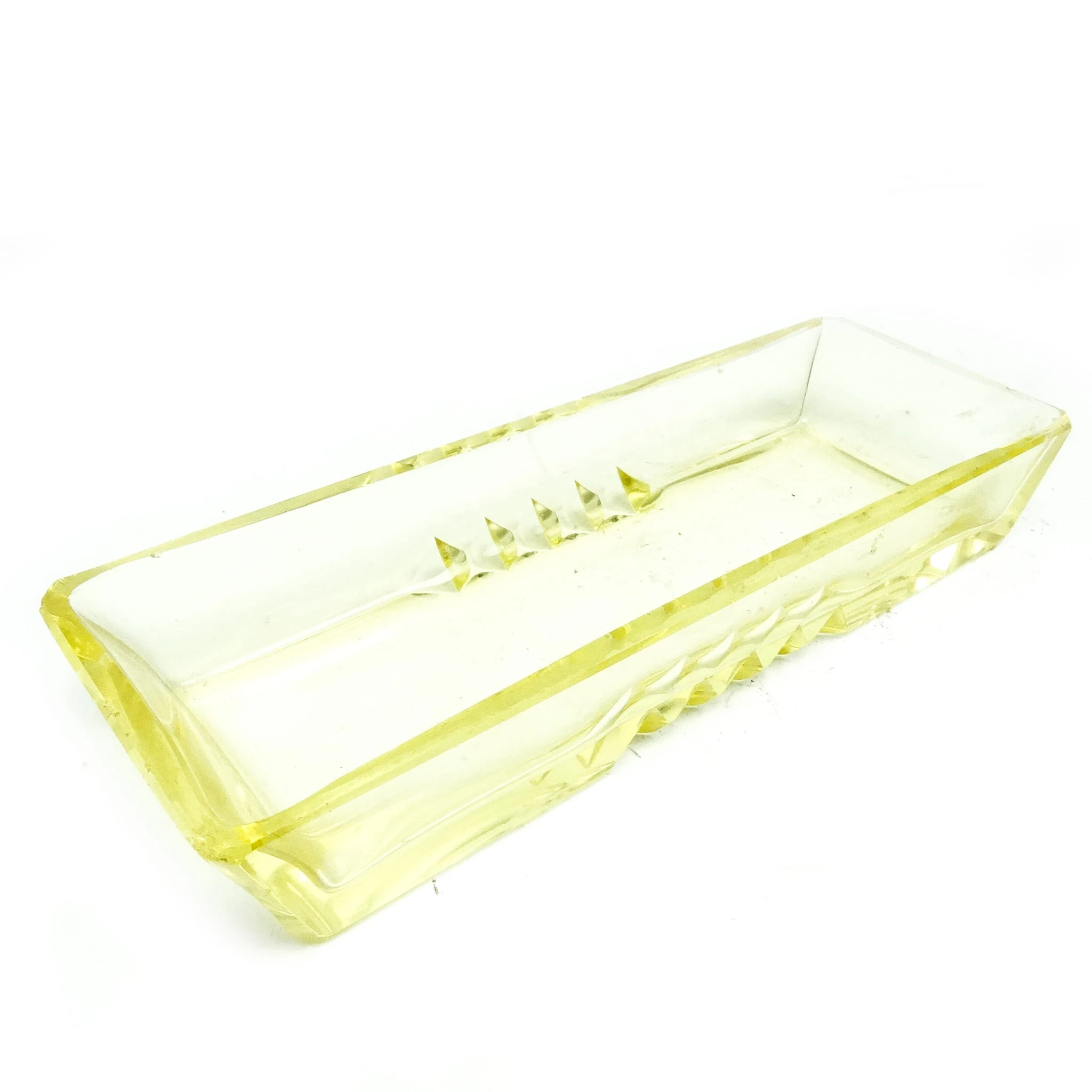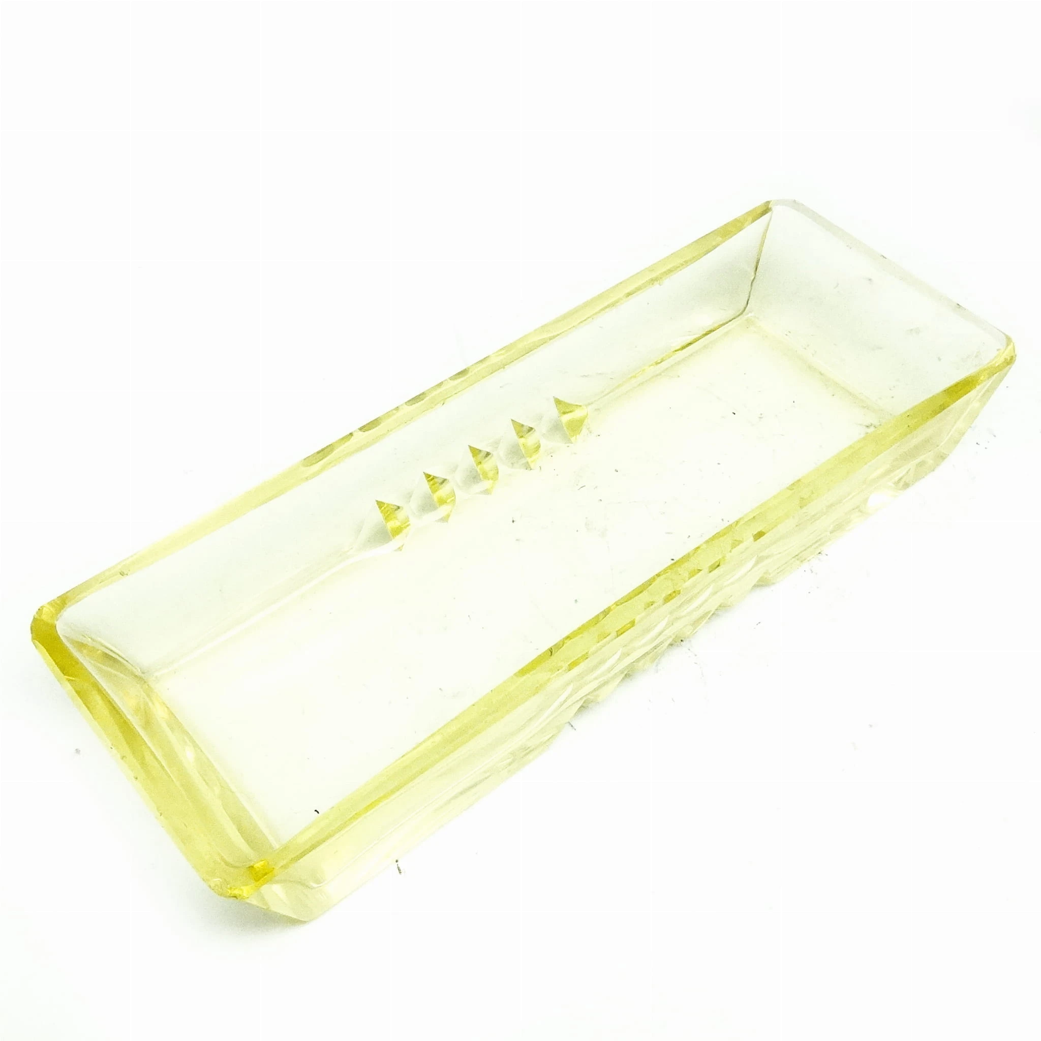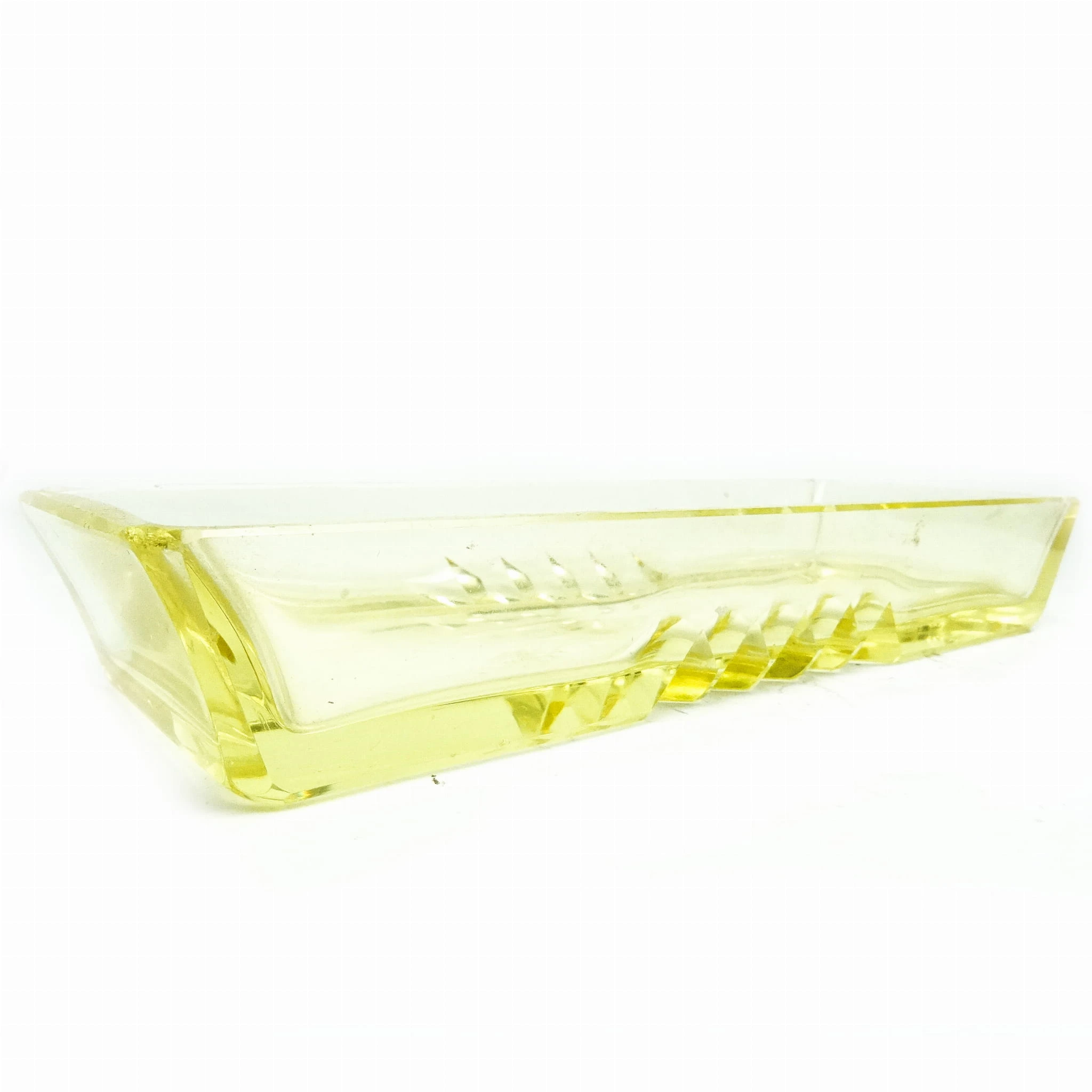 Przybornik wyprodukowany został w Czechosłowacji w mieście Karlove Vary w latach 30. przez wytwórnie Moser. Wykonany jest z fasetowanego szkła. Stan dobry. Niesygnowany.