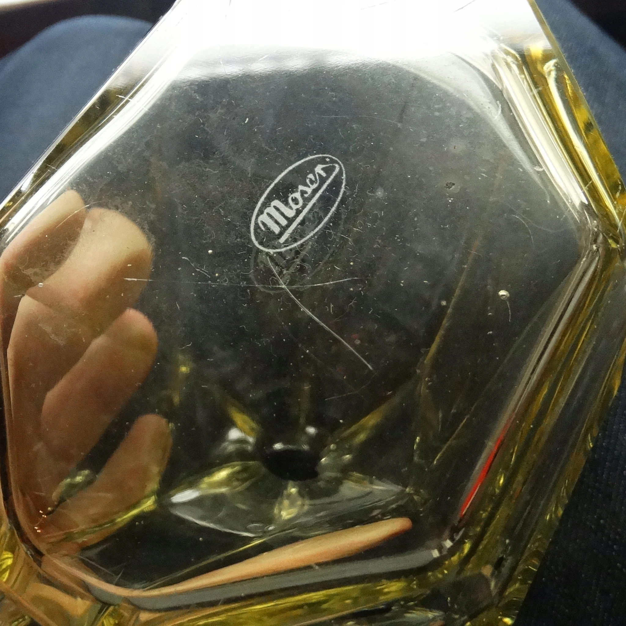 Karafka wyprodukowana została w Czechosłowacji w mieście Karlove Vary w latach 30. przez wytwórnię Moser. Karafka jest bardzo dobrze zachowana. Przedmiot jest sygnowany. Wykonana z szkła fasetowanego.