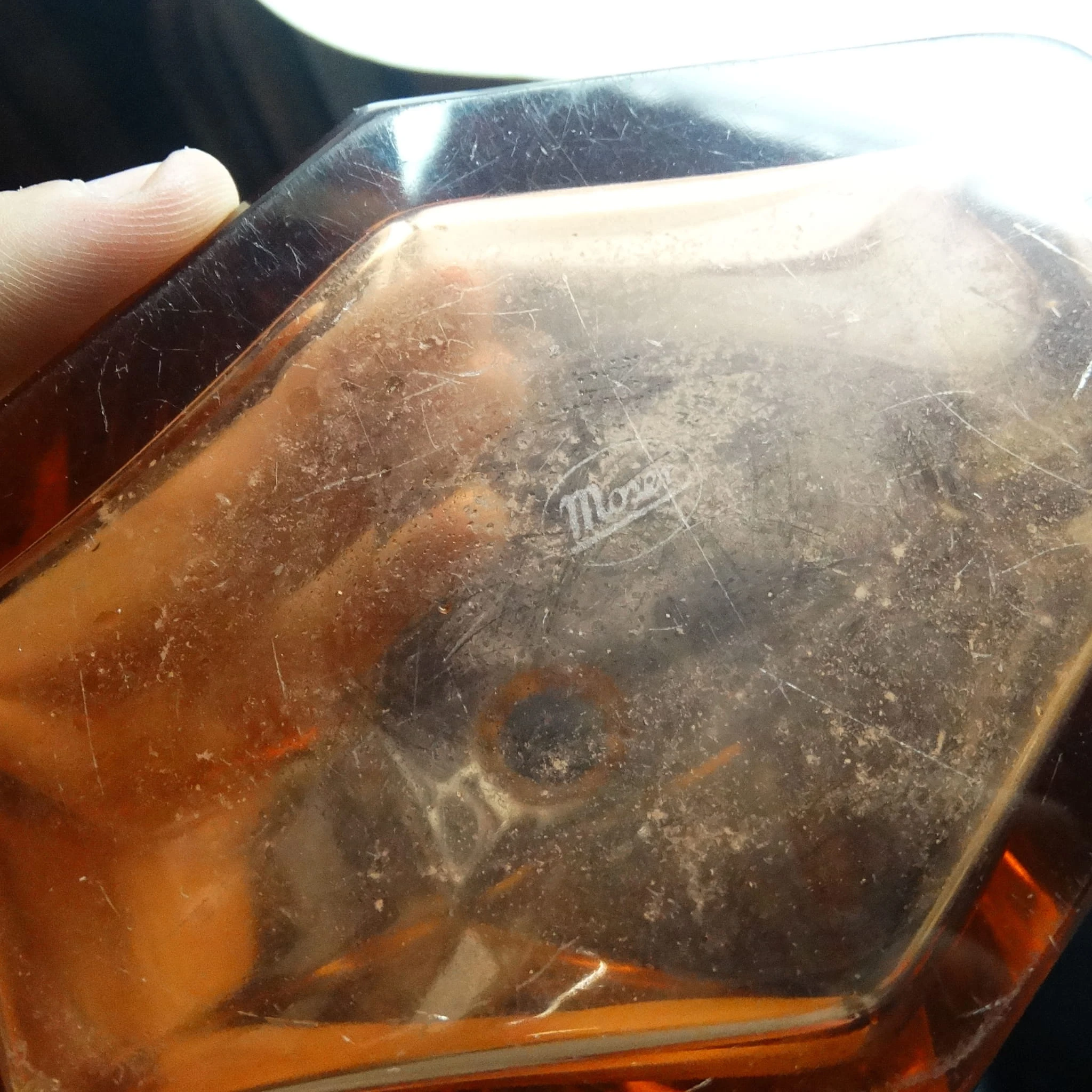 Karafka wyprodukowana została w Czechosłowacji w mieście Karlove Vary w latach 30. przez wytwórnię Moser. Karafka jest bardzo dobrze zachowana. Przedmiot jest sygnowany. Wykonana z szkła fasetowanego.