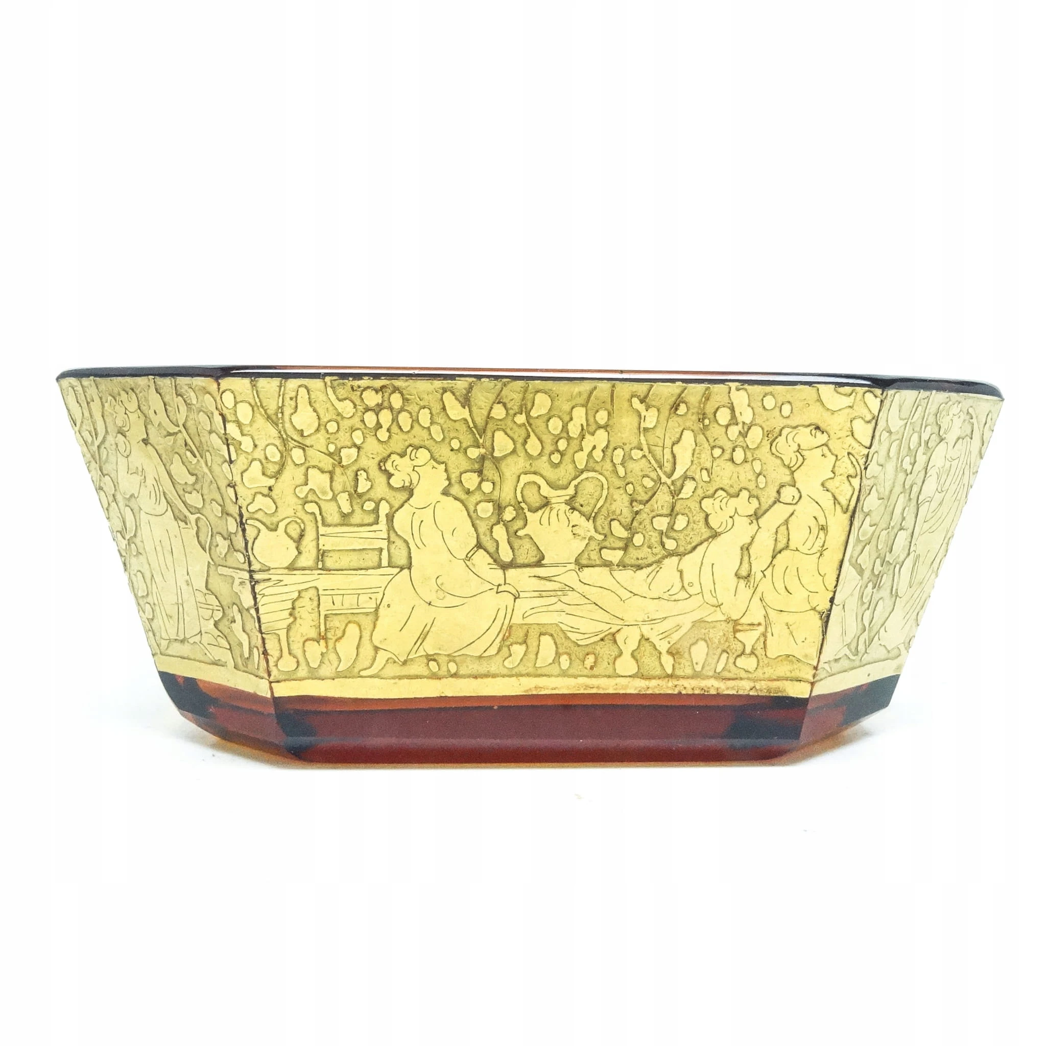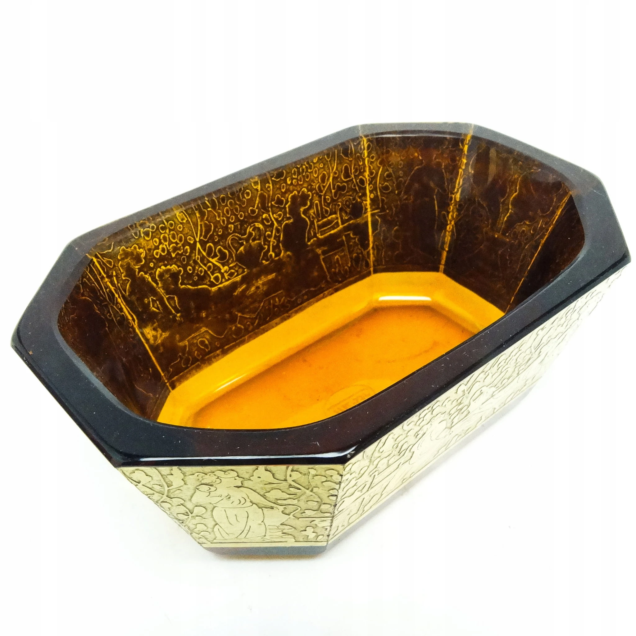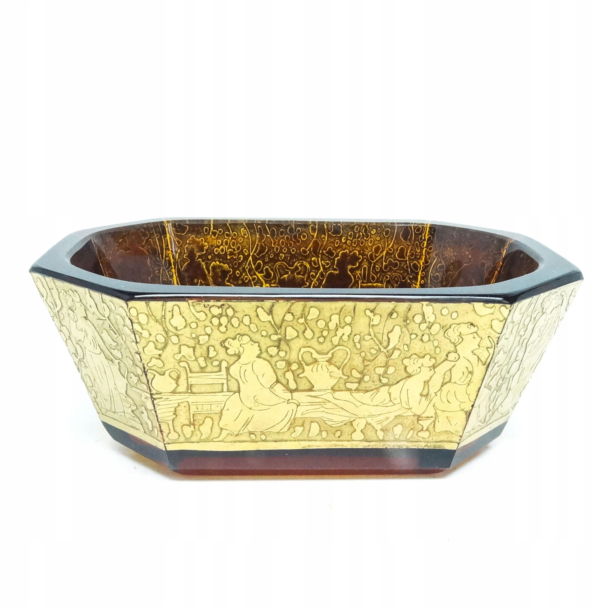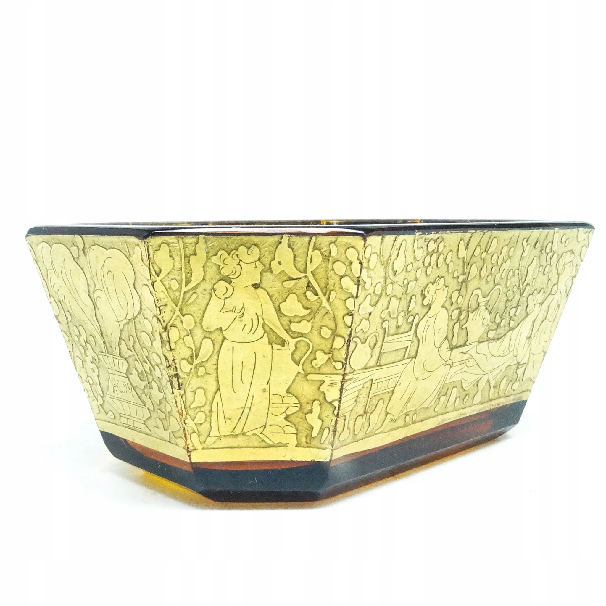 Żardiniera z oroplastyką wyprodukowana została w Czechosłowacji w mieście Karlove Vary w latach 30. przez wytwórnię Moser. Wykonana jest z fasetowanego szkła. Zachowana jest w bardzo dobrym stanie. Przedmiot jest sygnowany.