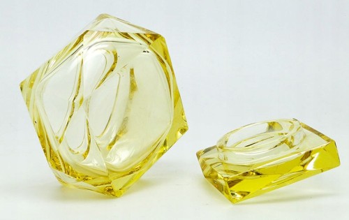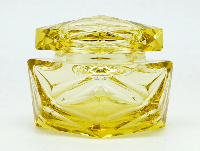 Moser zółta cukiernica/bomboniera ART DECO