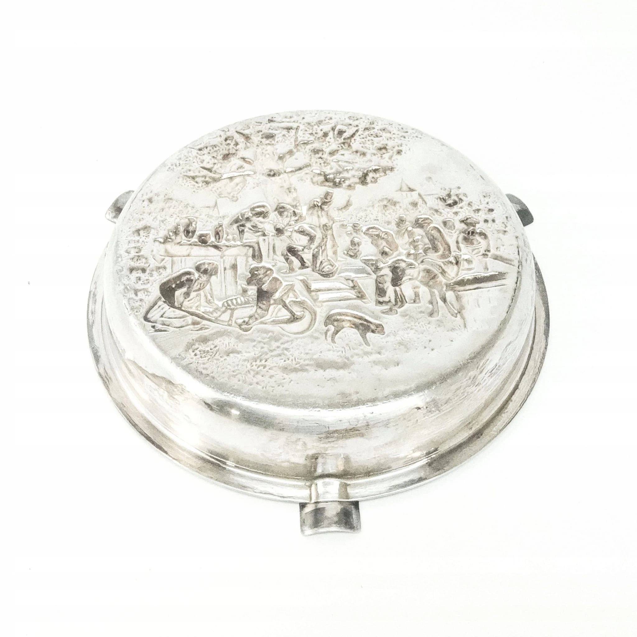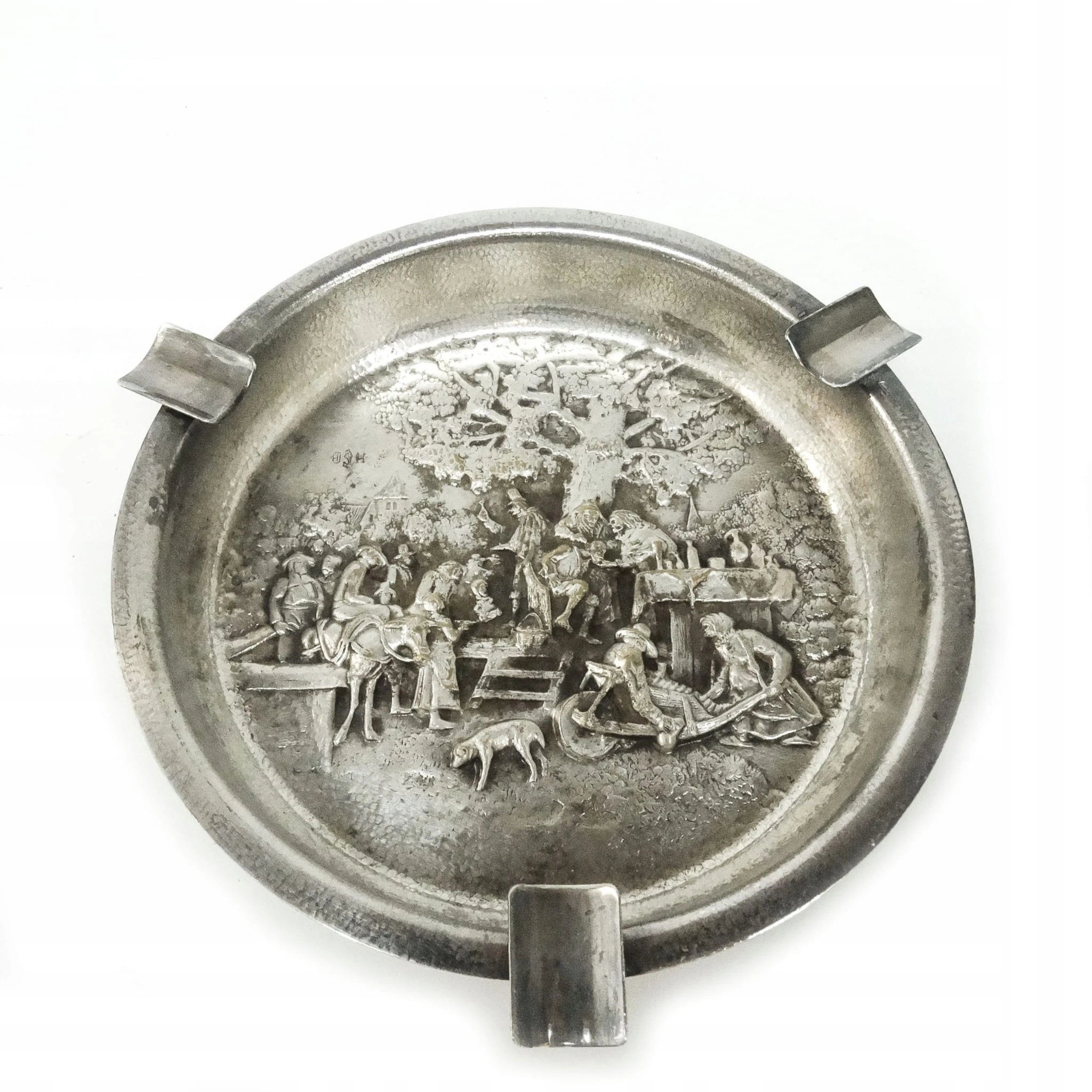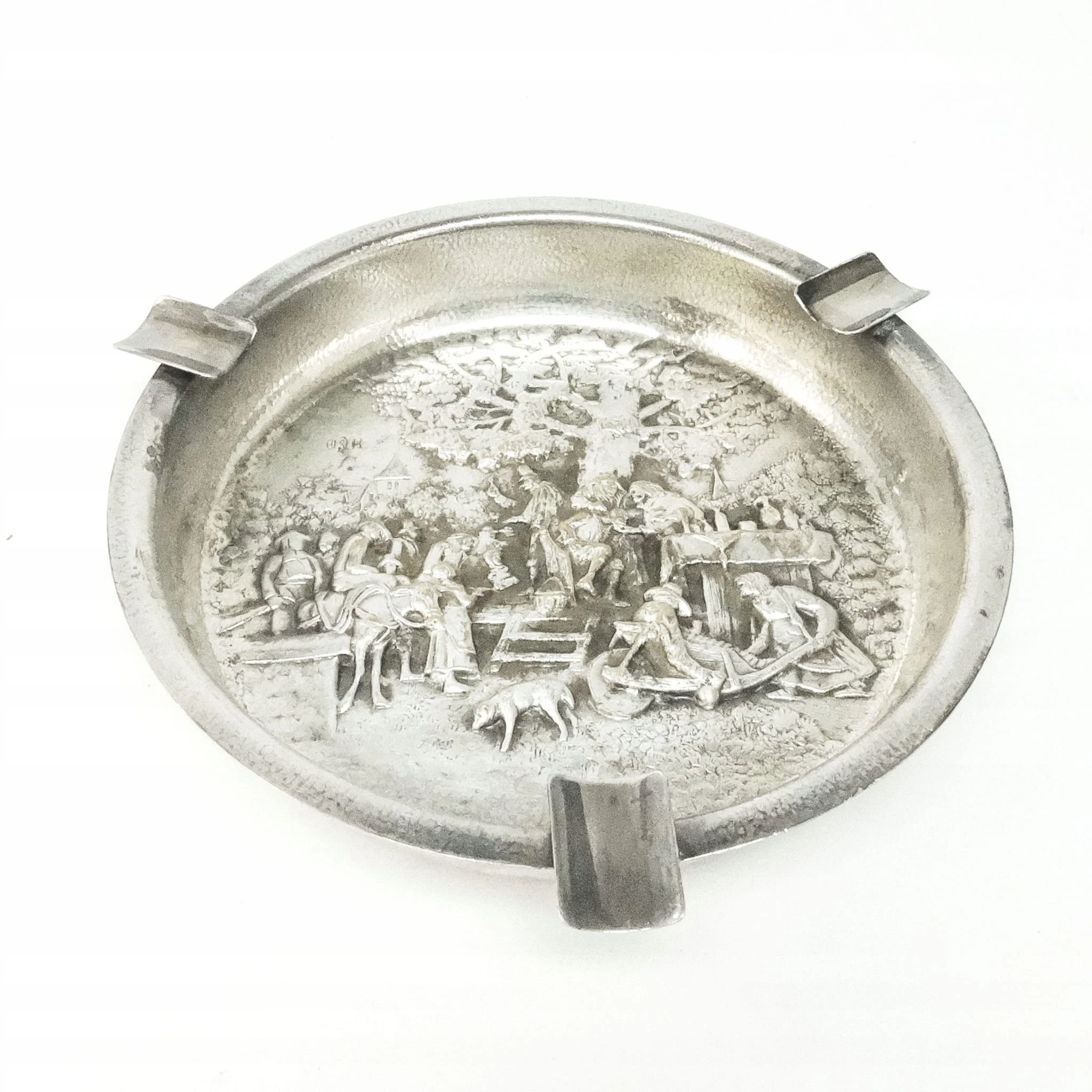 Popielnica wyprodukowana została w Belgii w latach 60. Zdobi ją motyw sceny biesiadnej inspirowany malarstwem niderlandzkim. Zachowana jest w dobrym stanie.