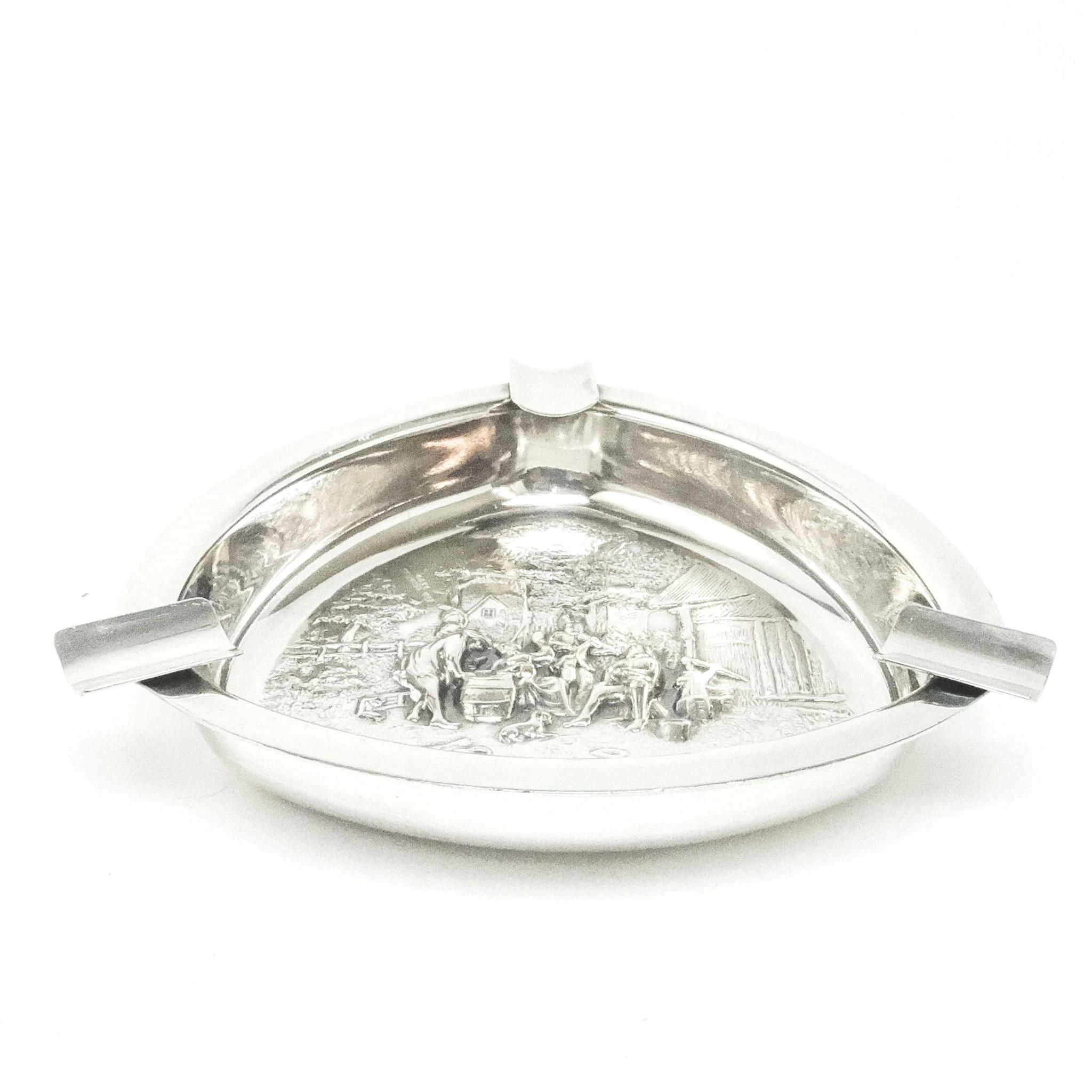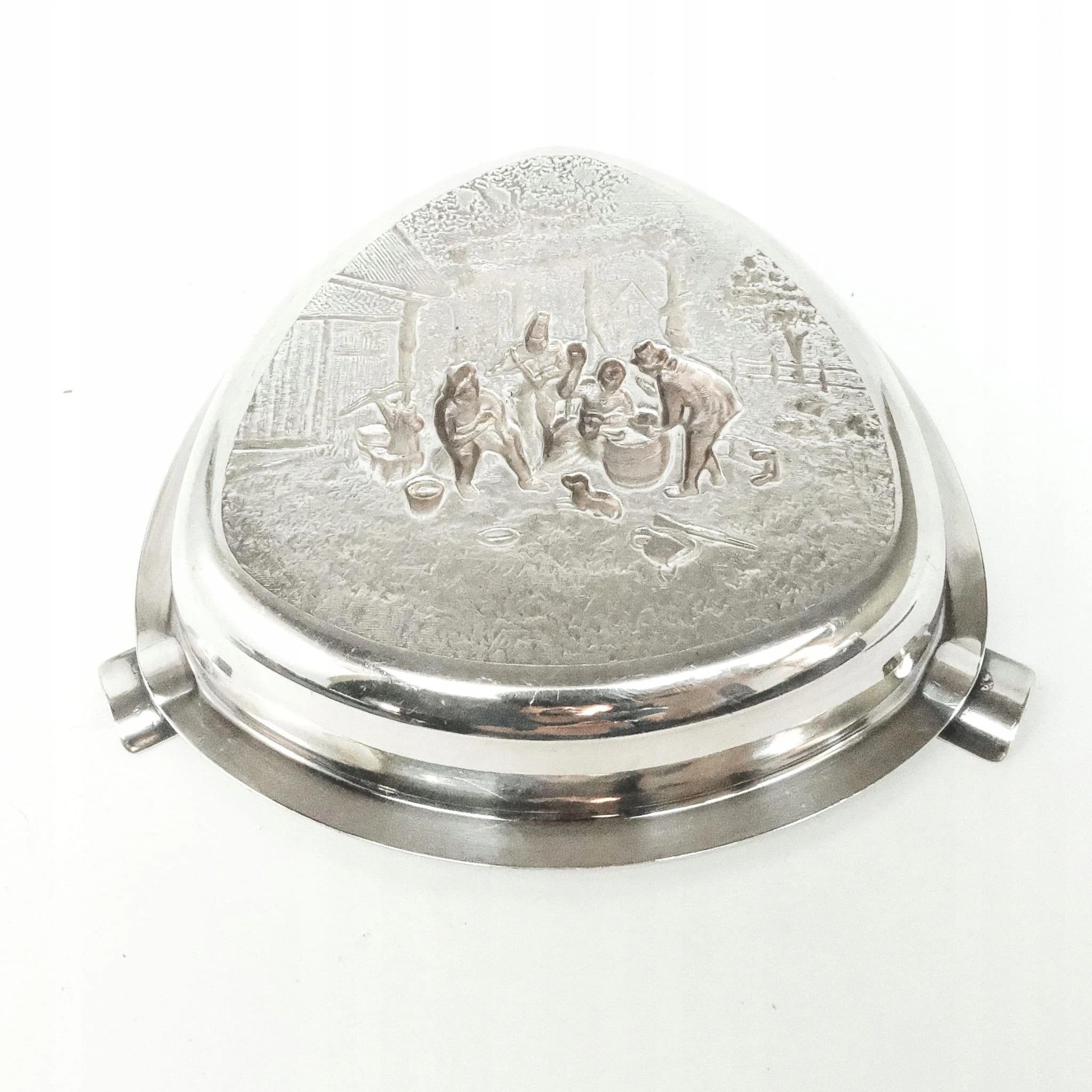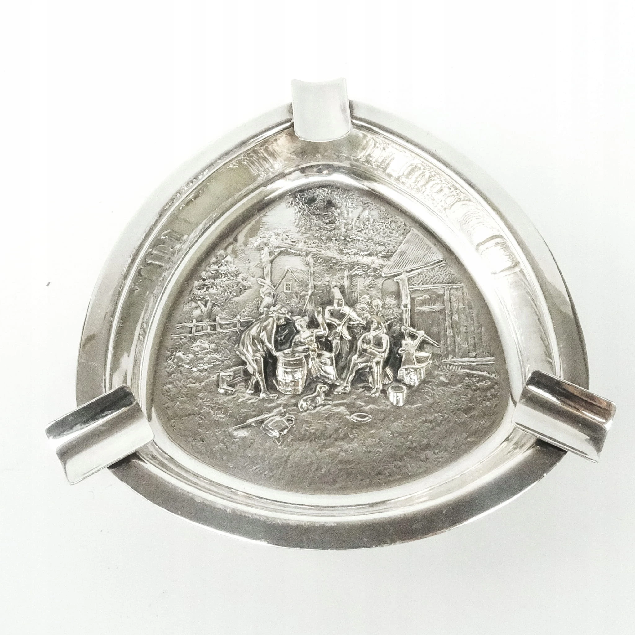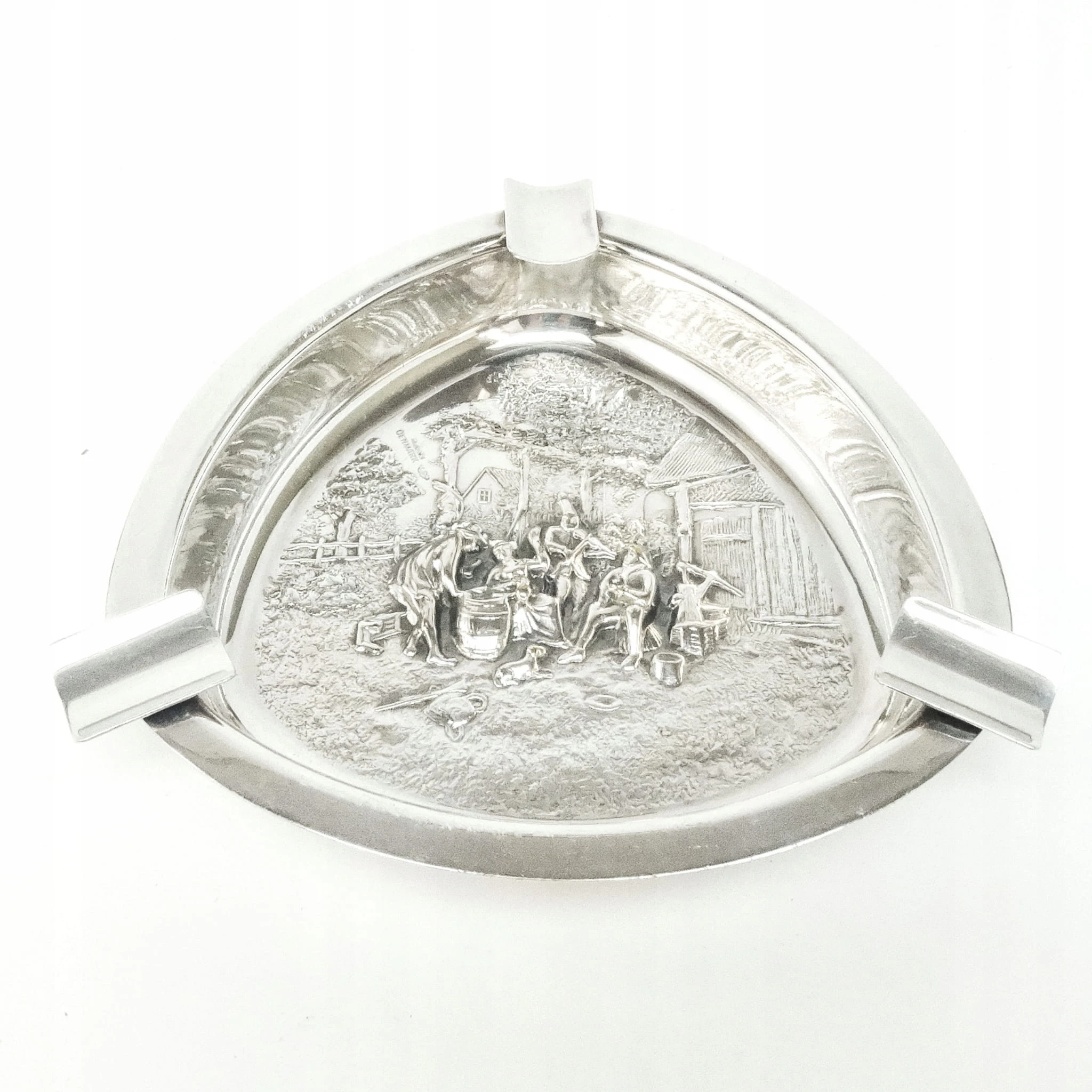 Popielnica wyprodukowana została w Belgii w latach 60. Zdobi ją motyw sceny biesiadnej inspirowany malarstwem niderlandzkim. Zachowana jest w dobrym stanie.