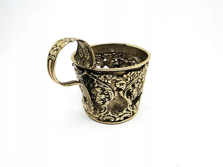 Podstakannik. Pochodzi z okresu 1860-1893 - bardzo zdobny.