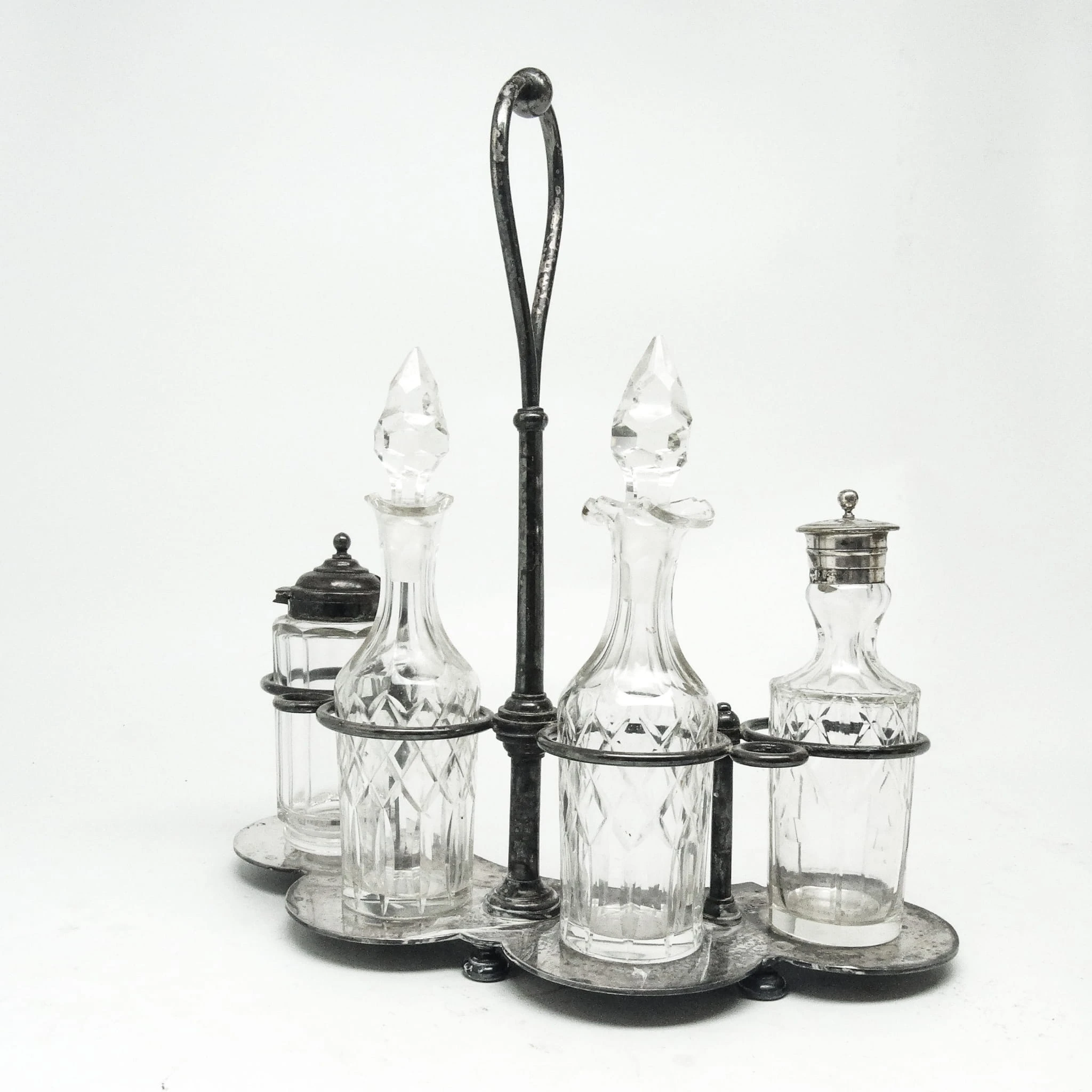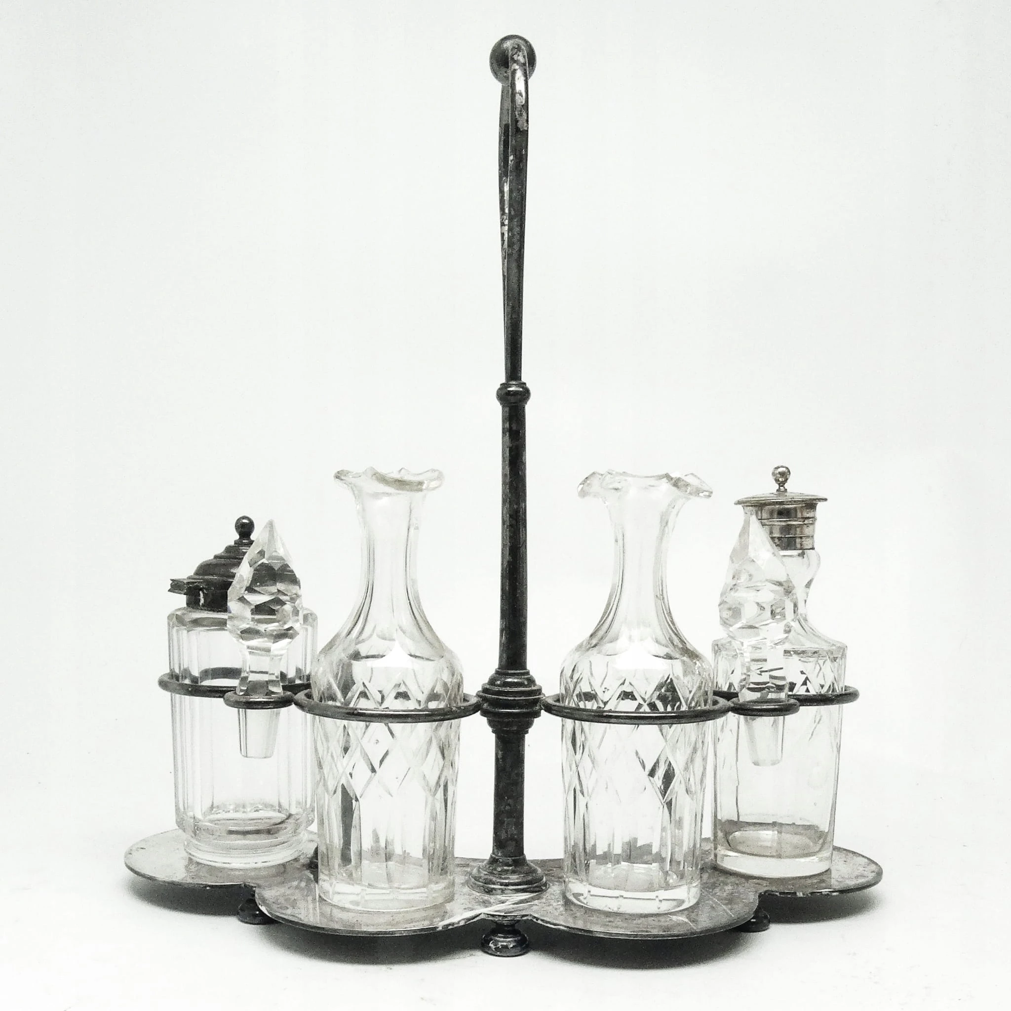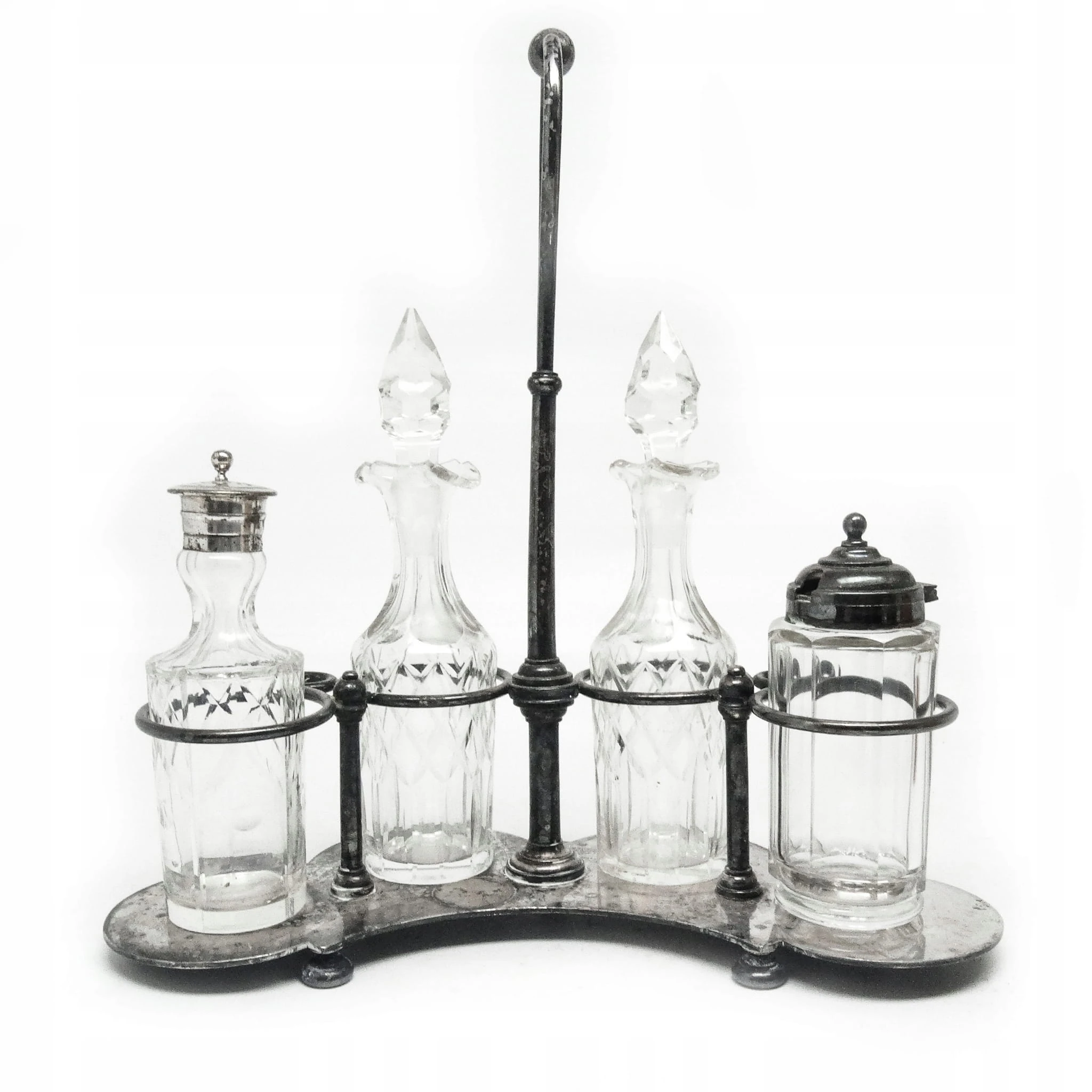 Kabaret na przyprawy wyprodukowany w Warszawie przez manufakturę Norblin w latach 1906-1914. Wykonany został z platerowanego mosiądzu. Stan bardzo dobry. Reprezentuje najlepsze wzornictwo tamtego okresu.