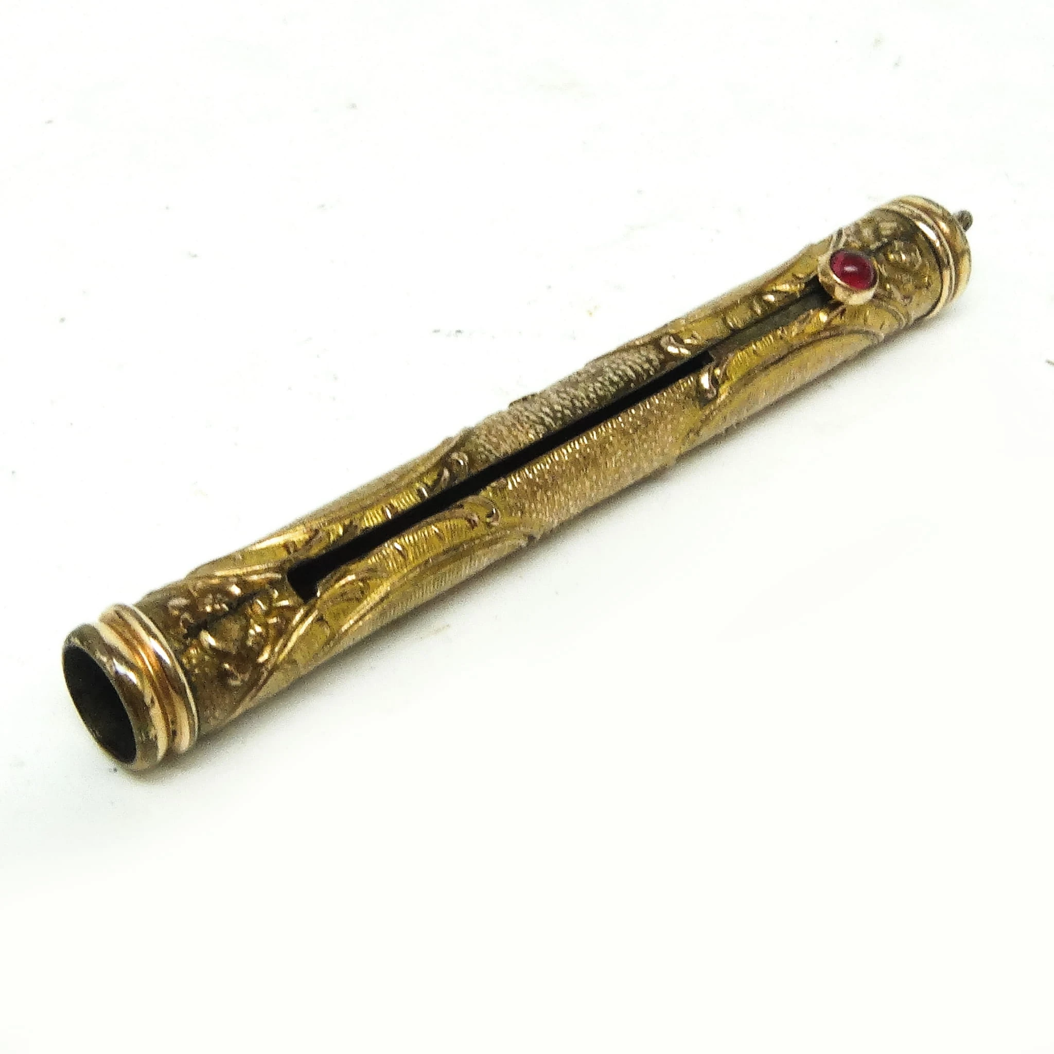 Ołówek do karneciku został wykonany we Francji w stylu roccoco. Pochodzi z lat 1900-1915. Obiekt jest w dobrym stanie.