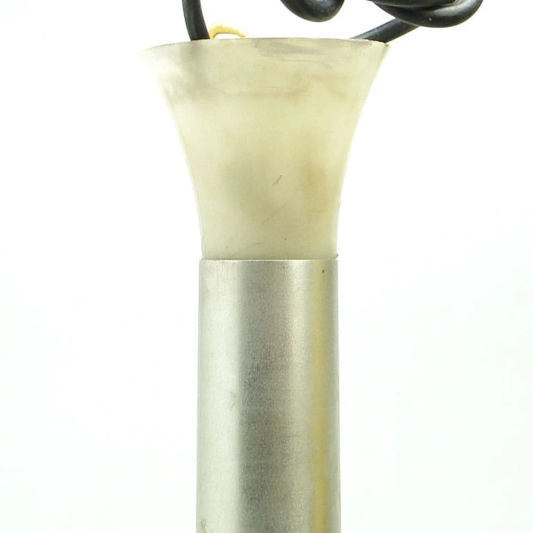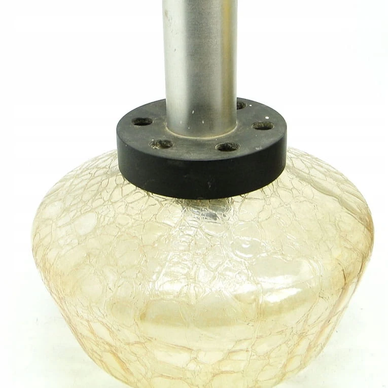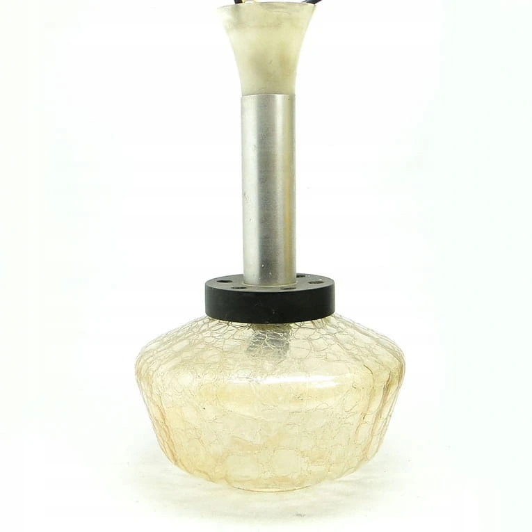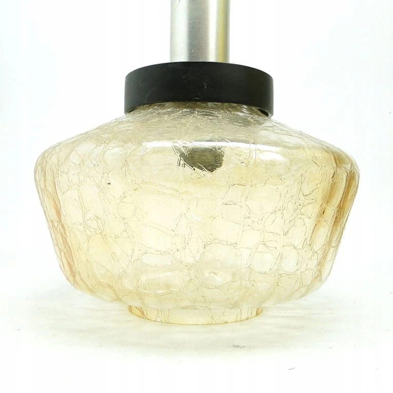 Lampa wisząca pochodzi z Polski z lat 70 i wyprodukowany został przez Polam w Wieliczce. Wykonany z metalu i tworzywa sztucznego. Zachowany jest w bardzo dobrym stanie. Długość lampy jest regulowana. Może wynosić nawet 60 cm.