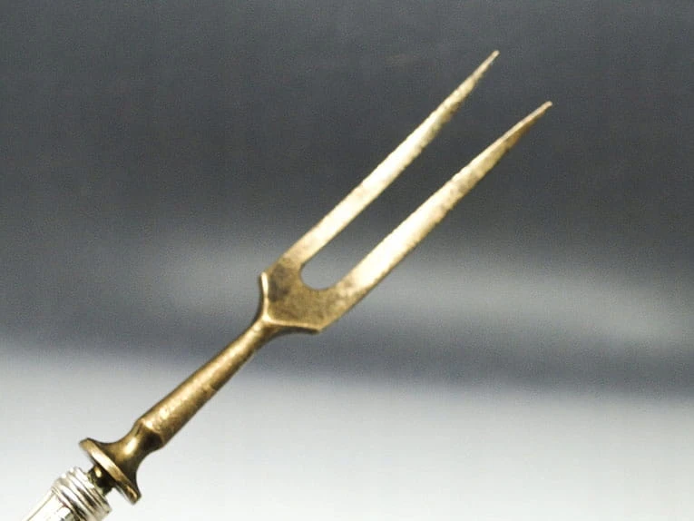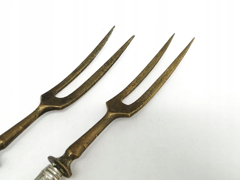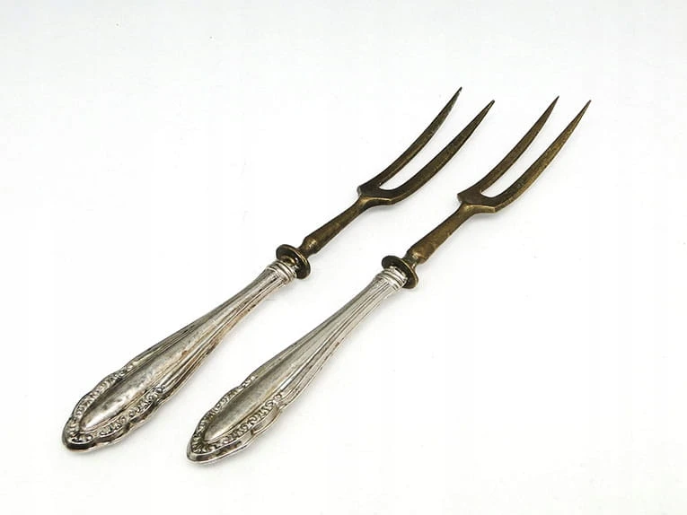 Przedmiotem aukcji jest srebrna para widelców do ciasta wykonany na terenie Europy Zachodniej.