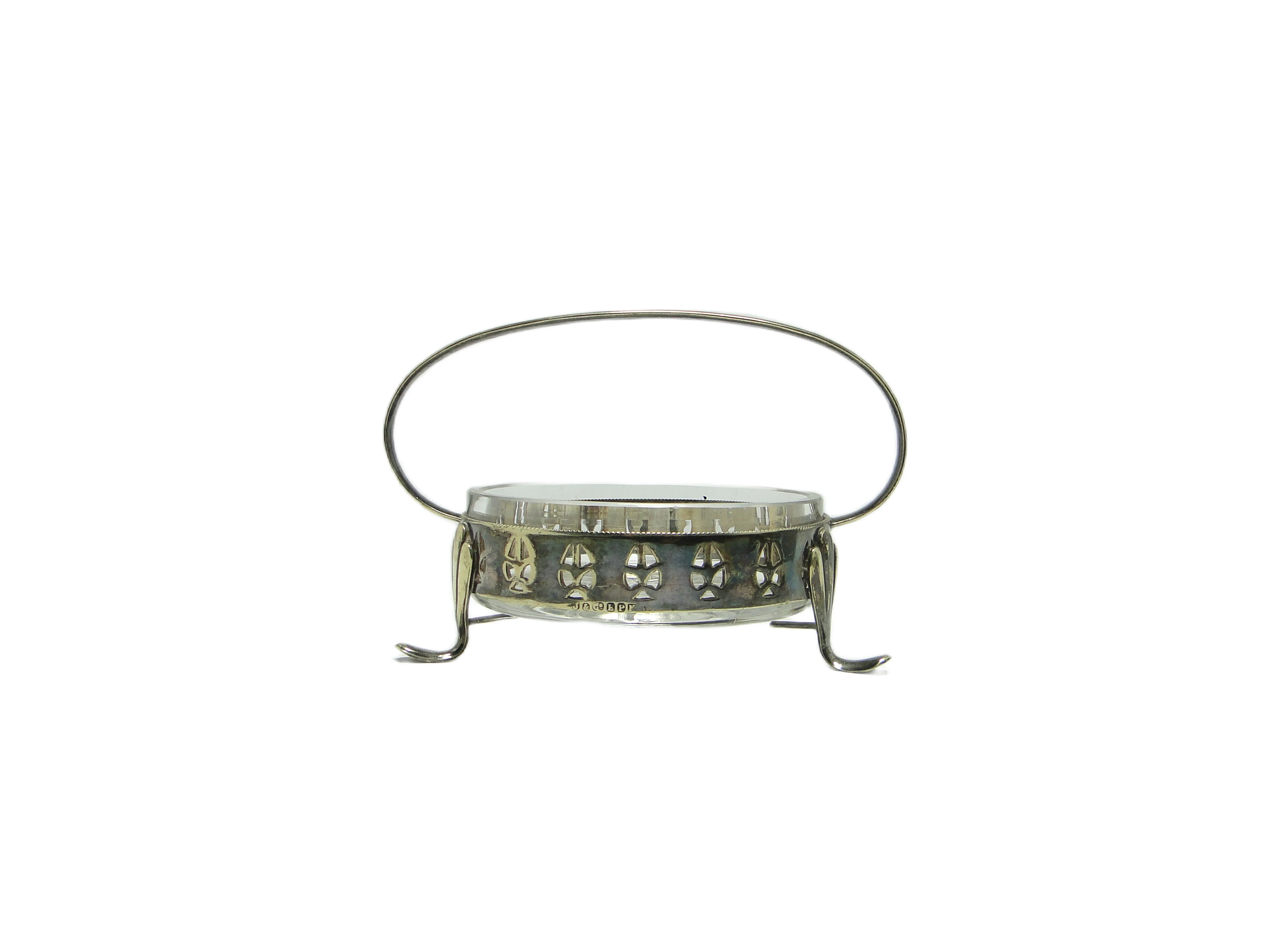 Patera z Wielkiej Brytanii z lat 50. stanowi przykład mid-century modern w dekoracji stołu, gdzie srebrzony mosiądz spotyka się z przezroczystym szkłem. Rama o półmatowym wykończeniu prezentuje powtarzalny rytm łezkowatych wycięć, dzięki którym światło swobodnie przenika przez całą konstrukcję, podkreślając jej lekkość. Trzy wygięte, organiczne nóżki zapewniają stabilność, a prosty, zaokrąglony uchwyt łagodnie unosi się nad misą. Szklany wkład pozostaje gładki i przejrzysty, idealnie dopasowany do metalowej oprawy. Widoczne, starannie wykonane połączenia i brak uszkodzeń świadczą o jakości wykonania. Stan zachowania bardzo dobry – patera nosi jedynie drobne ślady upływu czasu, zachowując autentyczność epoki.Forma patery przywołuje ducha lat 50., gdy przedmioty codziennego użytku nabierały nowej, modernistycznej lekkości. Srebrzona, lekko spatynowana rama, przetykana światłem, przypomina atmosferę przyjęć sprzed dekad – kiedy na stole pojawiały się bakalie i słodkości, podawane z wyrafinowaną prostotą. Delikatna patyna nie ukrywa historii; raczej podkreśla, że każdy detal zaprojektowano z myślą o funkcjonalności i subtelnej dekoracji. Ta patera mogłaby opowiedzieć o spotkaniach przy herbacie i rozmowach w salonie, gdy design stawał się częścią codziennego rytuału.Patera dobrze odnajdzie się na niskim stoliku kawowym lub w centrum konsoli w salonie, gdzie jej ażurowa forma pozwoli światłu swobodnie przenikać przez wycięcia. Można ją zestawić z innymi metalowymi lub szklanymi dodatkami z epoki mid-century, na przykład świecznikami lub miskami w podobnej tonacji. W aranżacjach eklektycznych warto połączyć ją z ceramiką lub naturalnym drewnem, by podkreślić kontrast materiałów. Sprawdzi się zarówno jako naczynie na przekąski, jak i dekoracyjny akcent wyeksponowany solo.