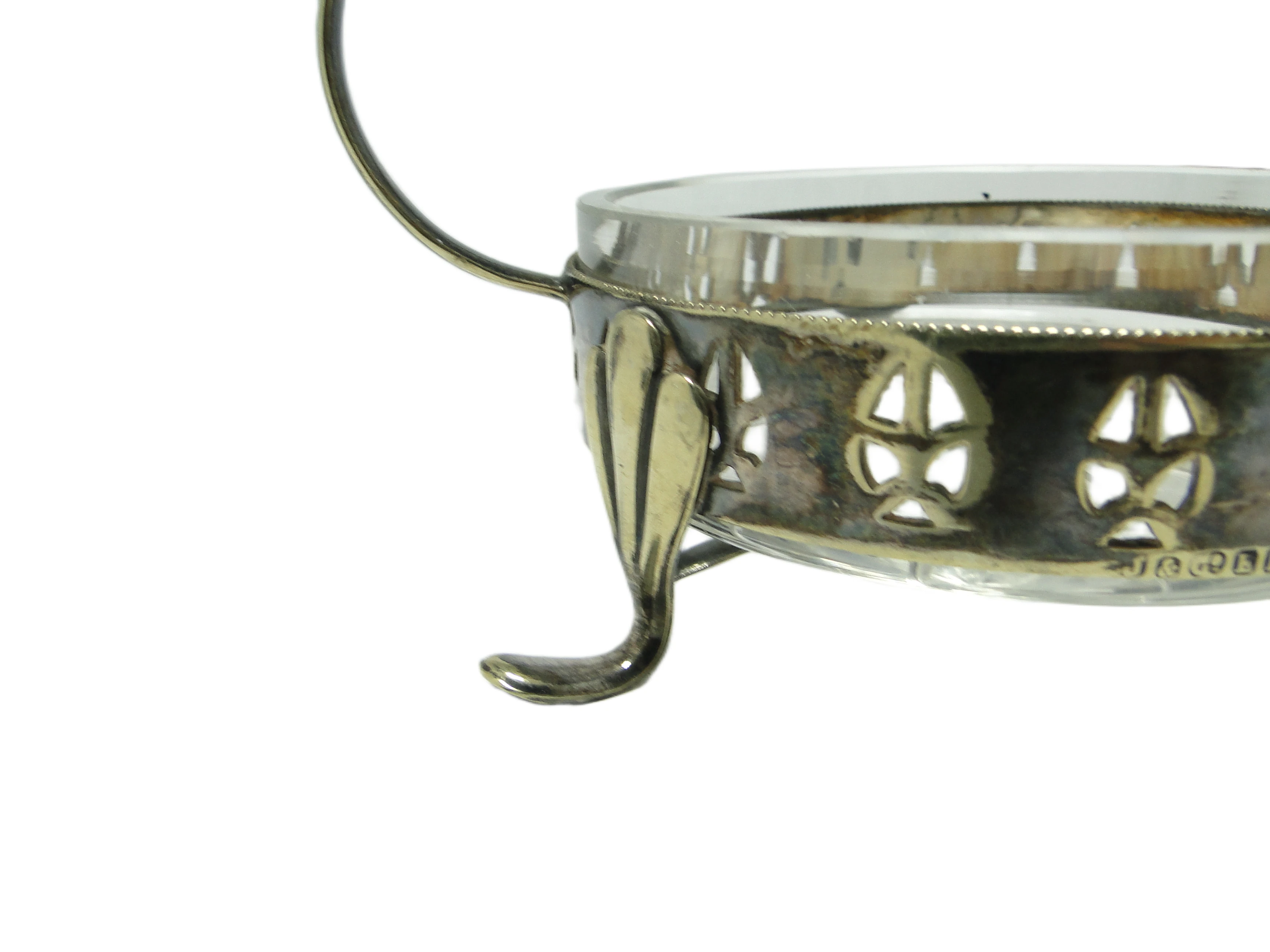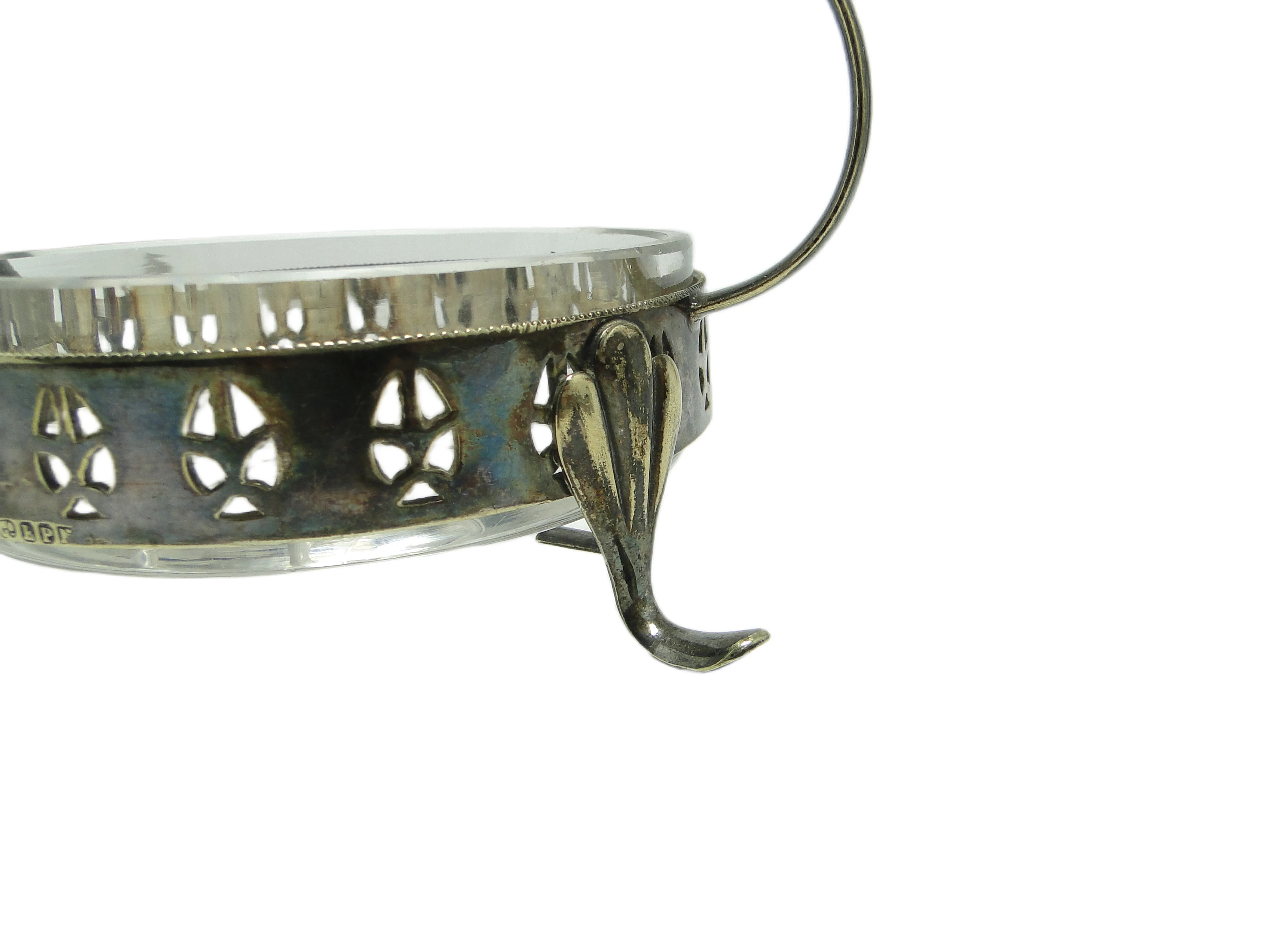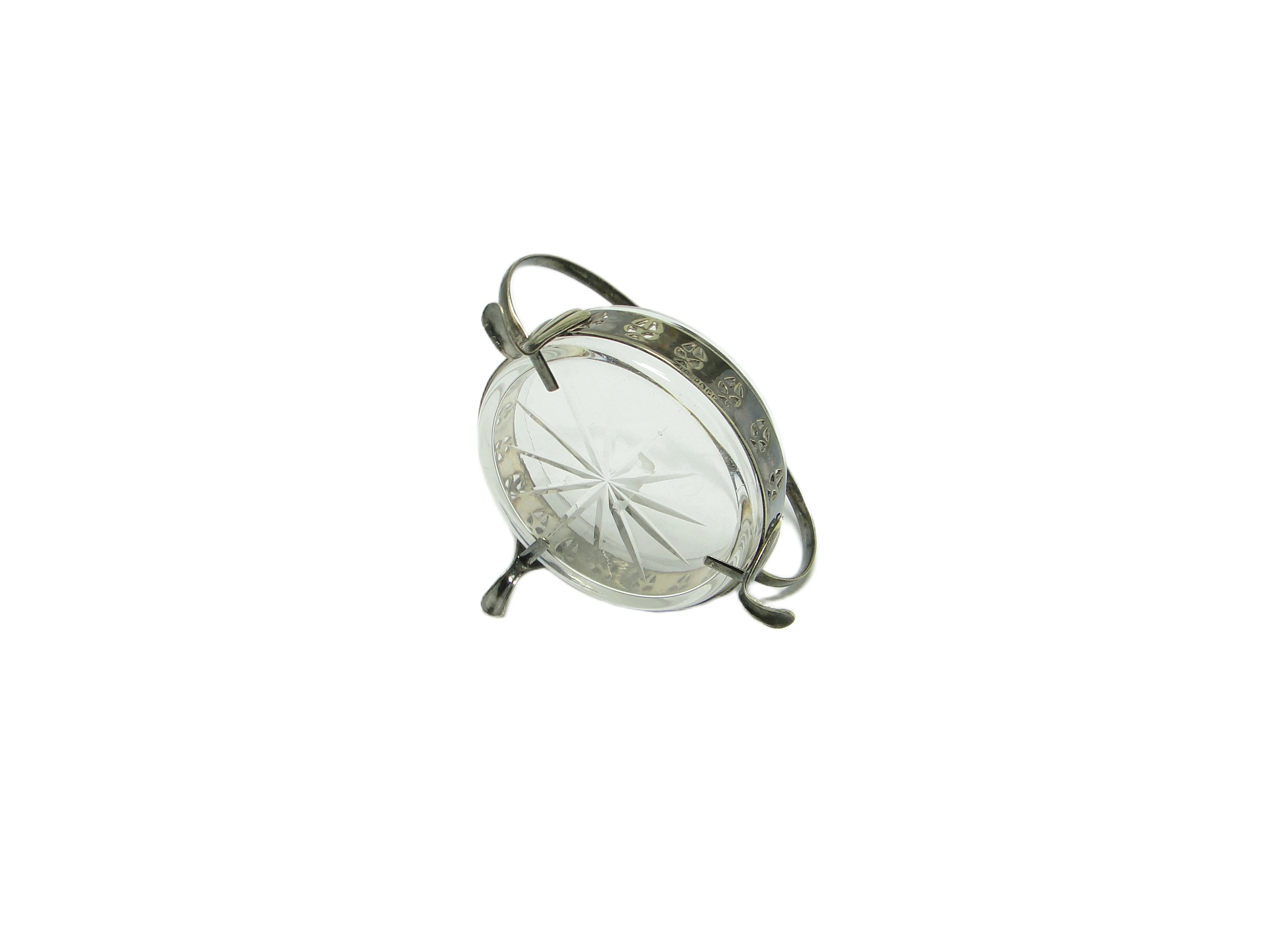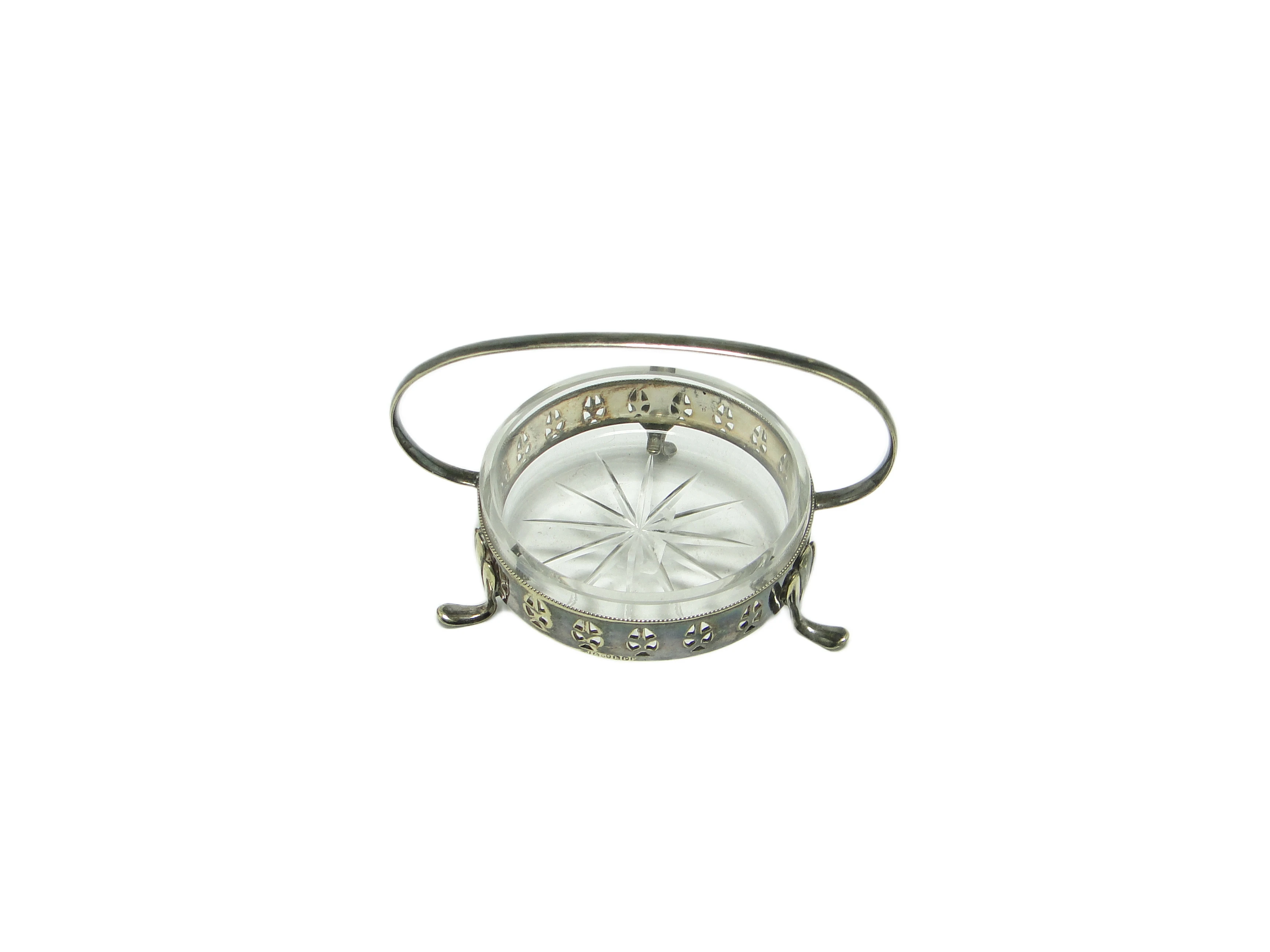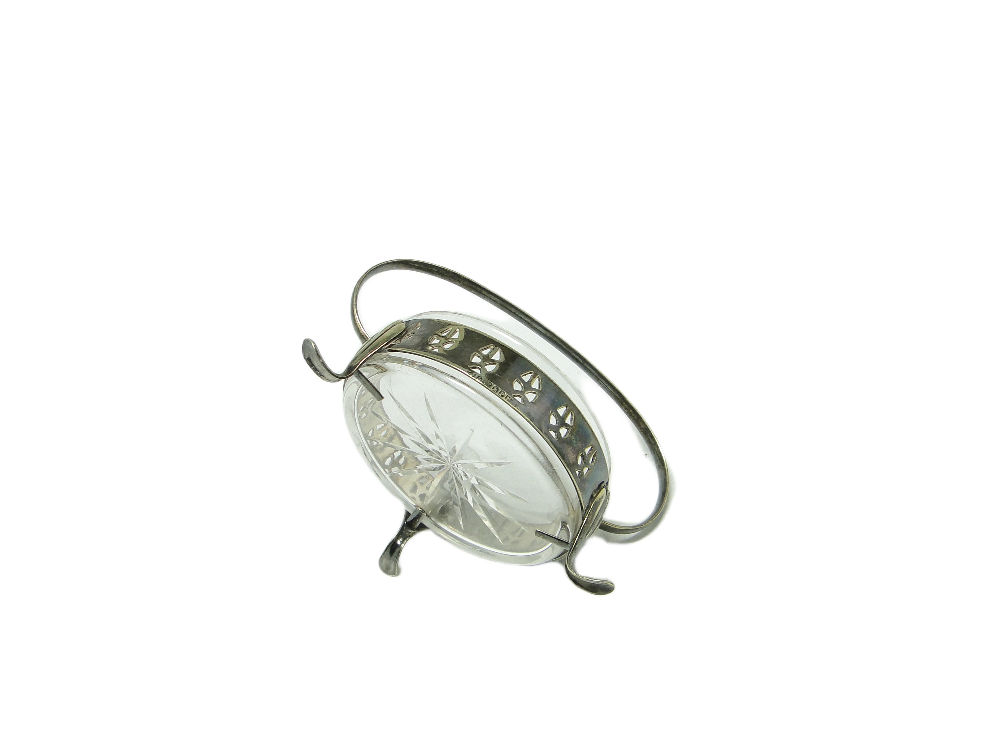 Patera, mid-century modern, mosiądz srebrzony, szkło przezroczyste, Wielka Brytania, lata 50.